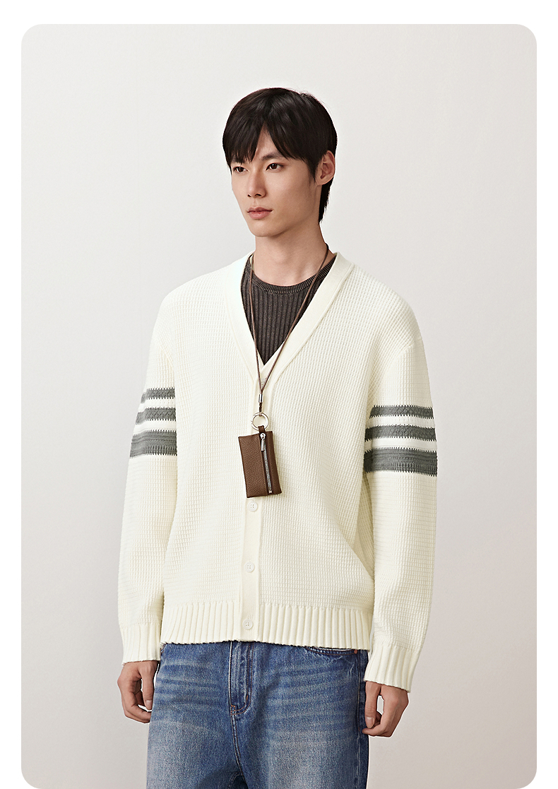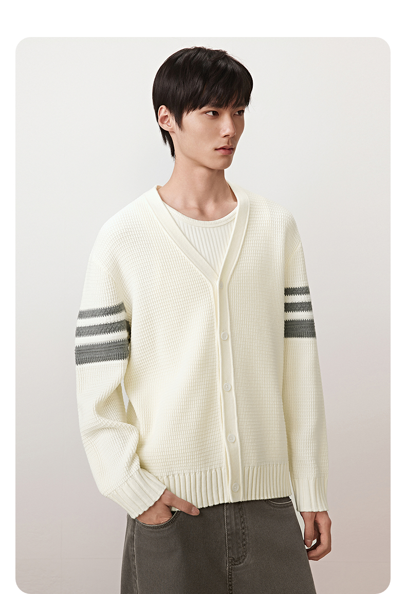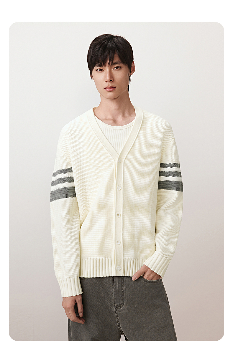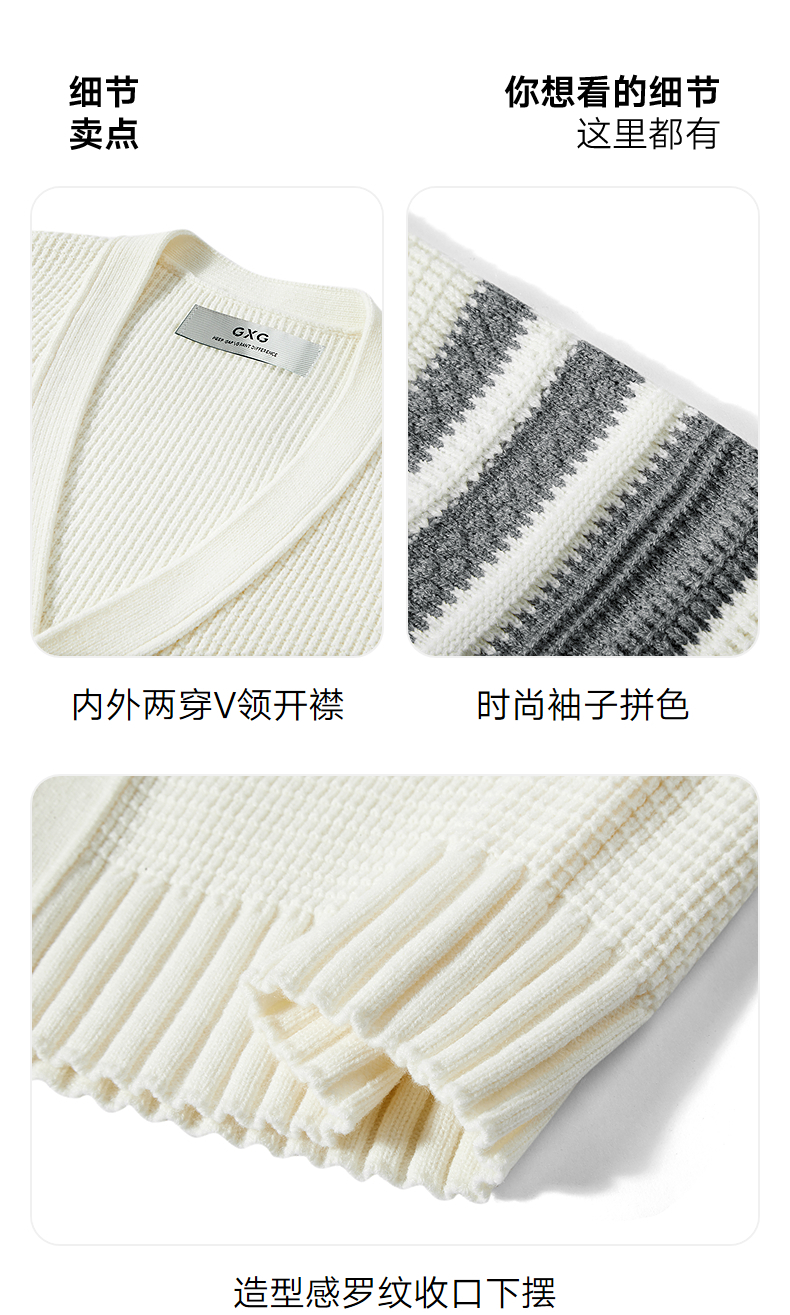 GXG男装 肩膀条纹撞色开衫休闲通勤毛衣外套男上装 2025秋季热卖
