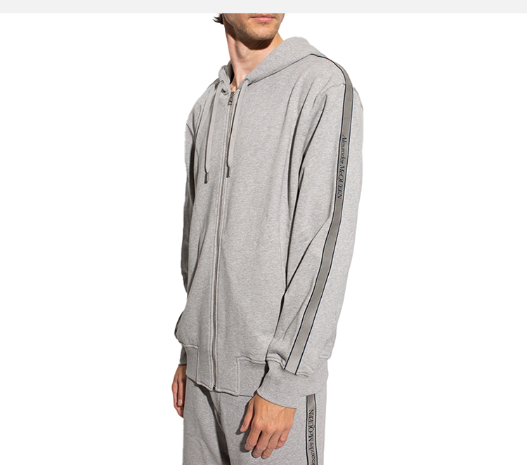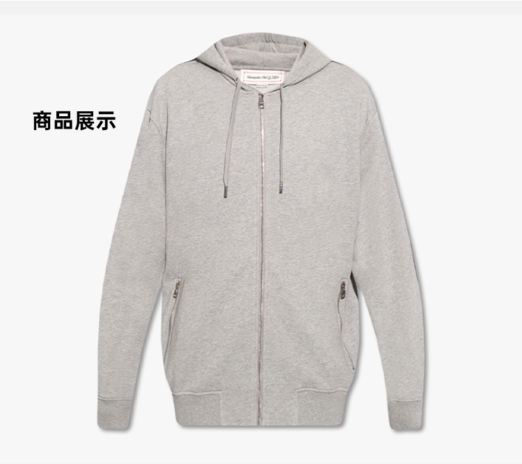 ALEXANDER MCQUEEN 亚历山大.麦昆 男士棉质袖子缝有品牌徽标带拉链连帽运动卫衣 浅灰色 654794 QTX75 0912
