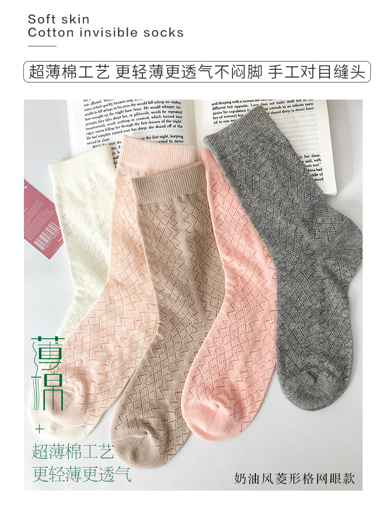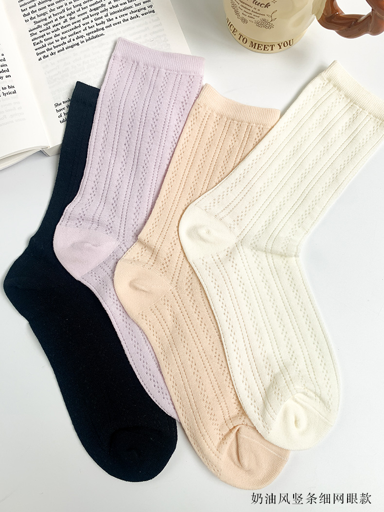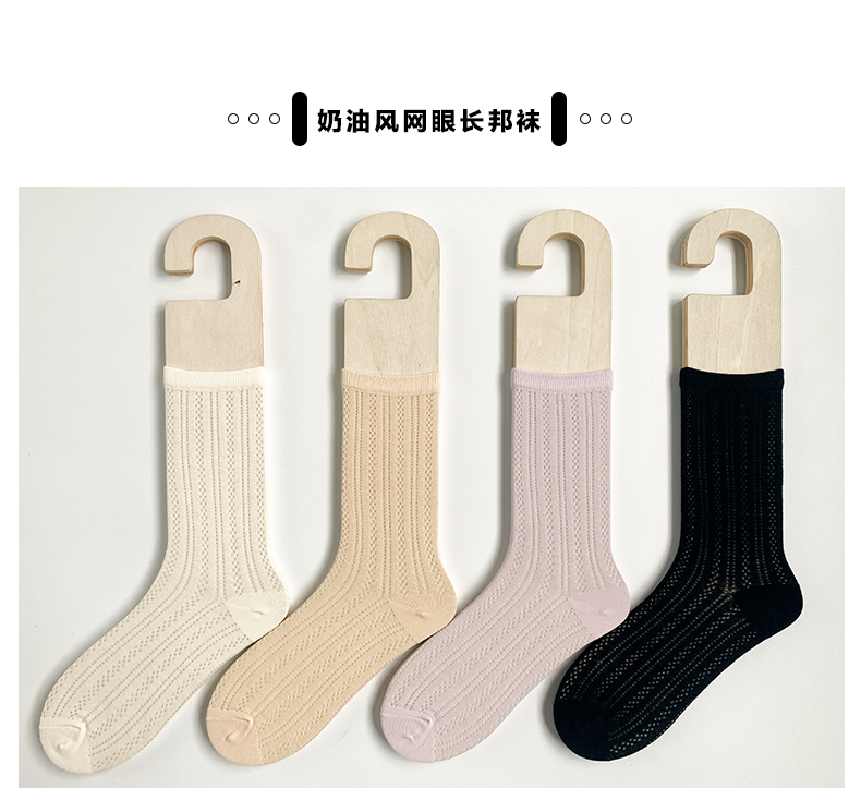 足装秀24夏季新品女士长筒袜堆堆袜超薄棉透气轻薄网眼长款女袜子