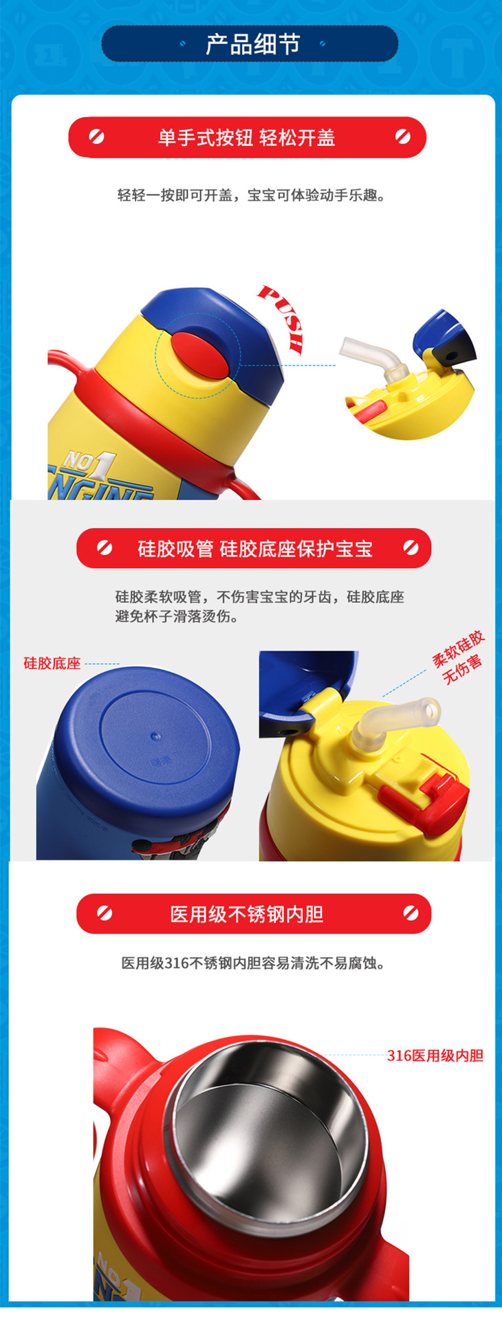 托马斯双柄软胶吸管保温水壶300mlFU-19-8221TM