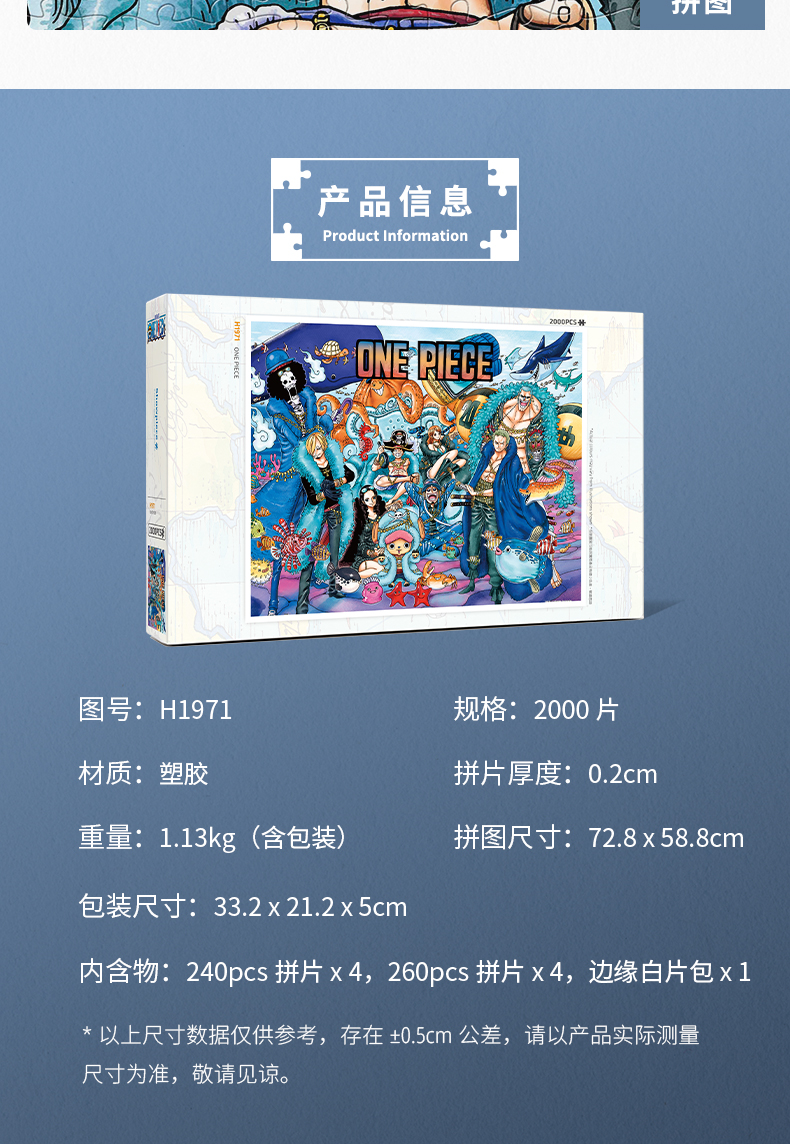 【折扣商品 不退不换】2000片 平面拼图 塑料拼图 H1971 ONE PIECE-航海王20周年