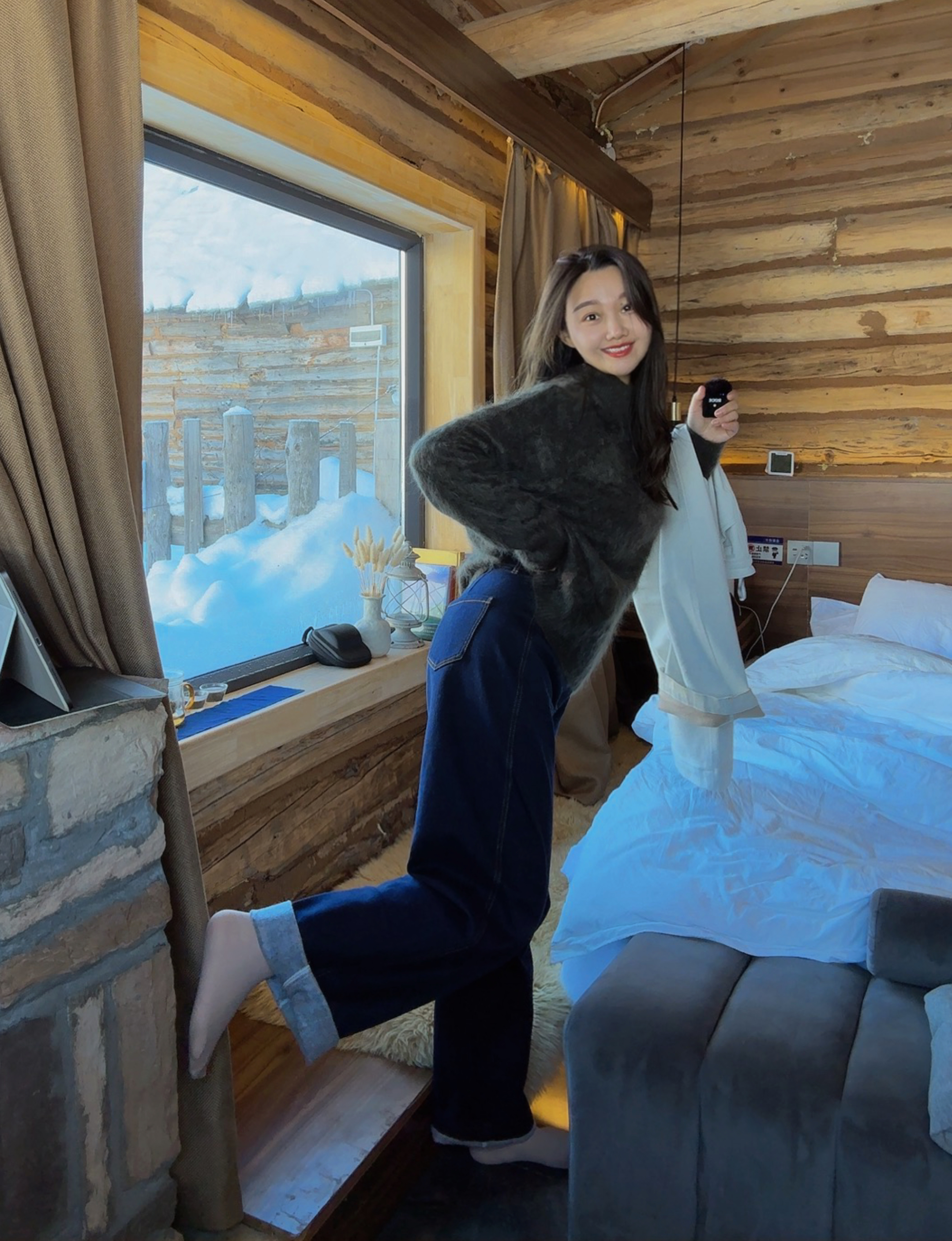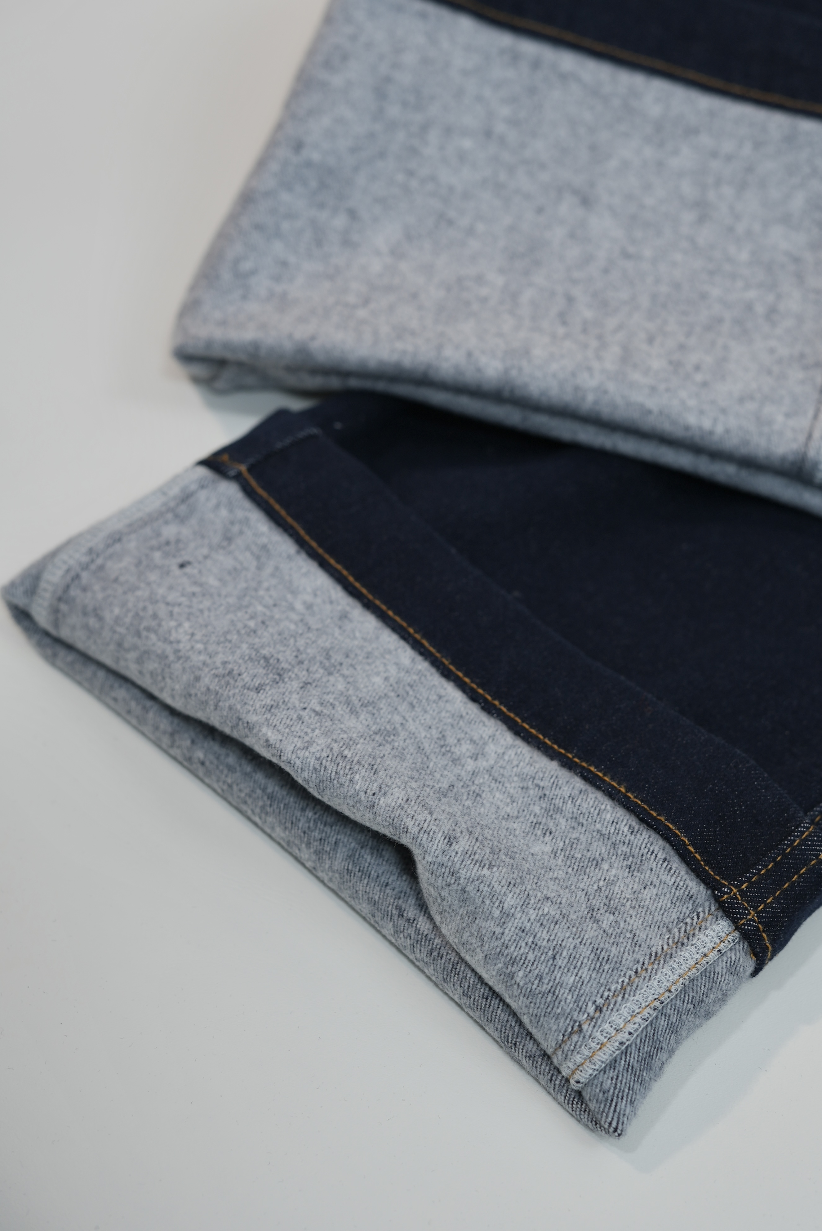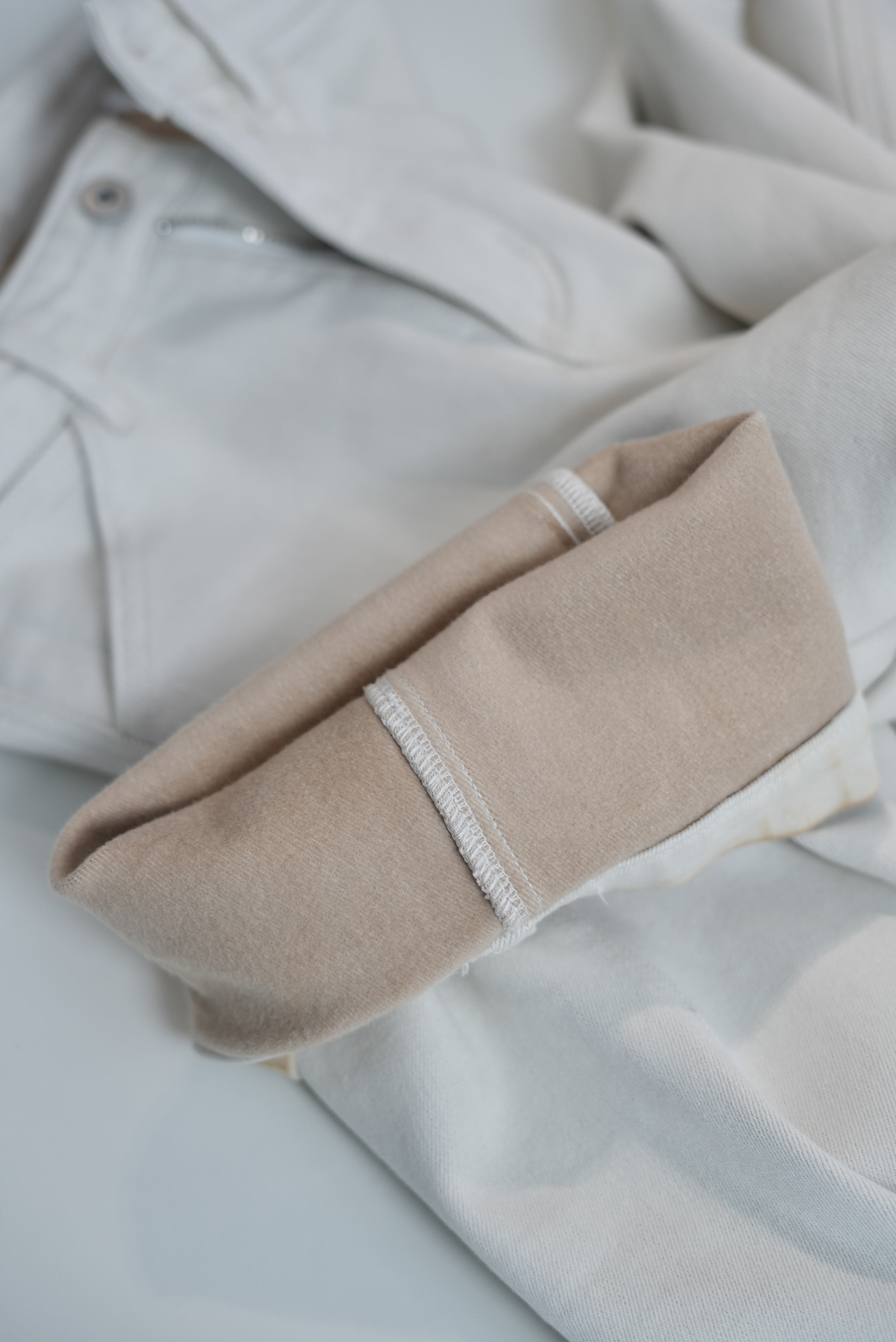 采用定制植绒拉毛牛仔面料,显瘦与保暖