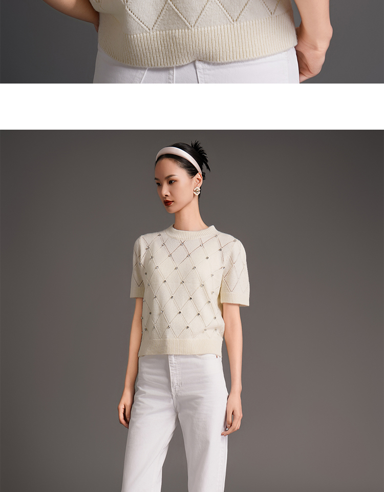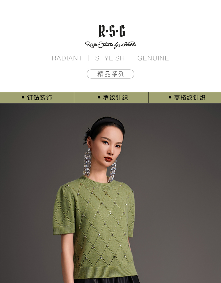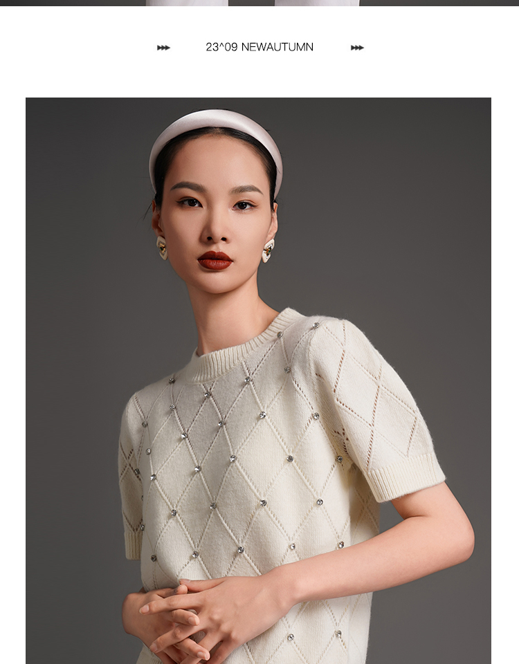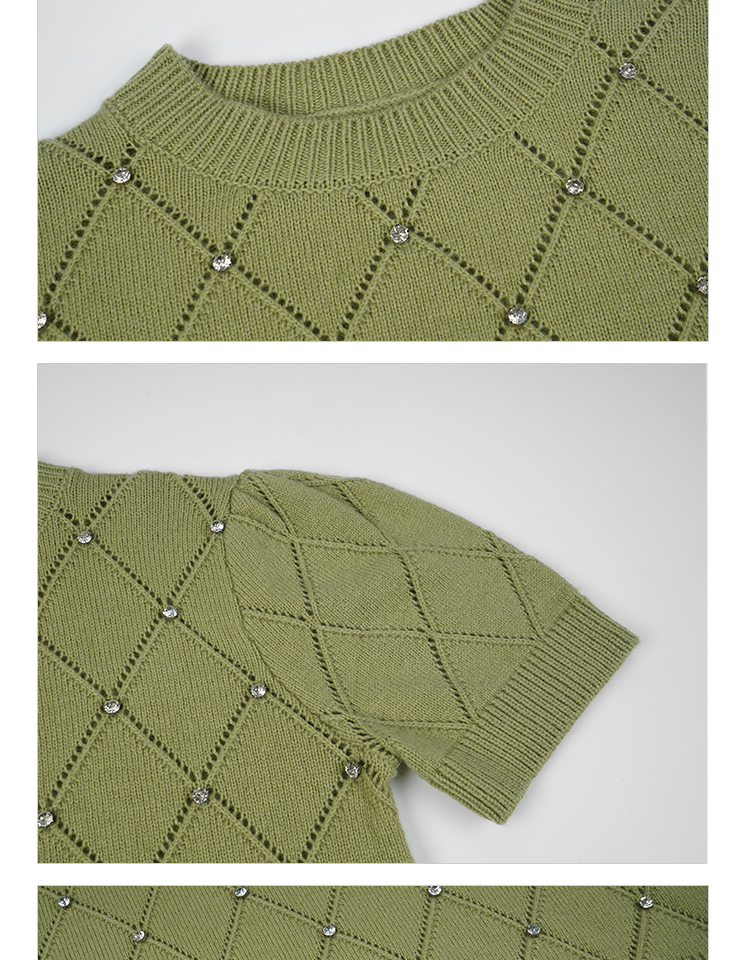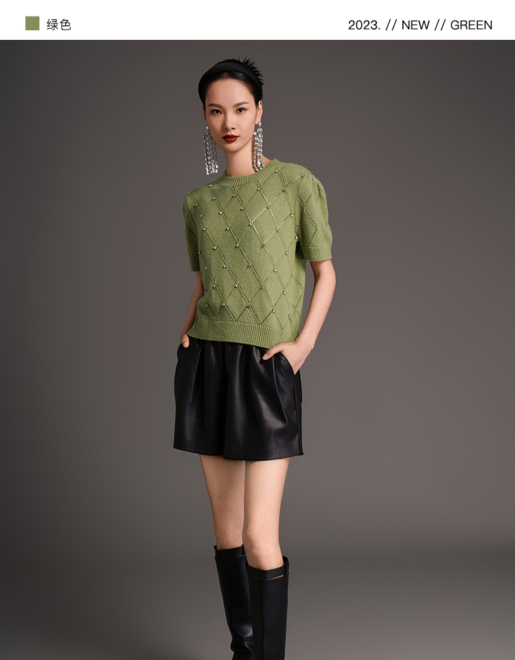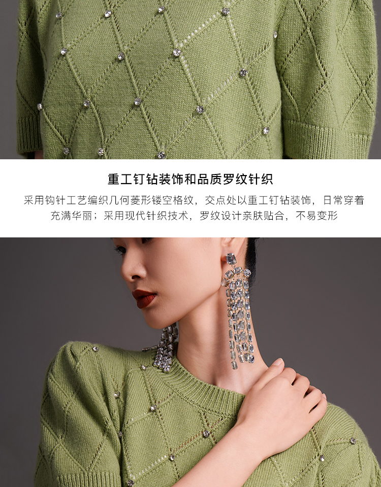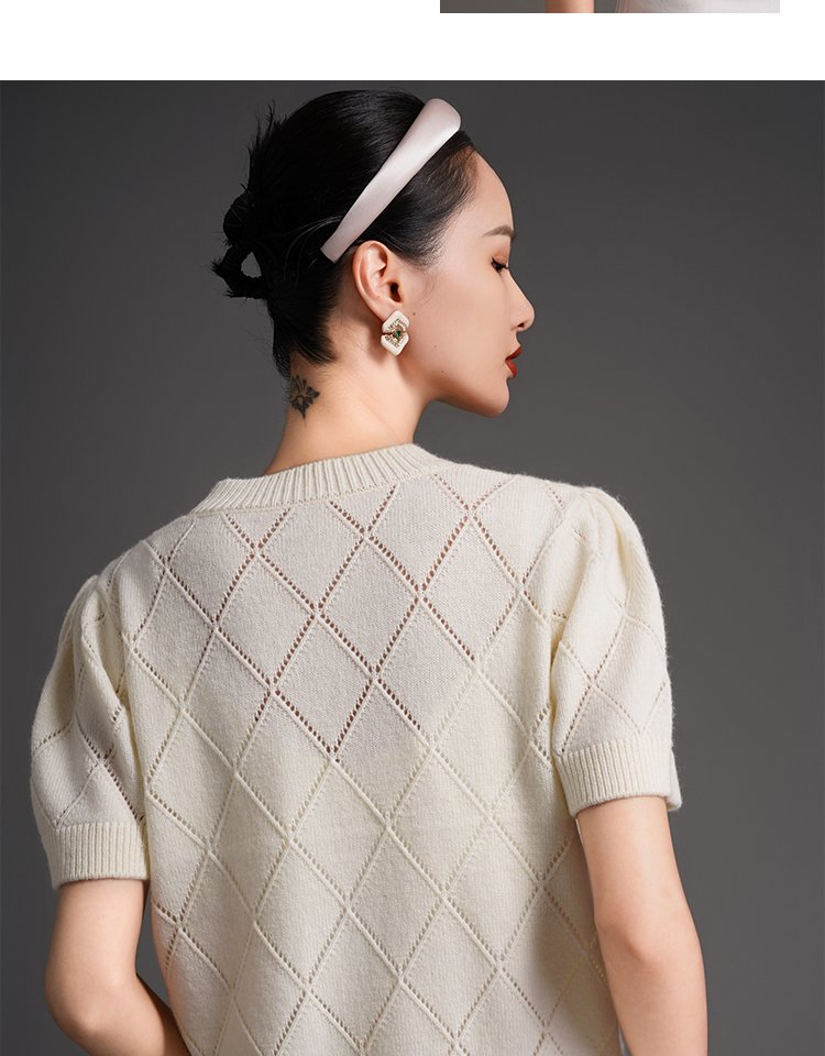 RSG2023郭培成衣品牌早秋百搭泡泡袖镂空菱格纹针织衫