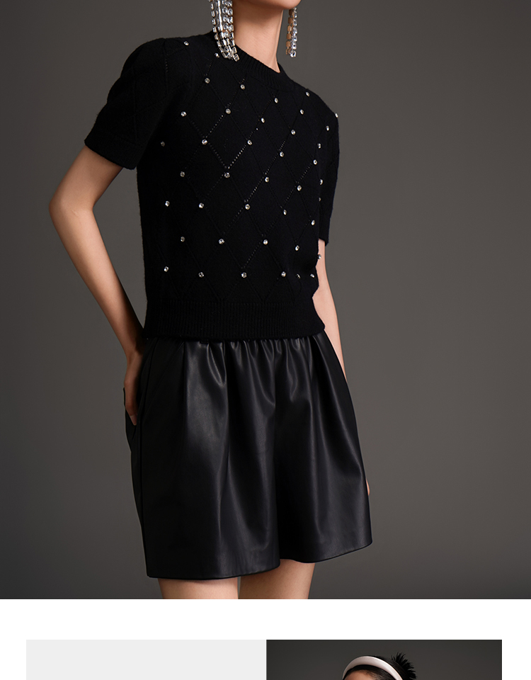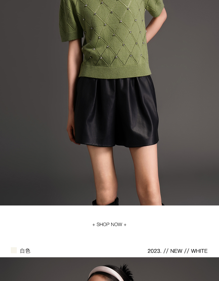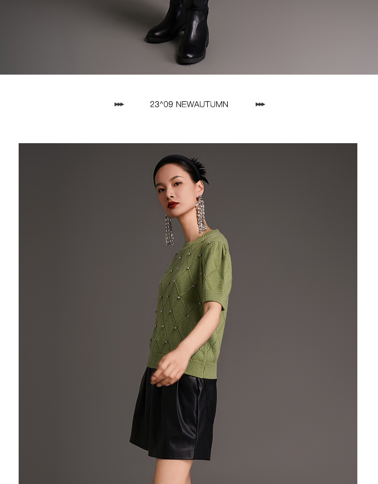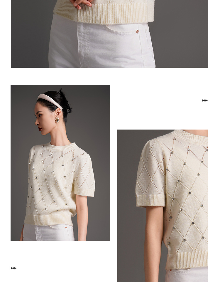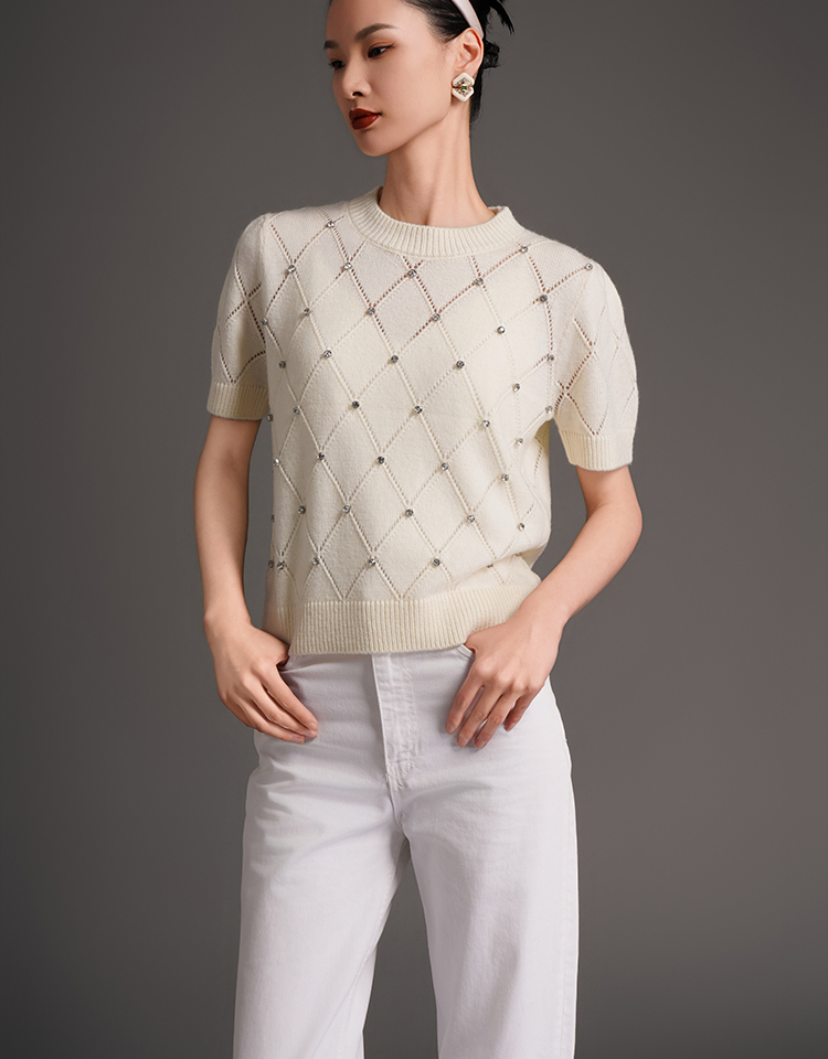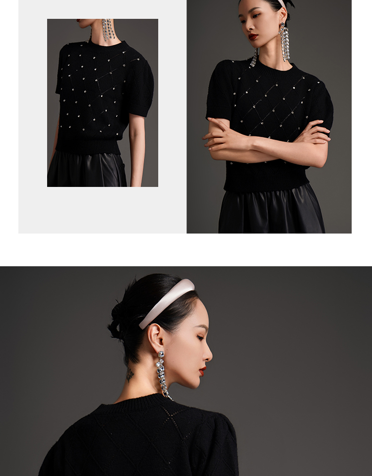 RSG2023郭培成衣品牌早秋百搭泡泡袖镂空菱格纹针织衫