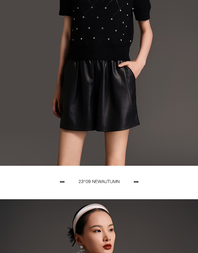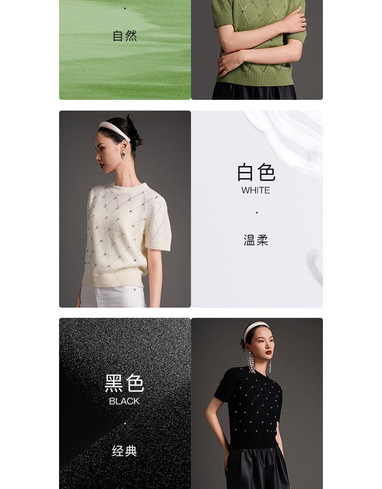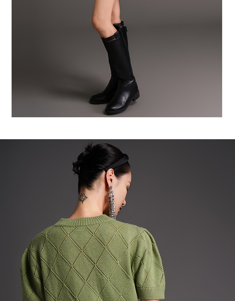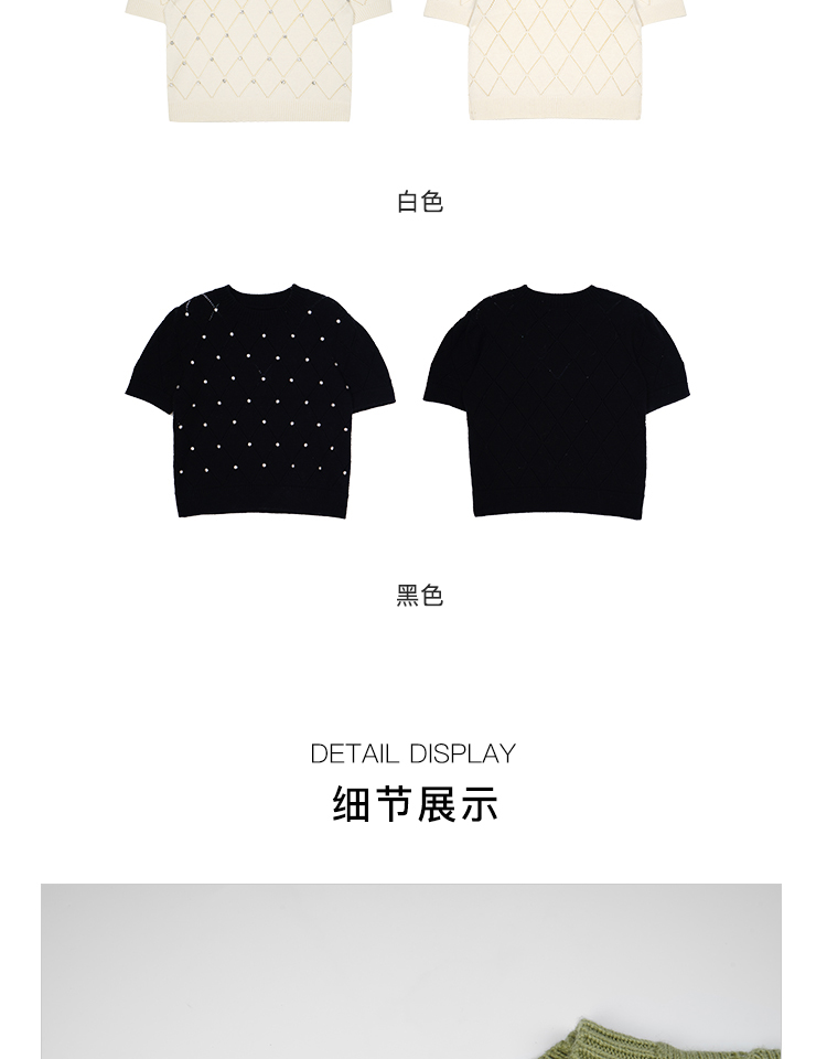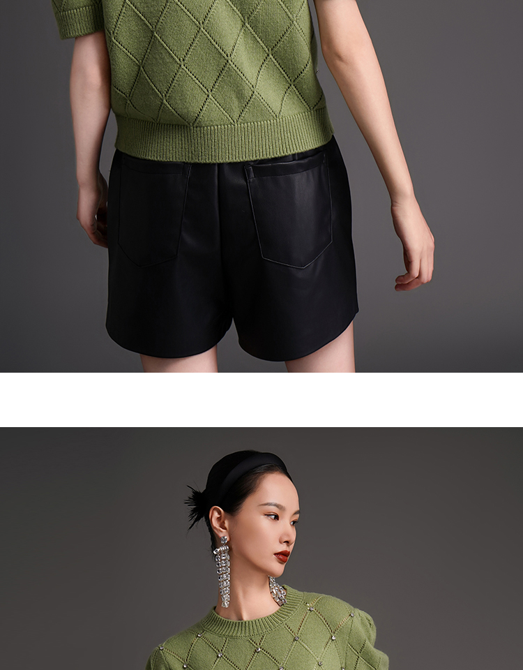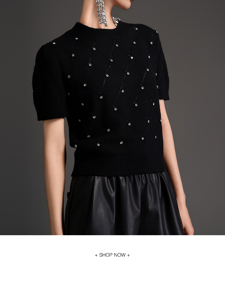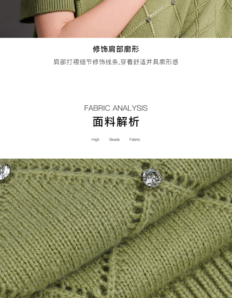 RSG2023郭培成衣品牌早秋百搭泡泡袖镂空菱格纹针织衫
