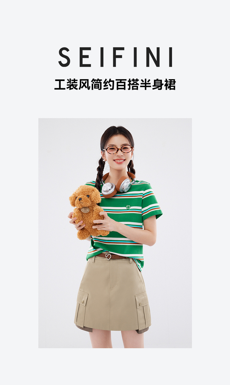 【严选】诗凡黎工装风a字半身裙2024夏新款通勤风小个子高腰显瘦流行短裙SF7140781