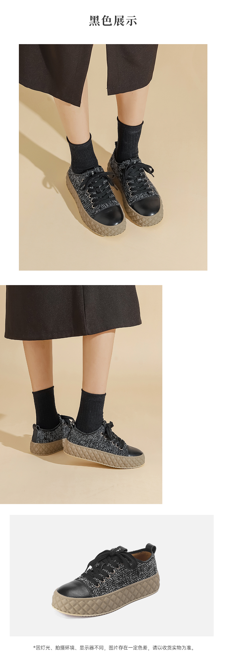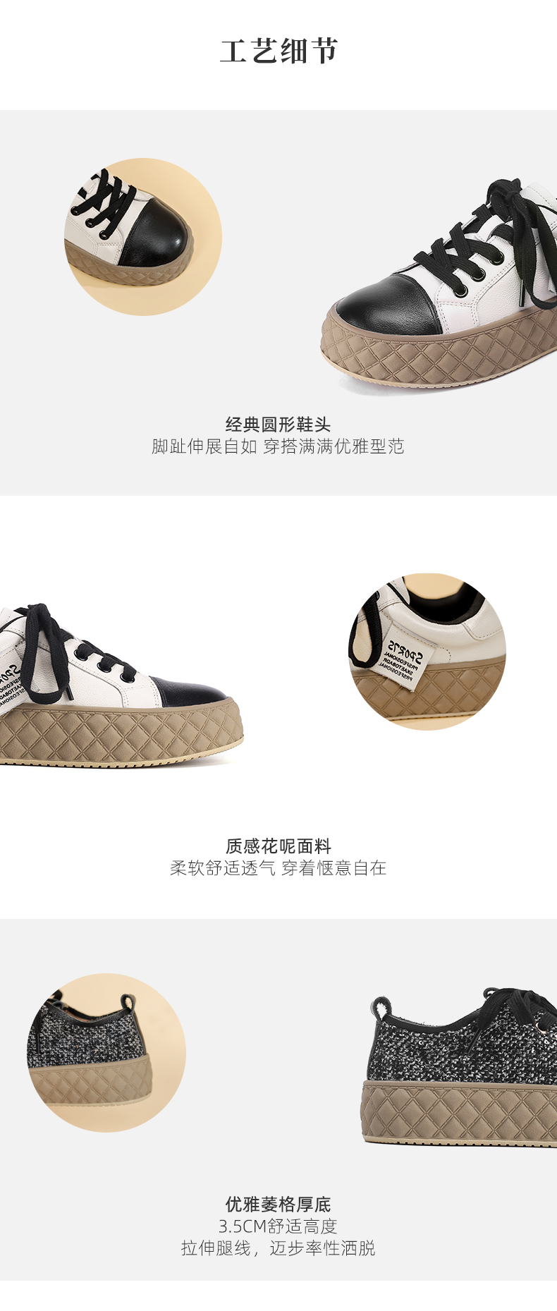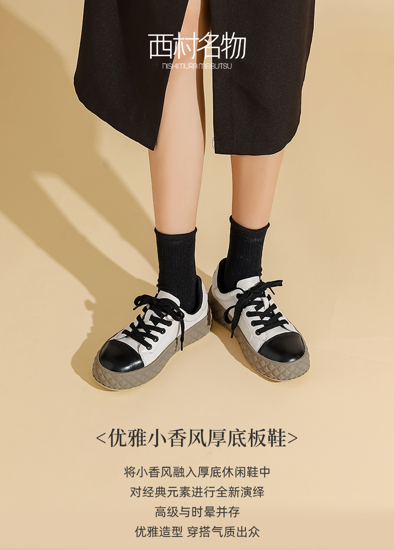 西村名物复古饼干鞋女2023春季新款小香风软底拼色休闲板鞋T23AM12611