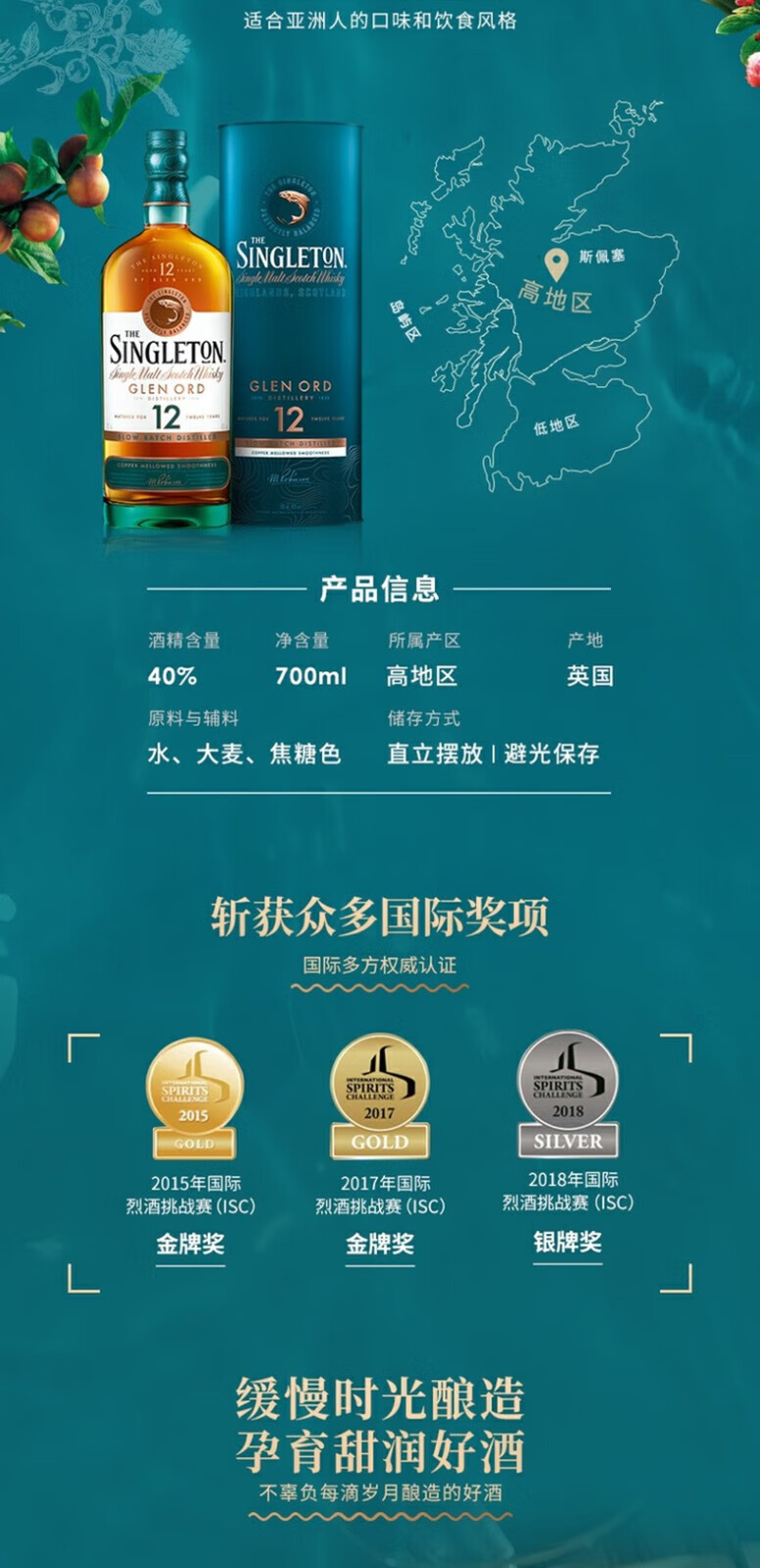 苏格登·格兰欧德15年单一麦芽威士忌 700ml