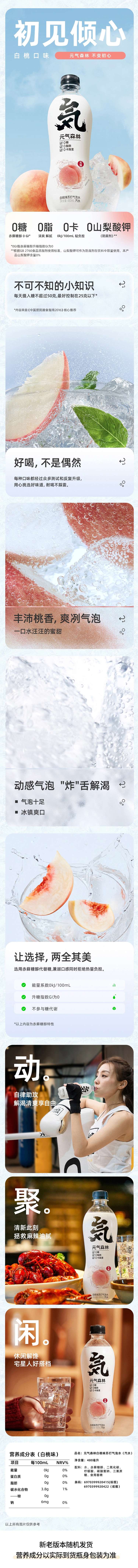 元气森林白桃味苏打气泡水(汽水)480ml*15 整箱-LZY
