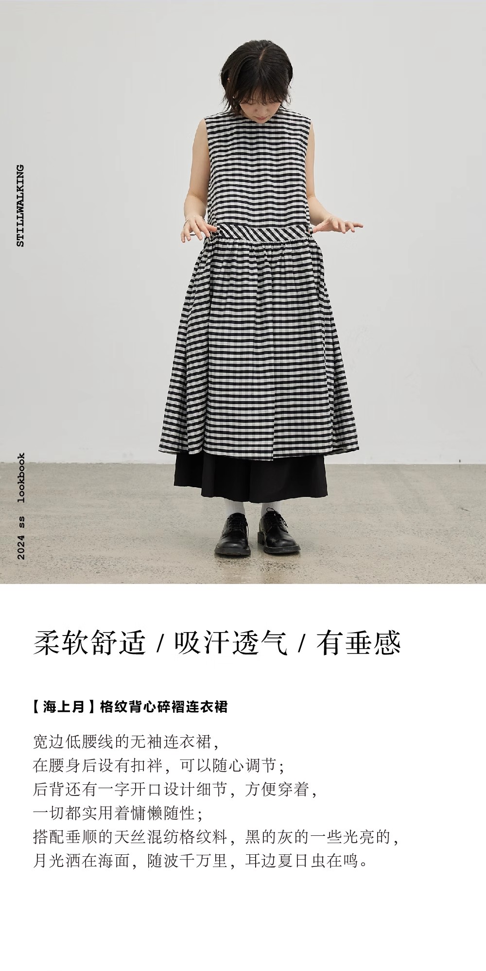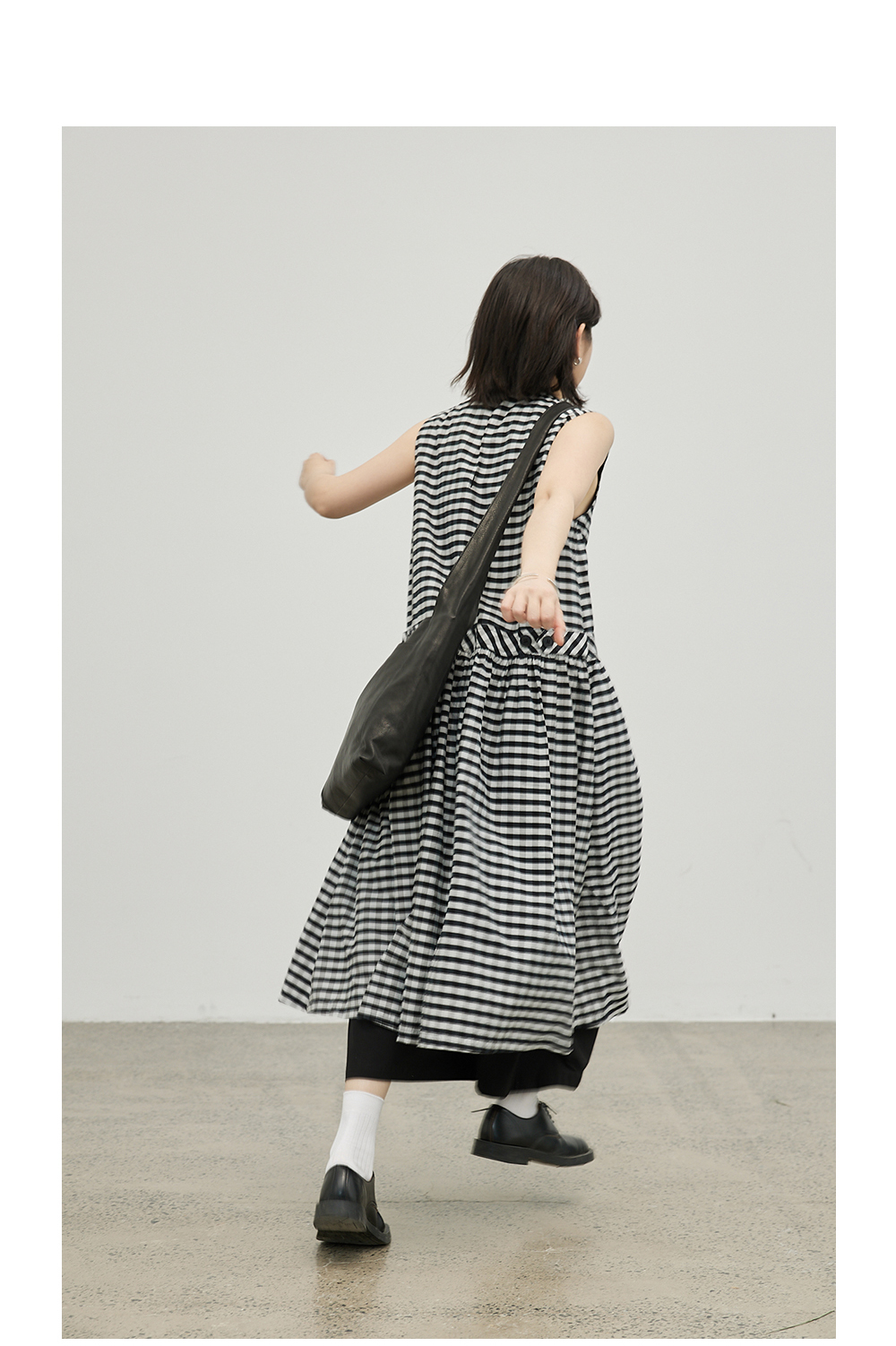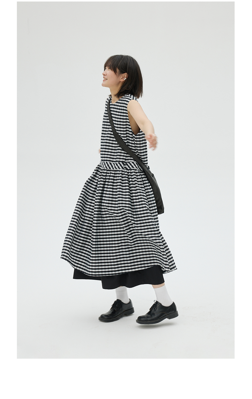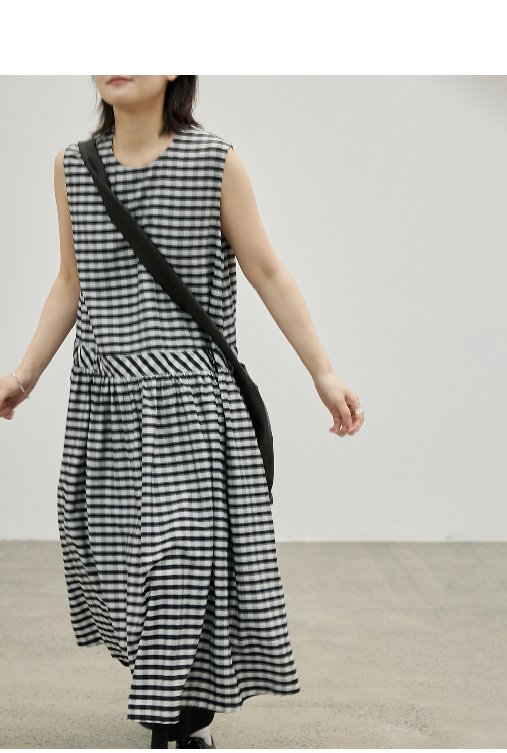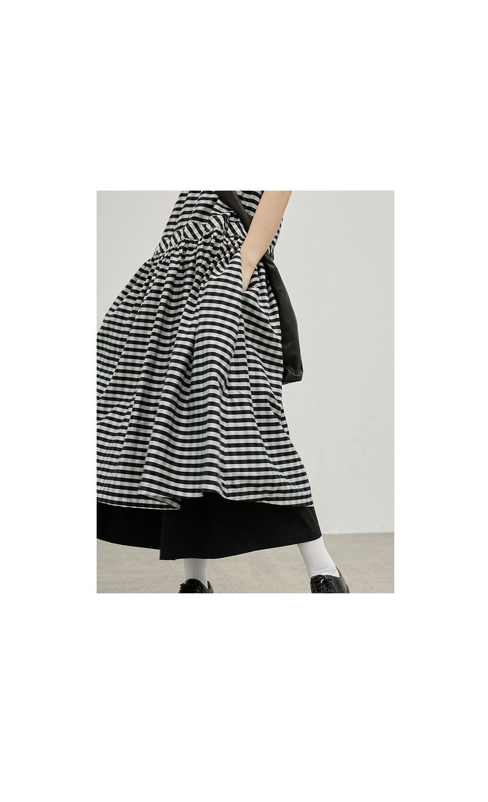 步履不停/4B31130C/格纹背心碎褶连衣裙