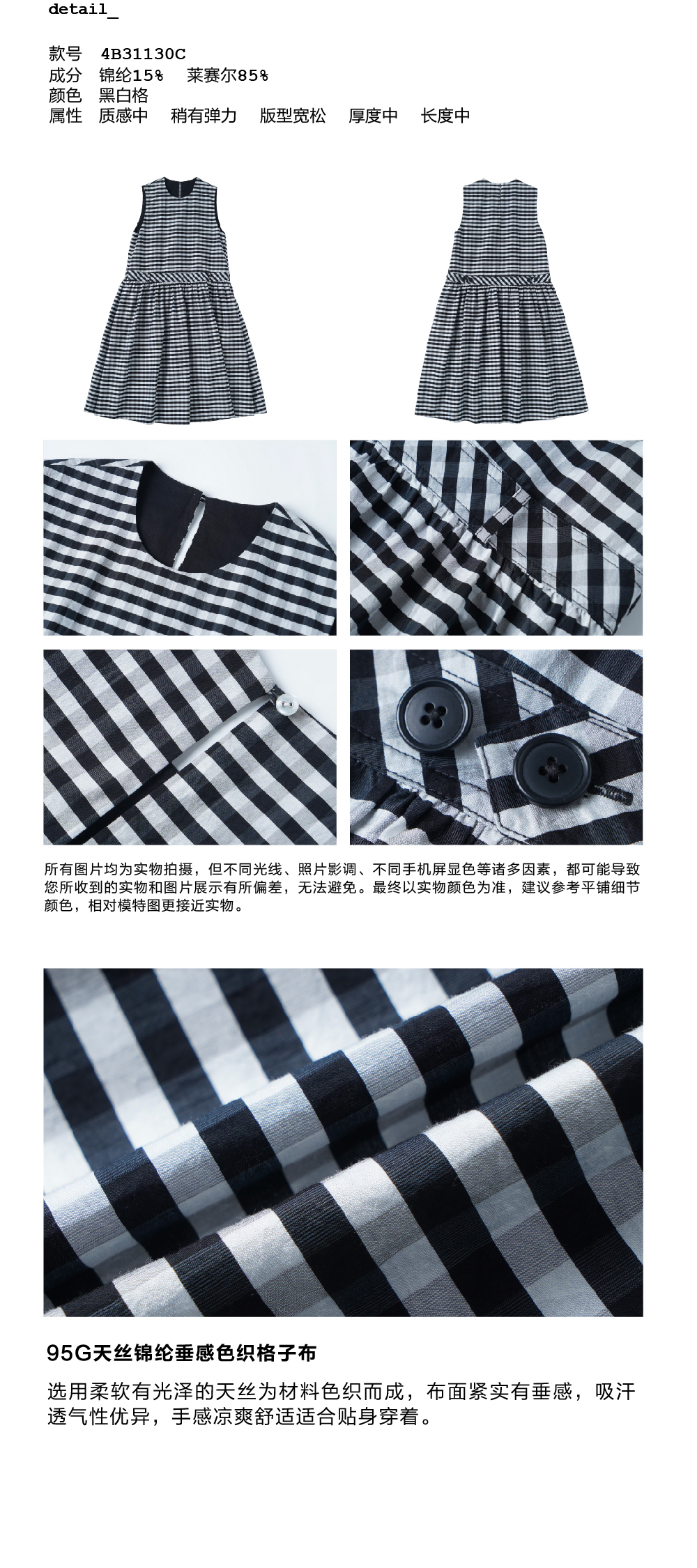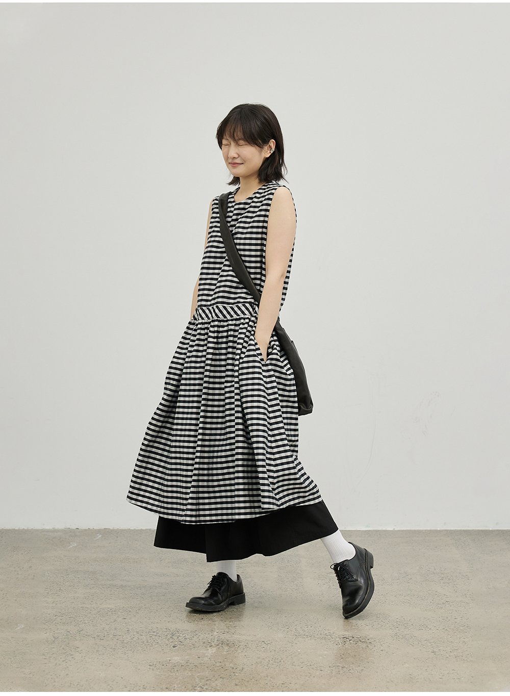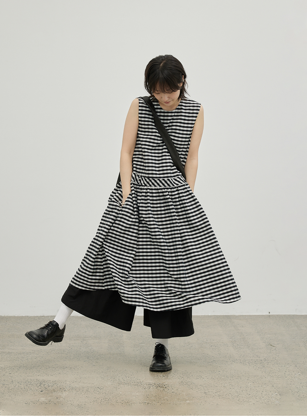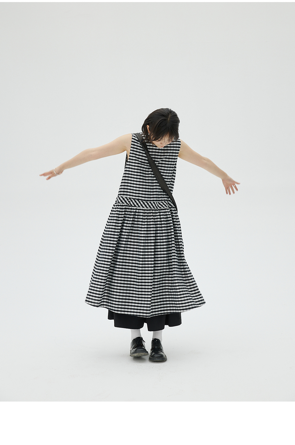 步履不停/4B31130C/格纹背心碎褶连衣裙