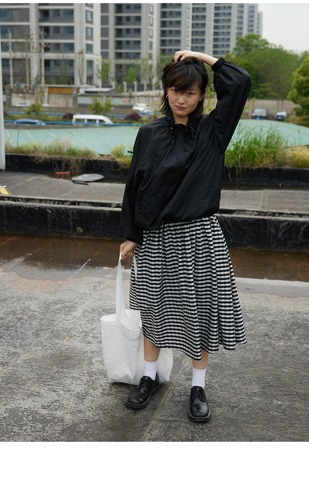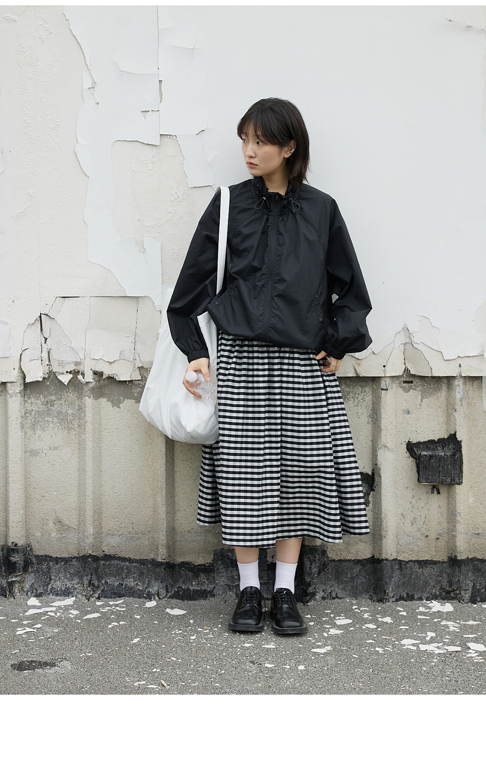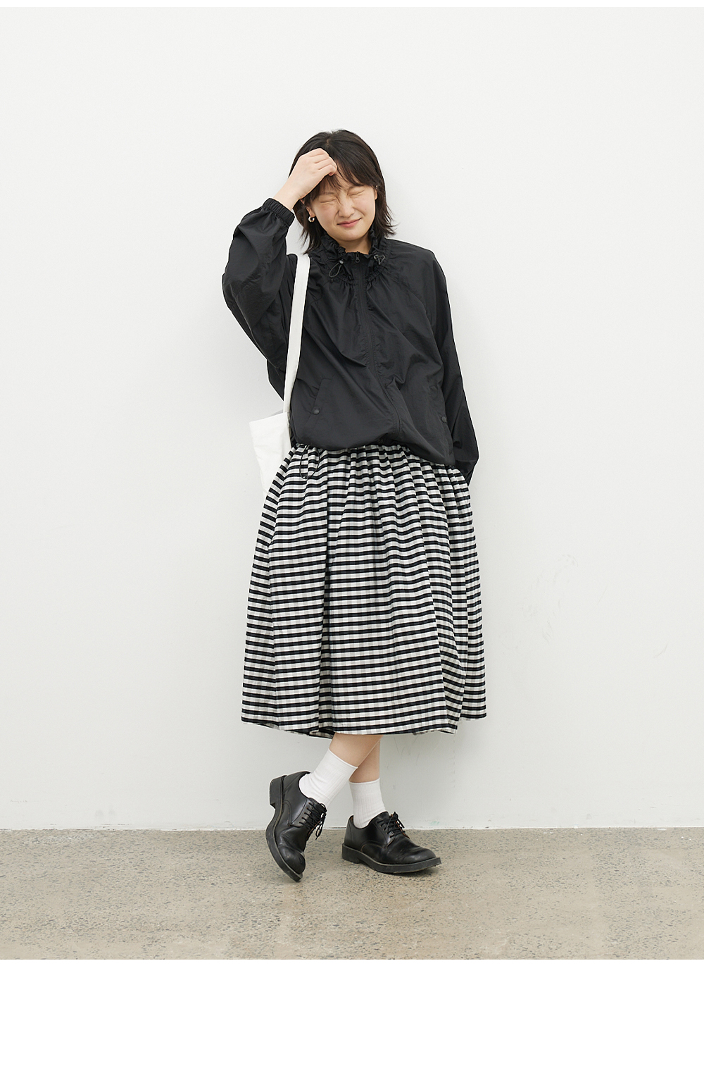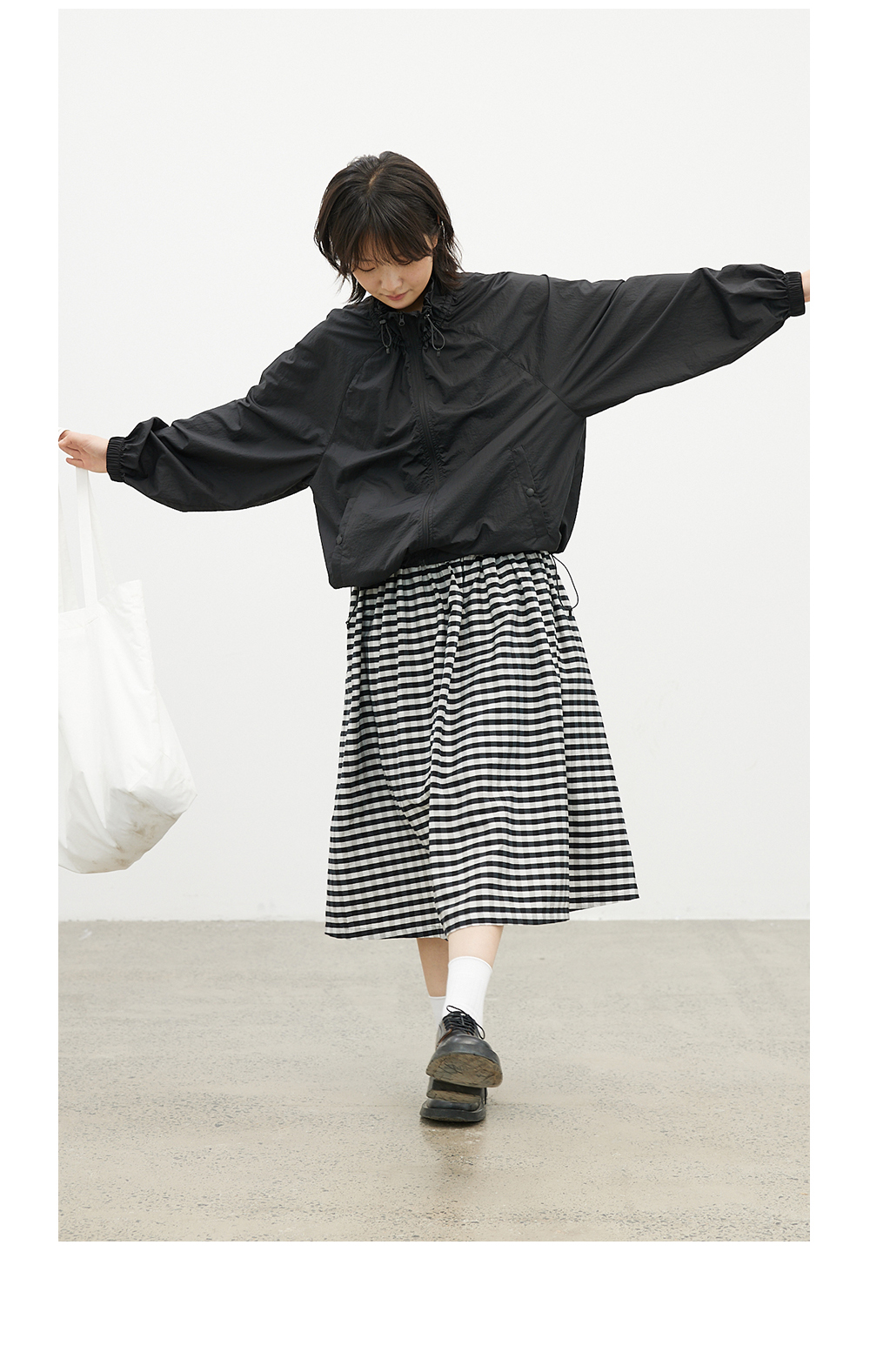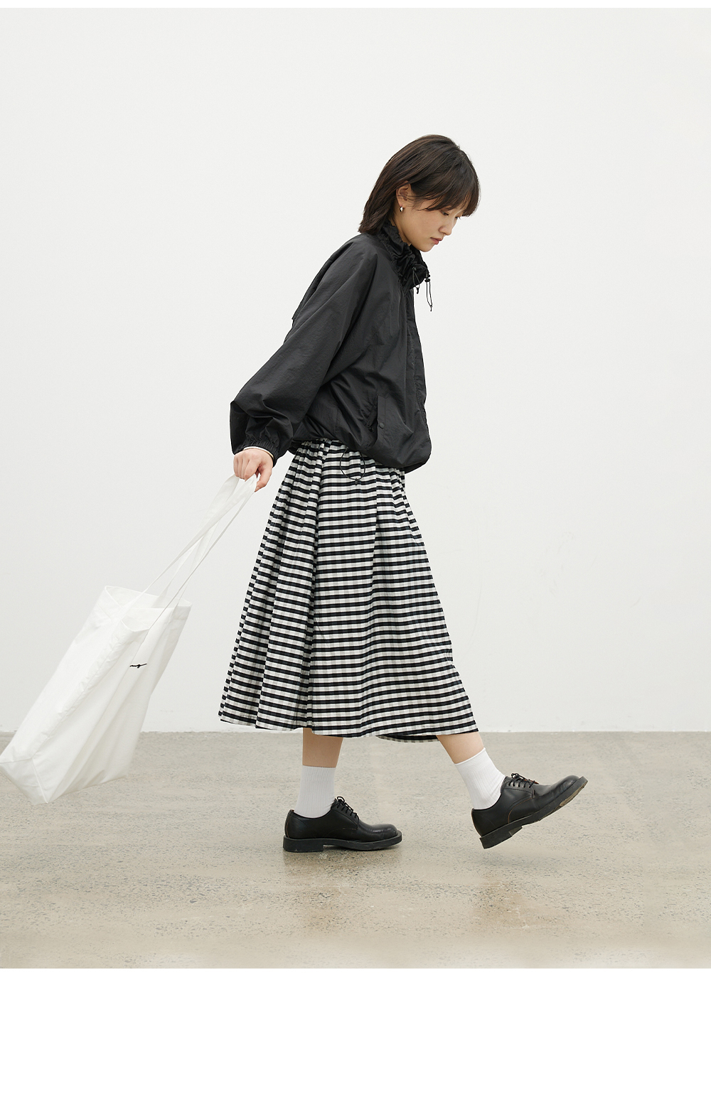 步履不停/4B31130C/格纹背心碎褶连衣裙