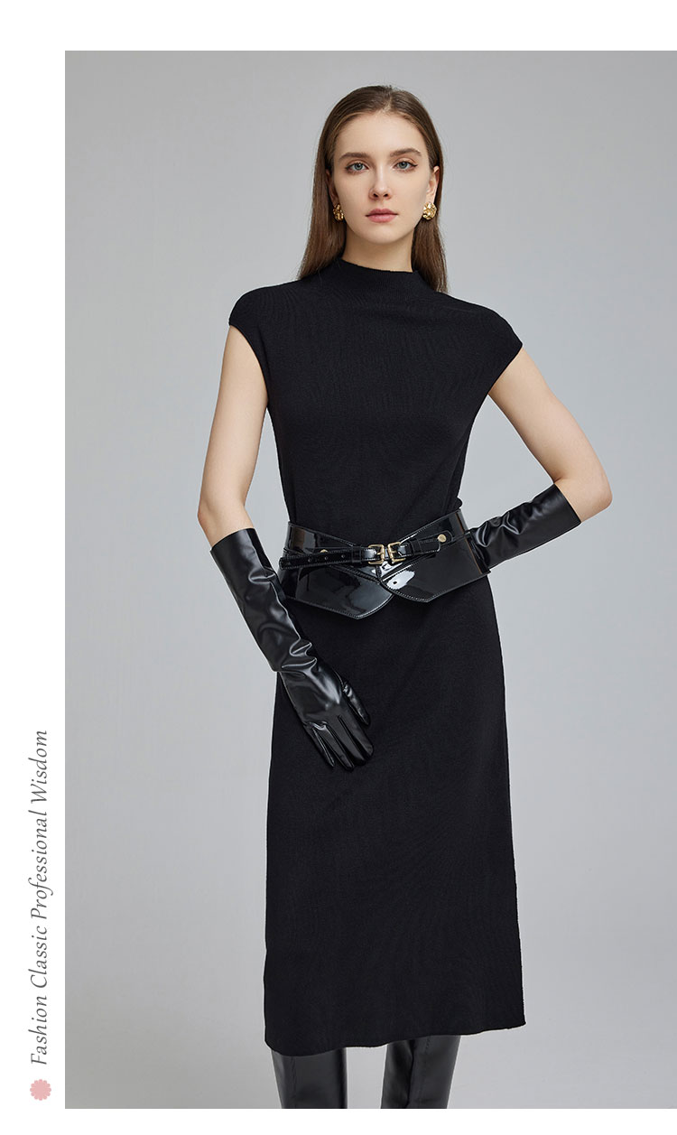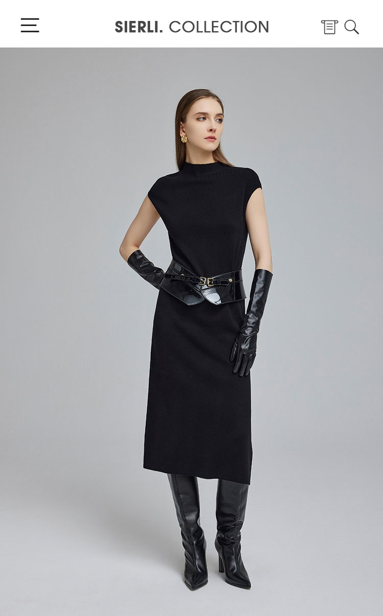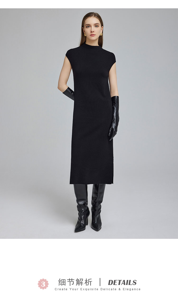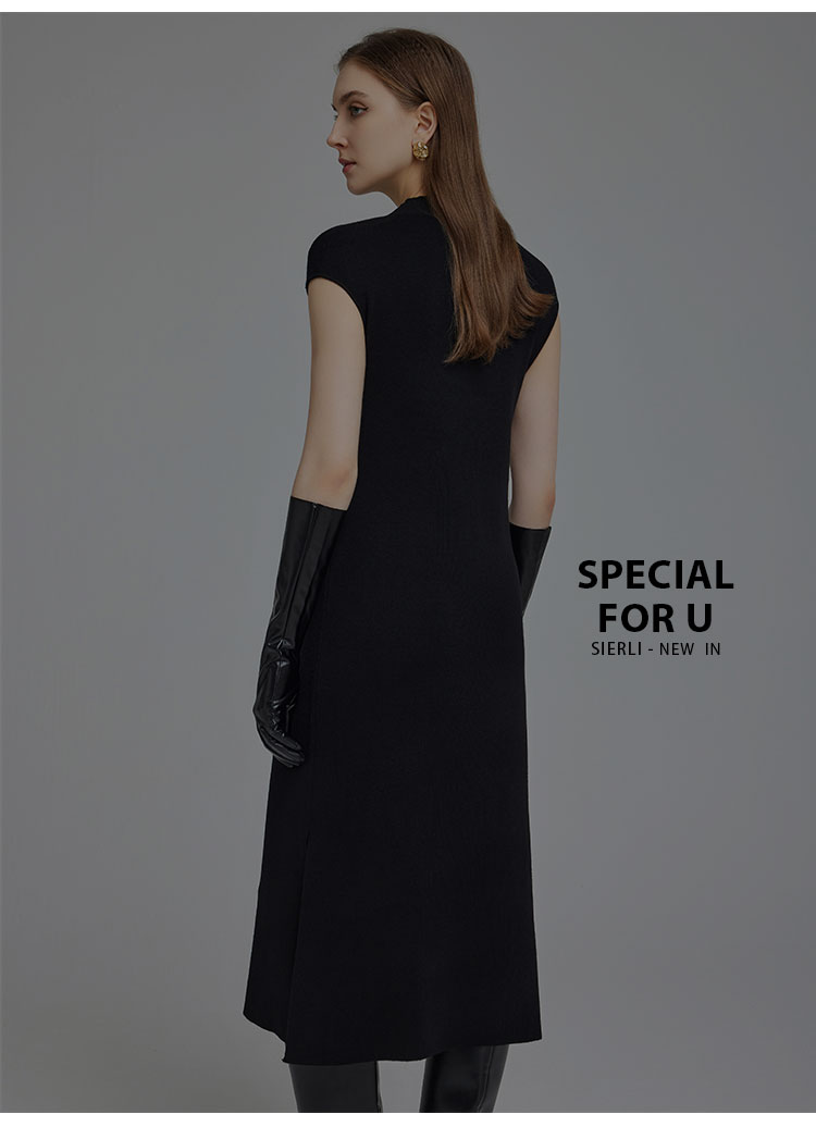 NG672斯尔丽2023秋冬新款宽松简约时尚半高领不包肉不贴身针织连衣裙