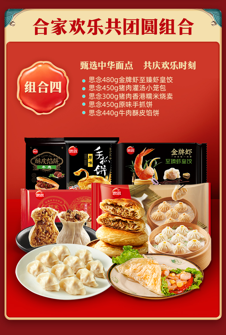 思念 早餐早点半成品 煎饼面食面点 方便速食 440g/4只 猪肉大葱