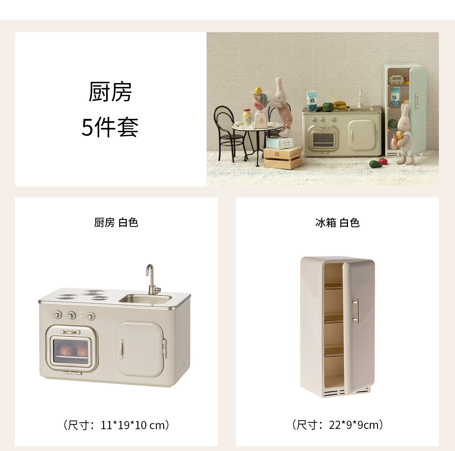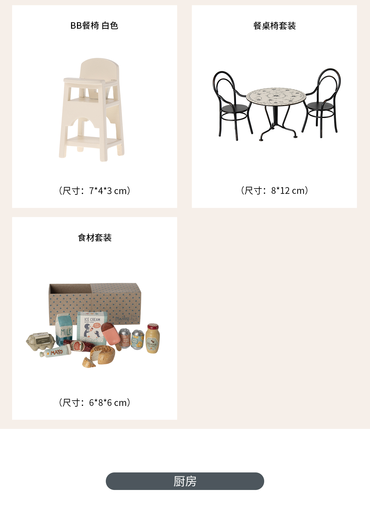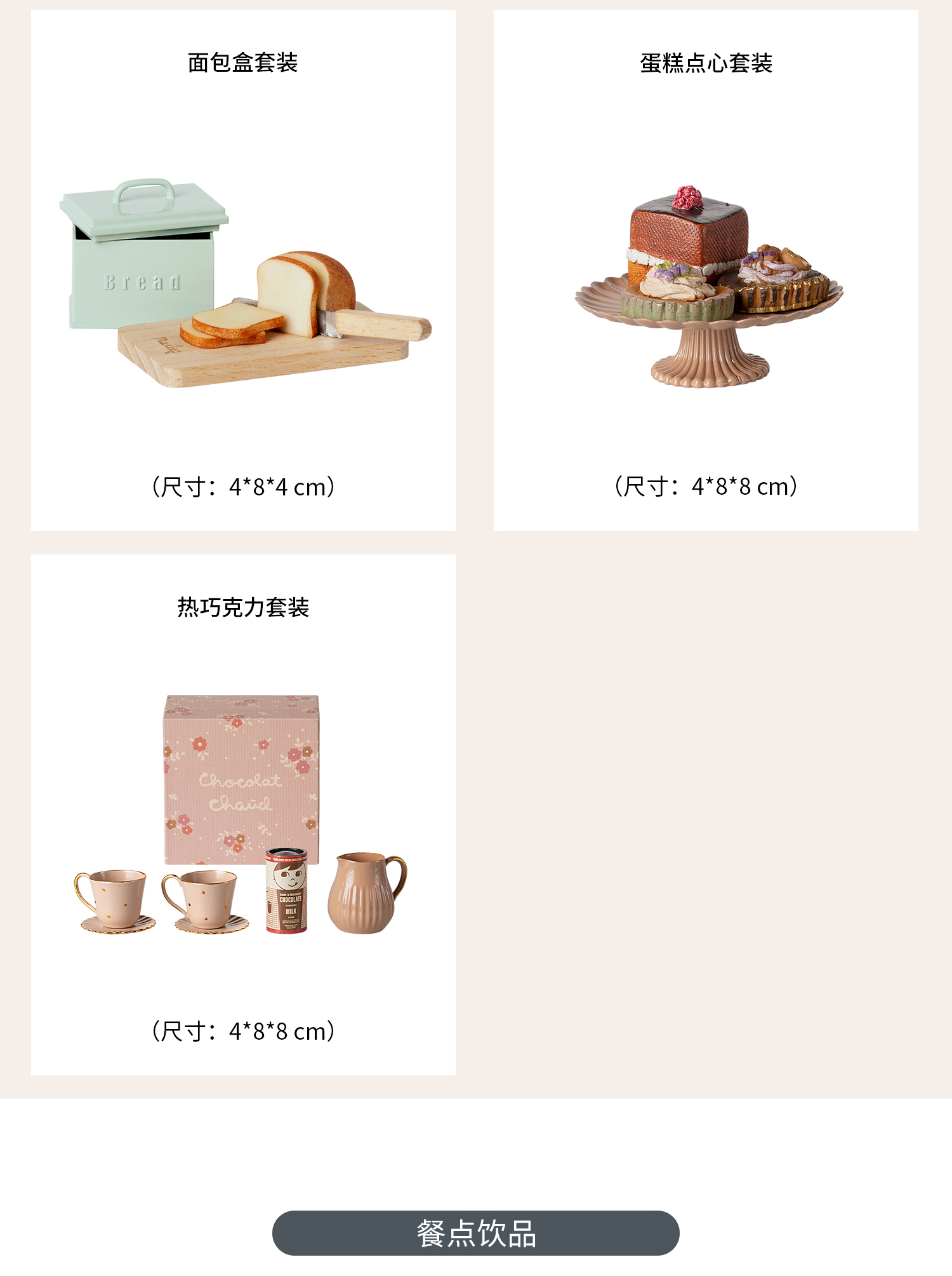 Maileg 蛋糕点心套装 迷你厨房与餐点系列 过家家玩具 迷你精致 北欧风创意设计 适合3岁以上 丹麦国宝级玩具品牌 11-4121-00
