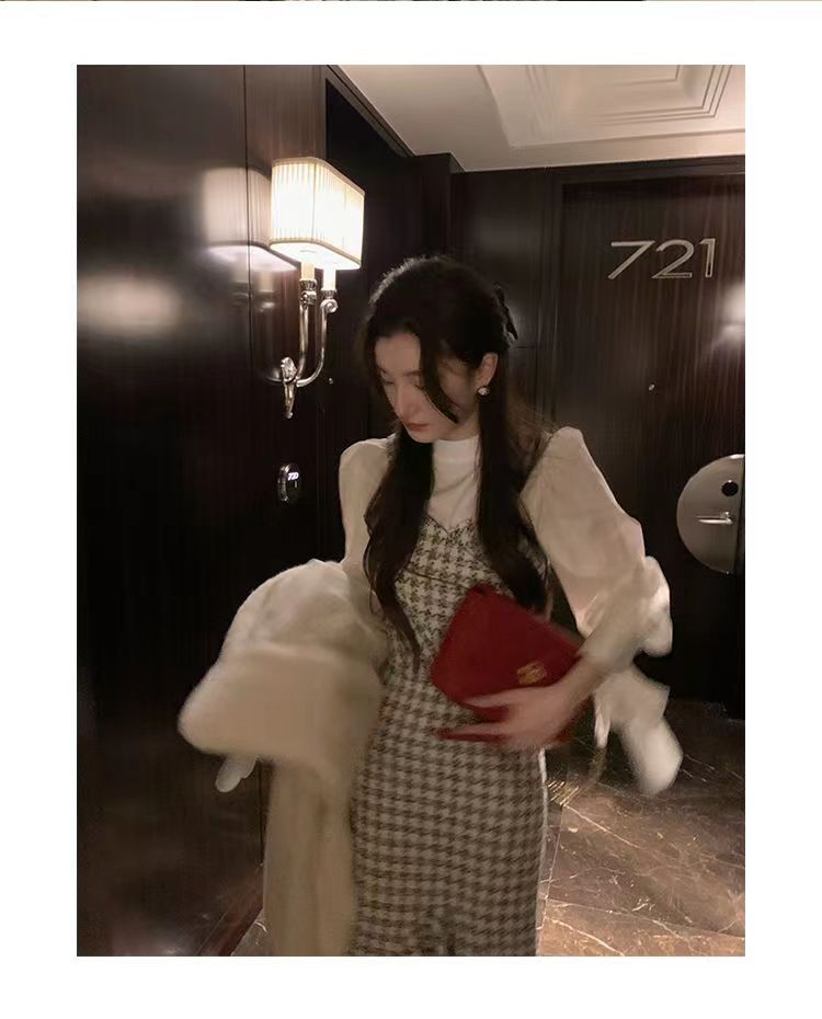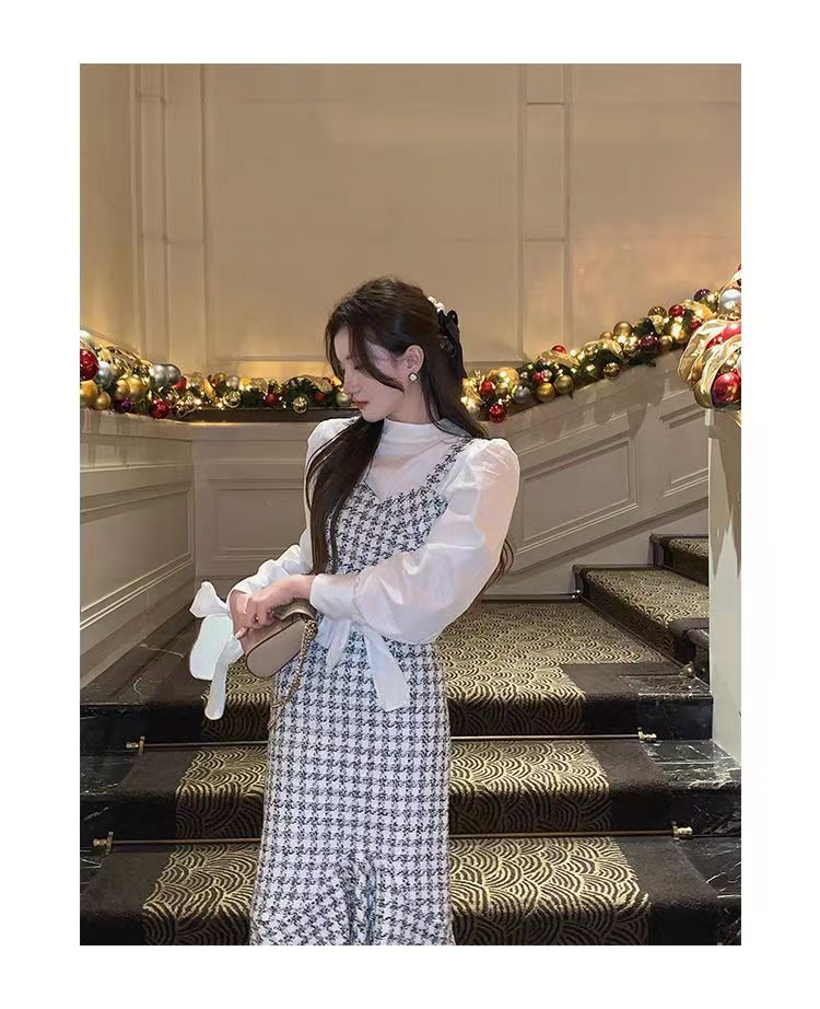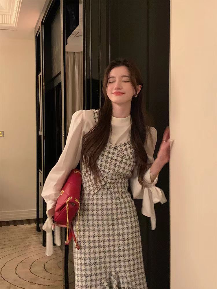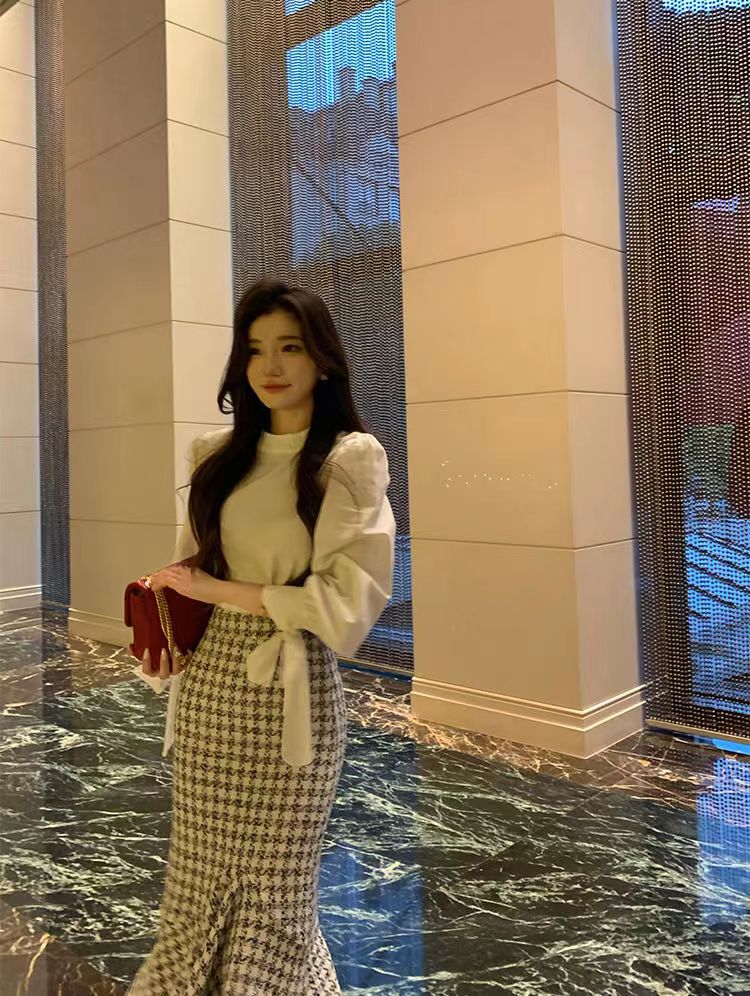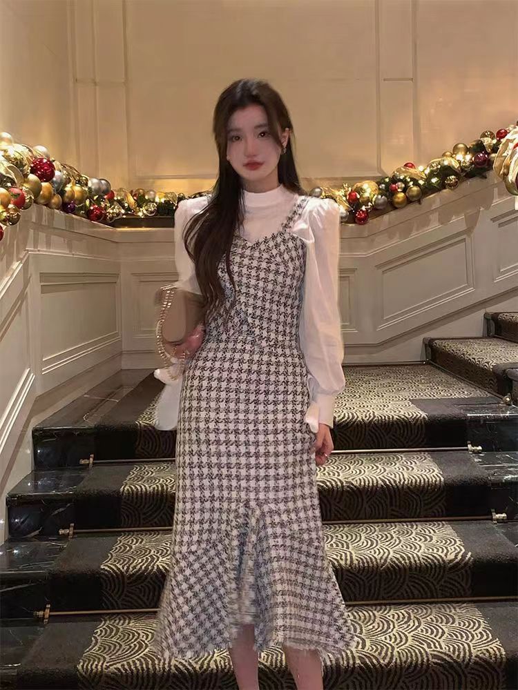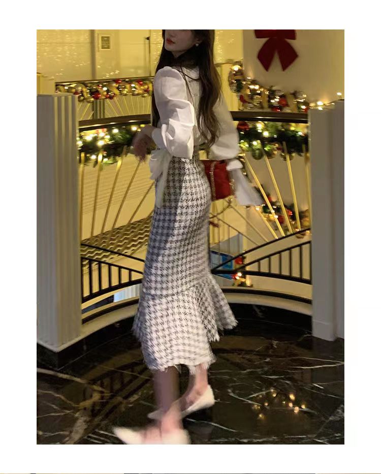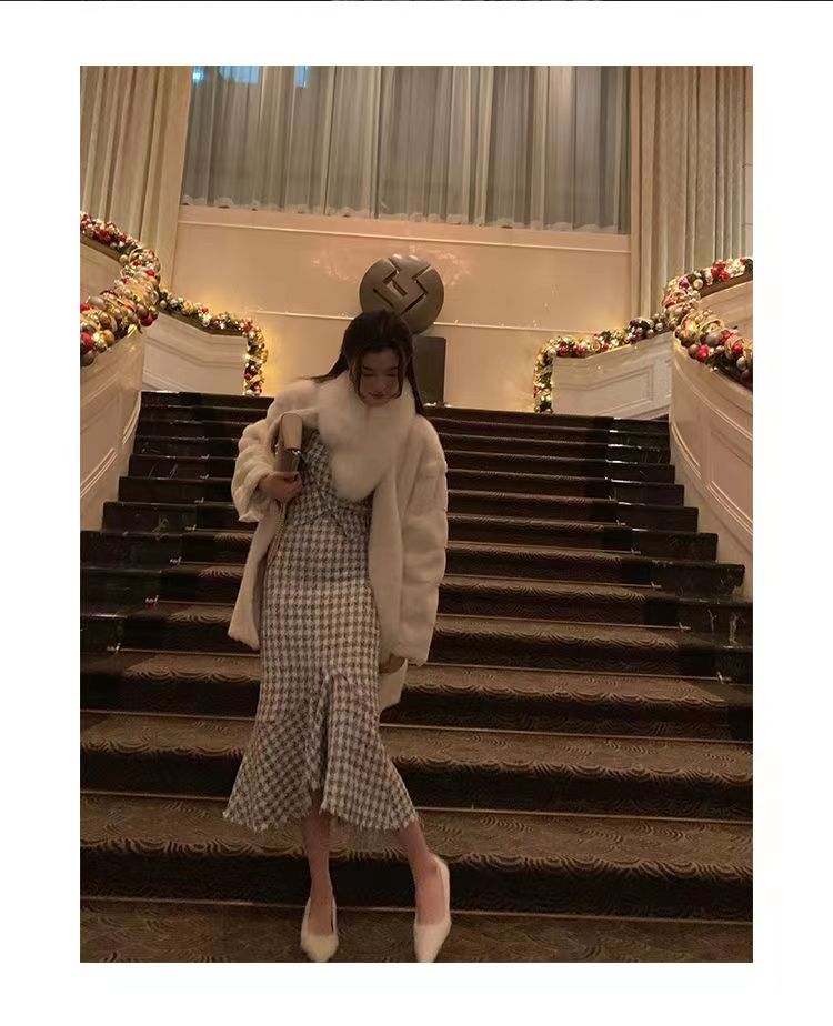 【GT商品推广】千鸟格小香吊带背心鱼尾裙GT2311136