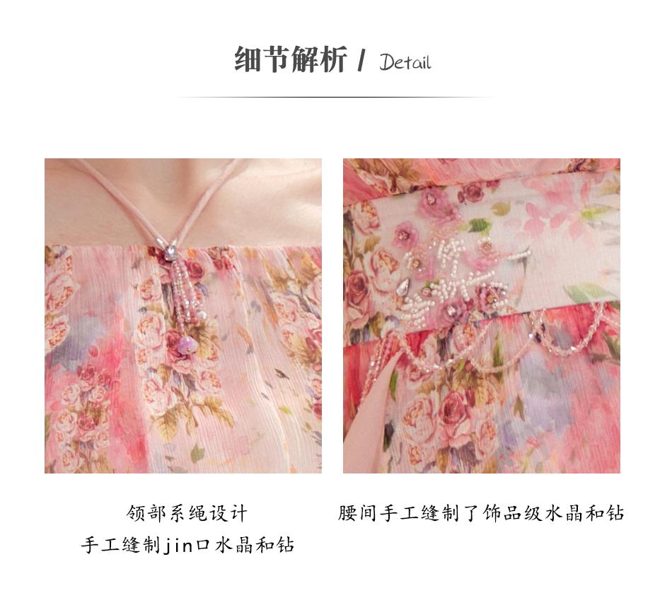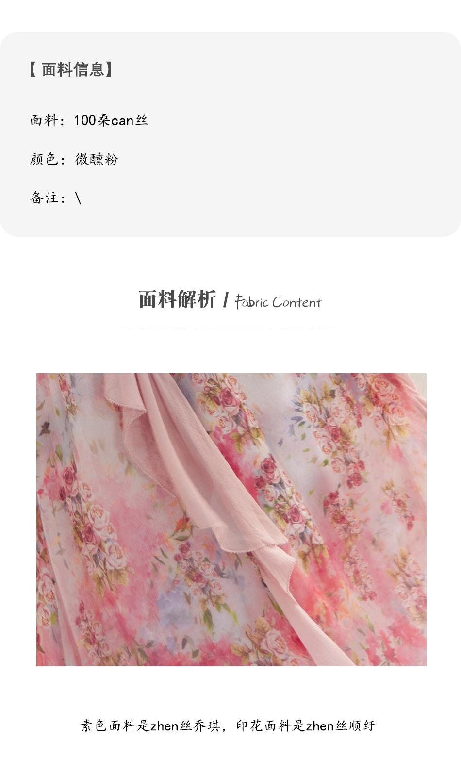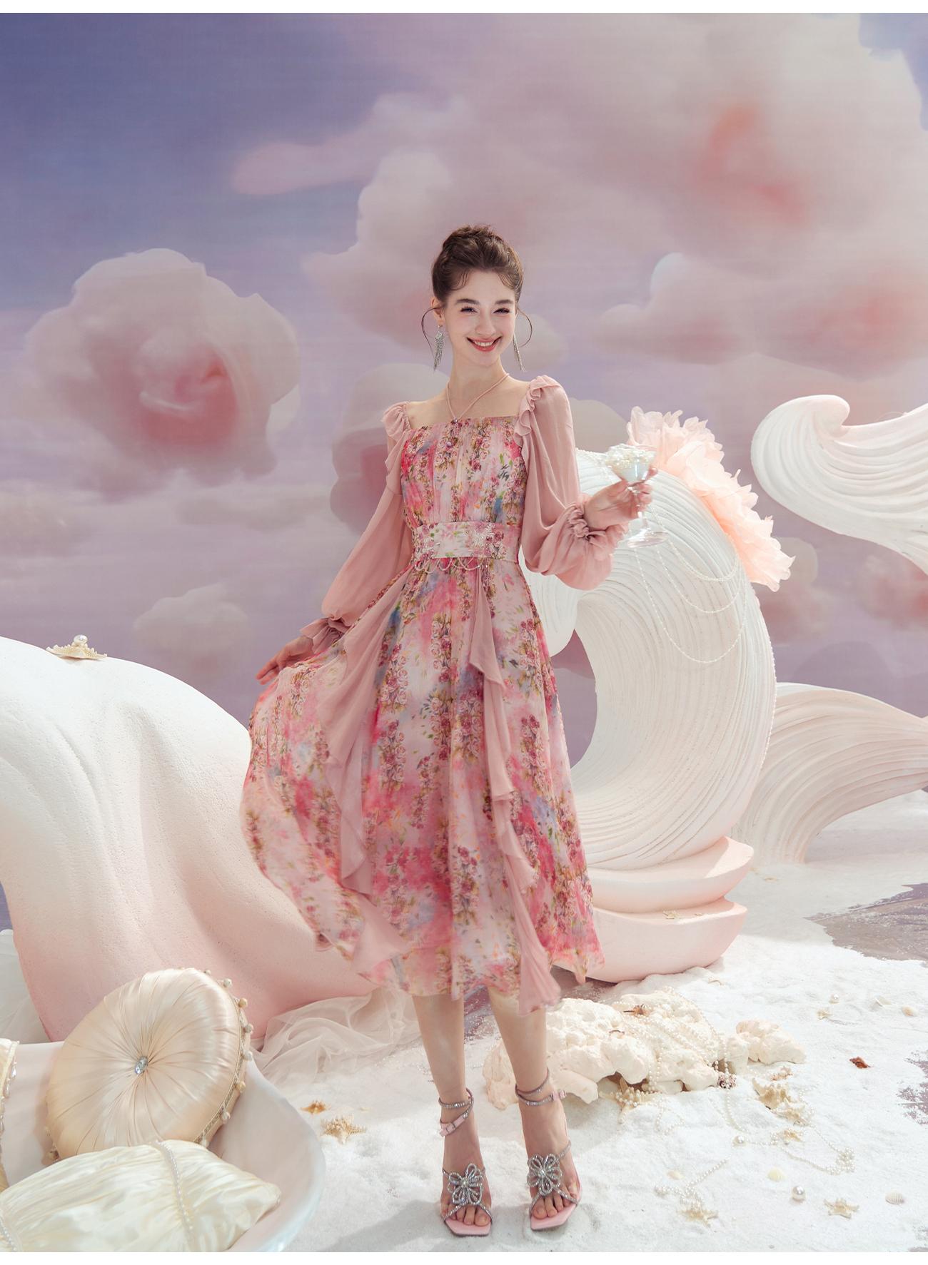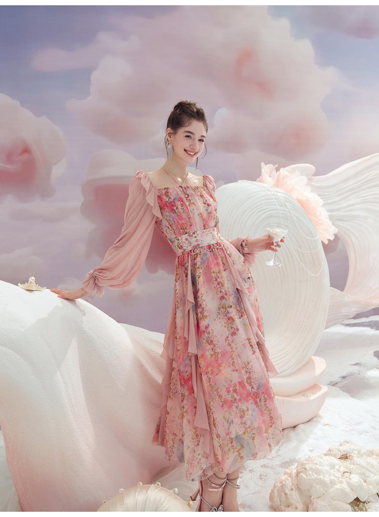 余潇潇【桃许春色】时髦轻奢法式长款100桑蚕丝连衣裙