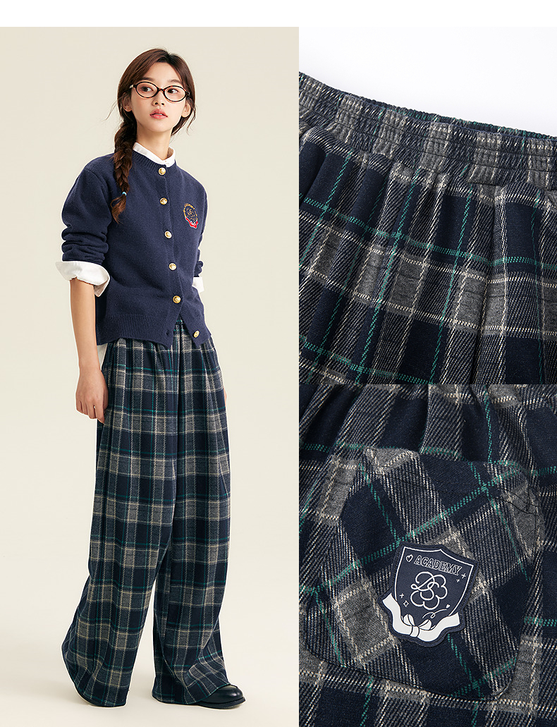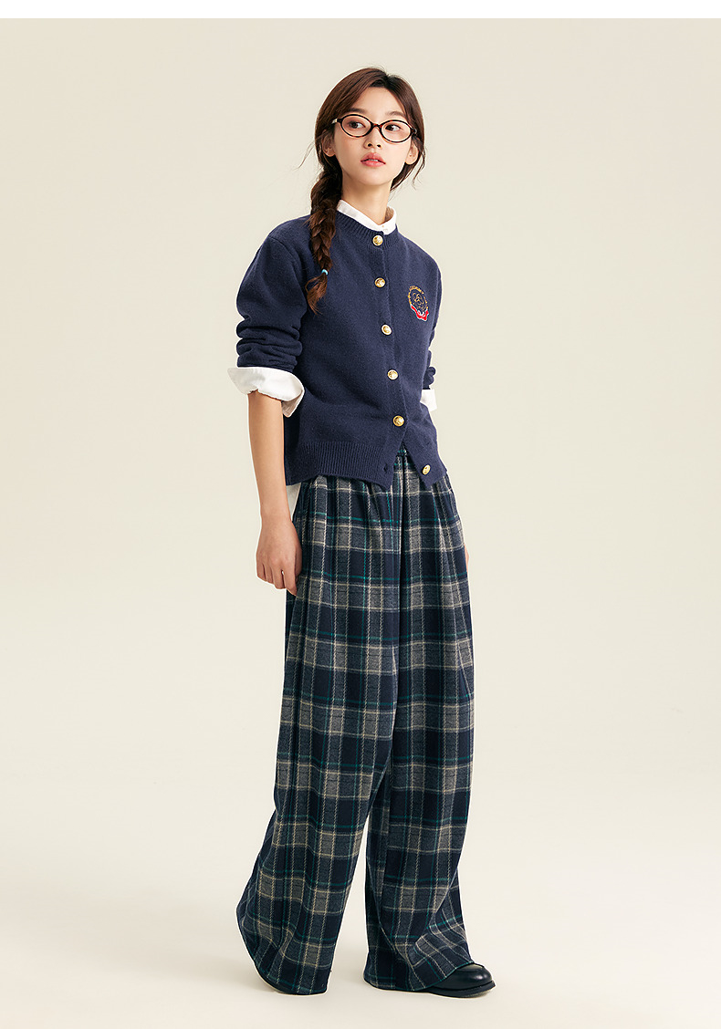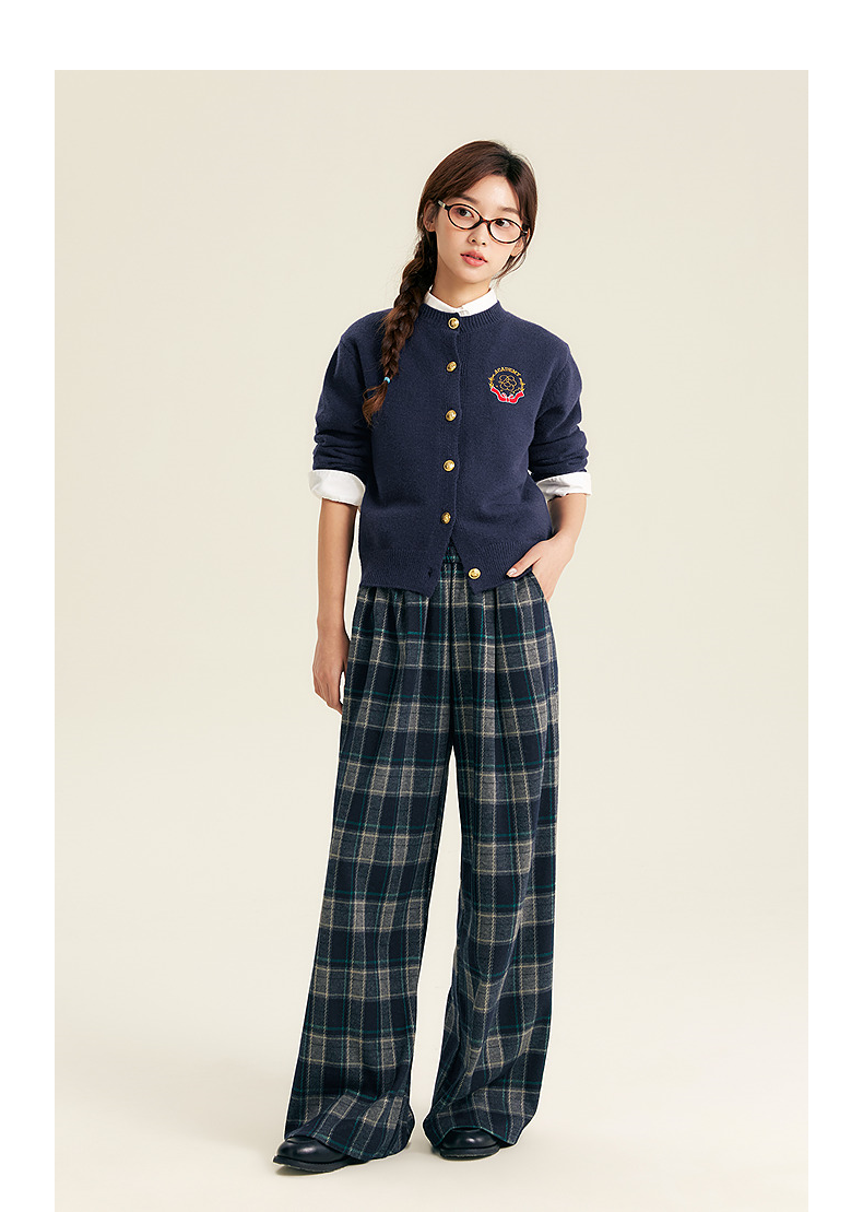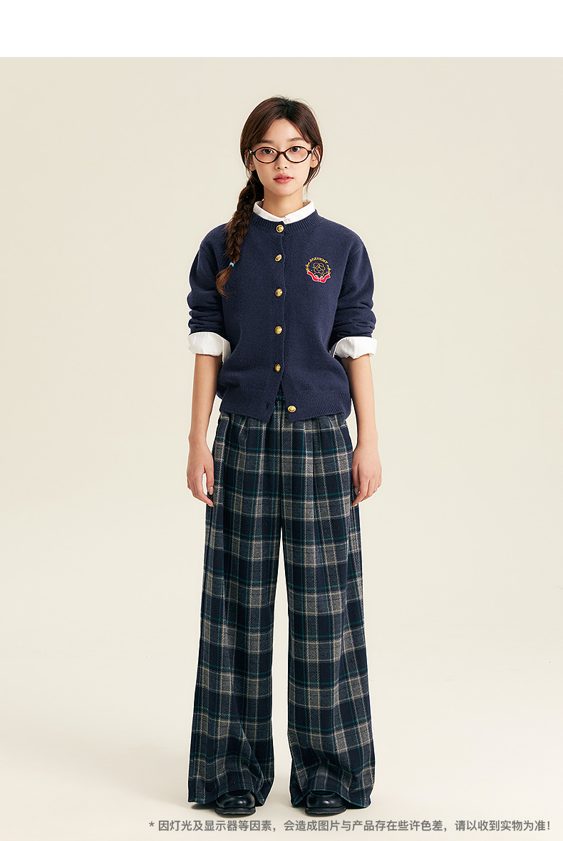 笛莎Deesha青少年女童裤子2025秋季女童复古格纹直筒休闲裤