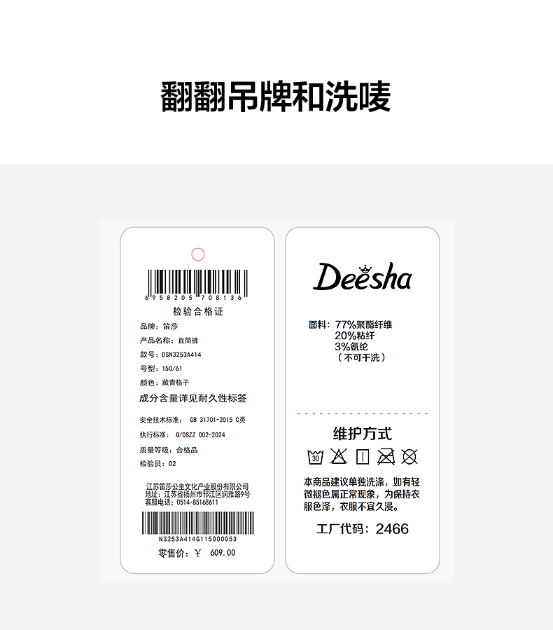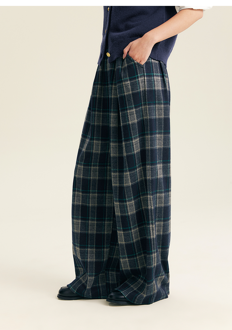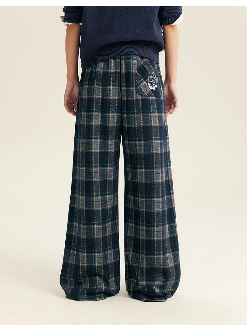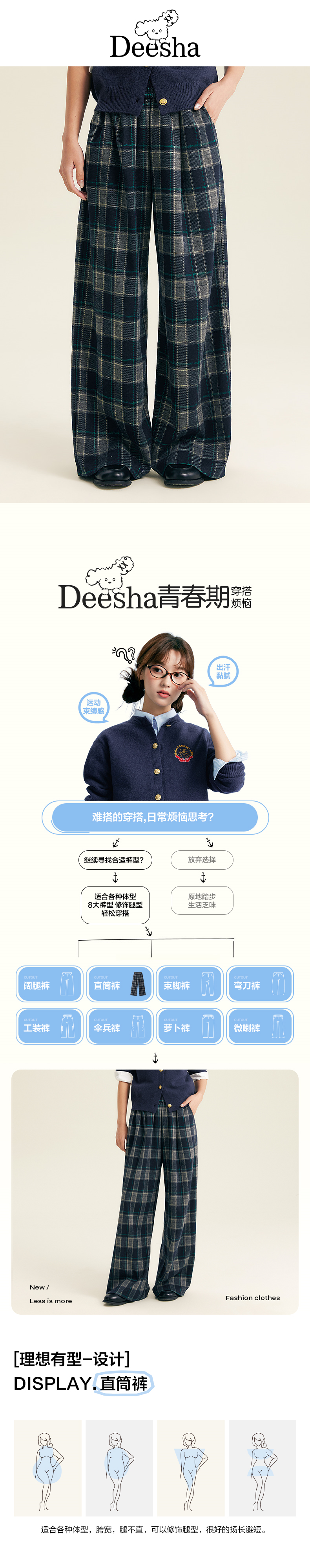笛莎Deesha青少年女童裤子2025秋季女童复古格纹直筒休闲裤