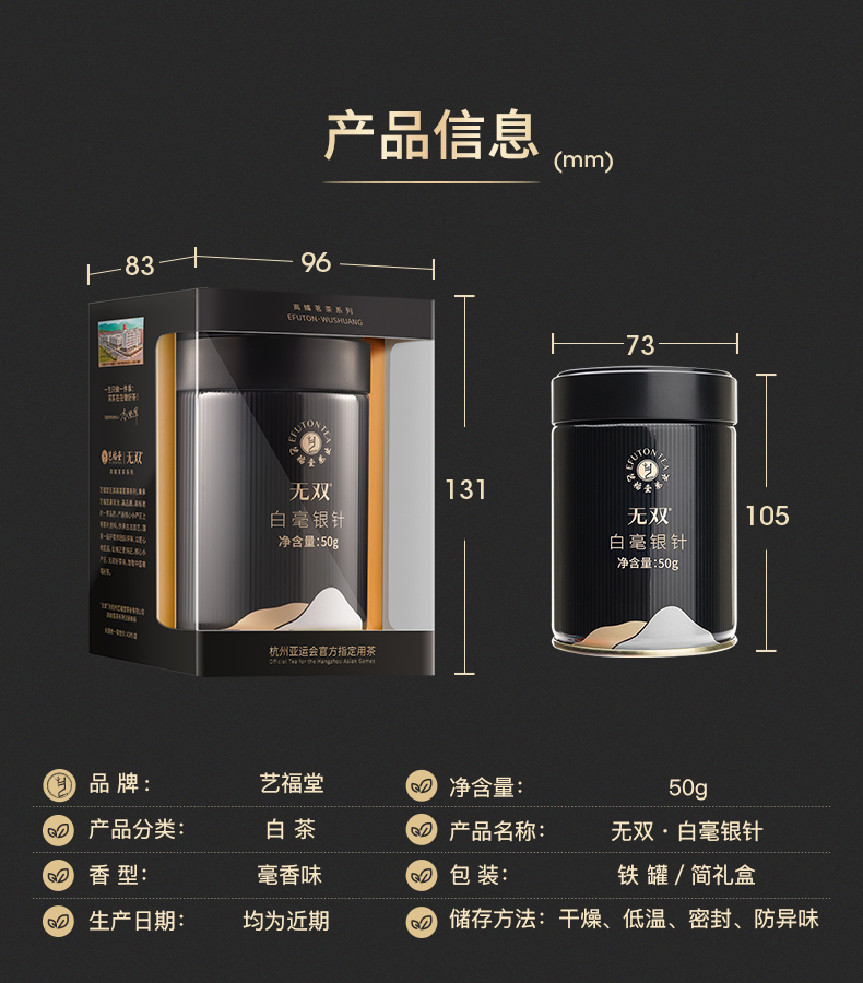 艺福堂 无双 特级18年白毫银针 福鼎正宗 礼盒装 50g/罐