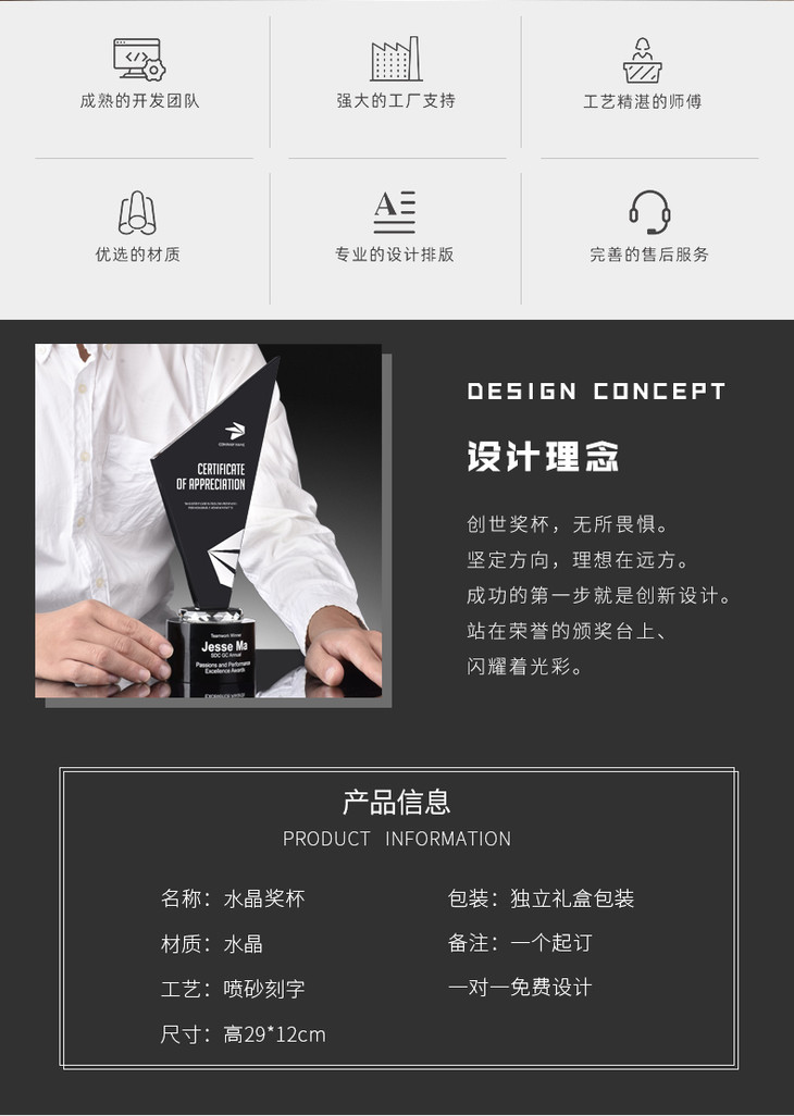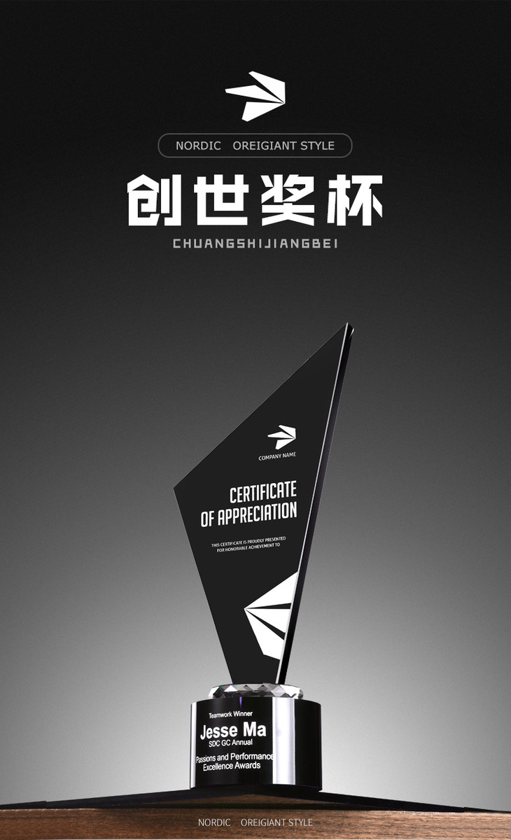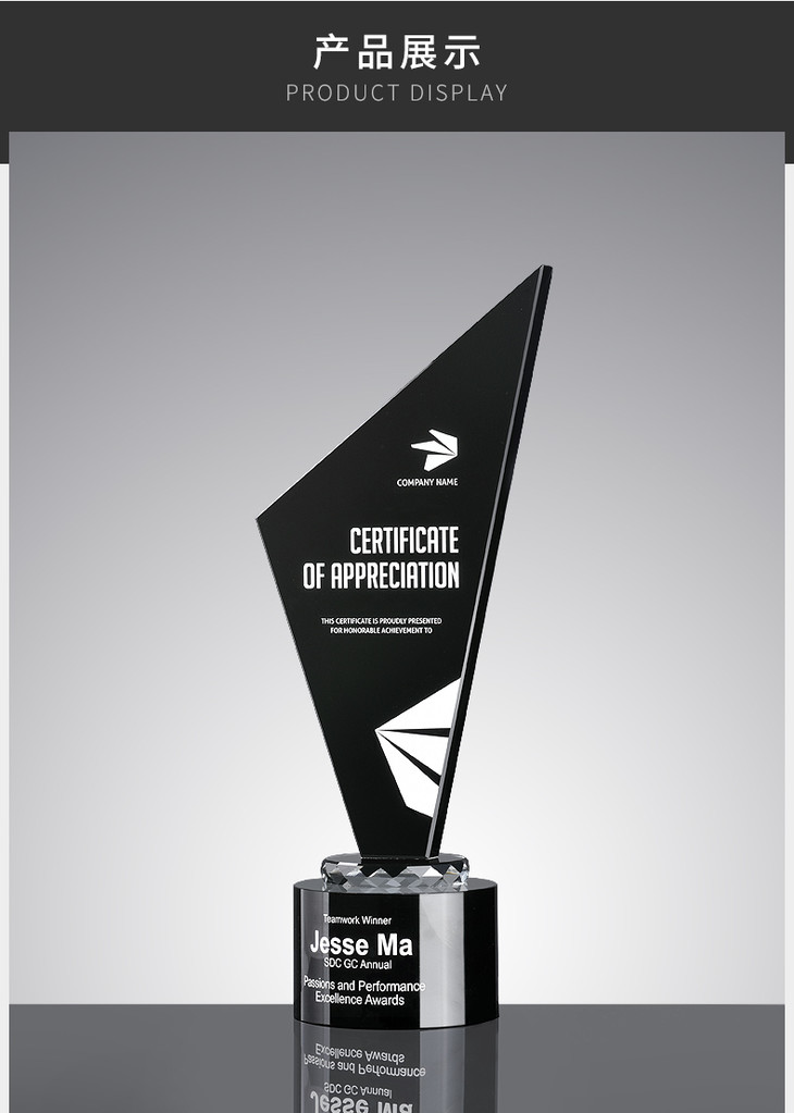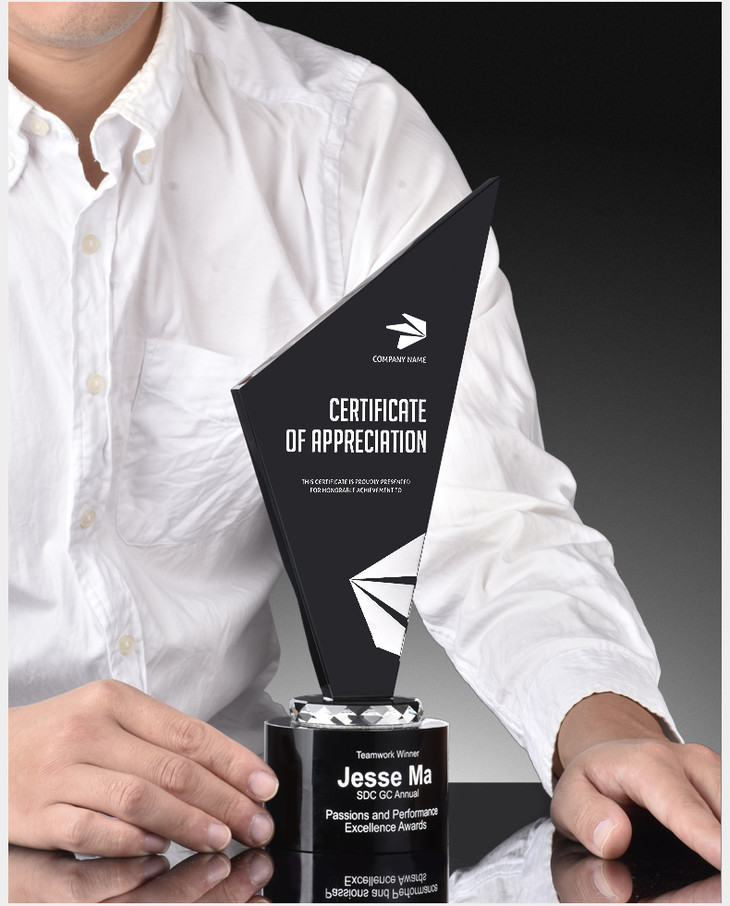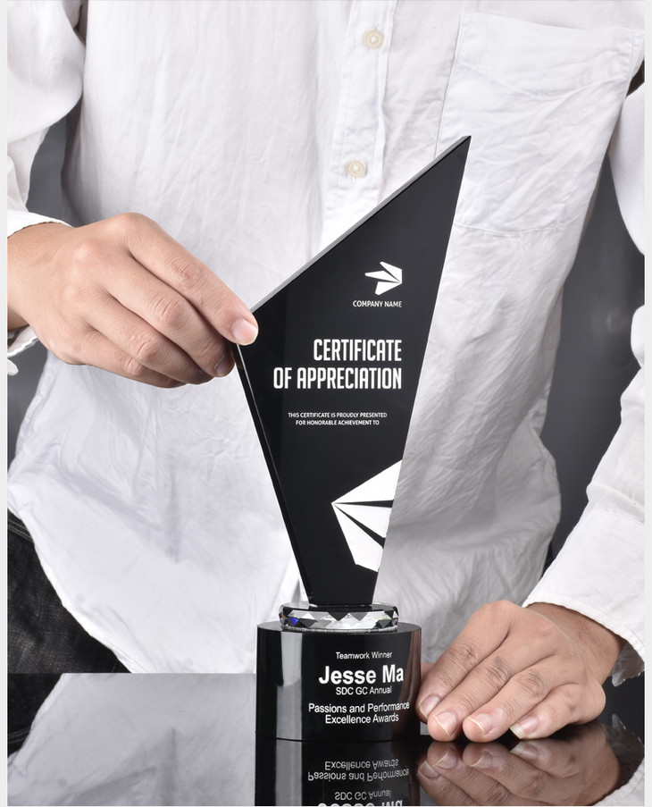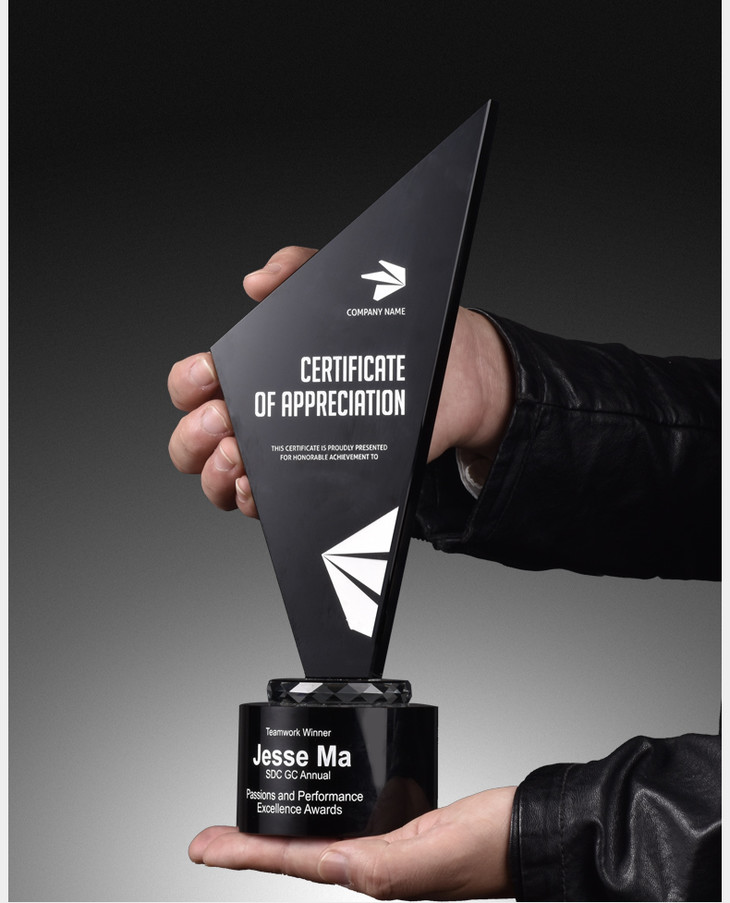 黑水晶奖杯创意优秀员工奖品奖牌比赛荣誉定制定做个性高档纪念品