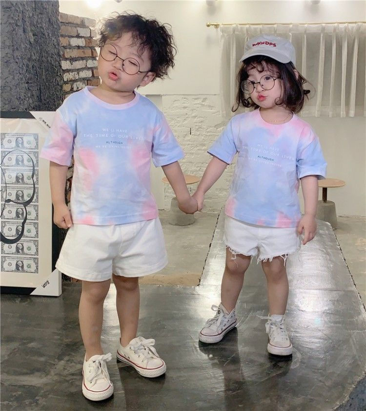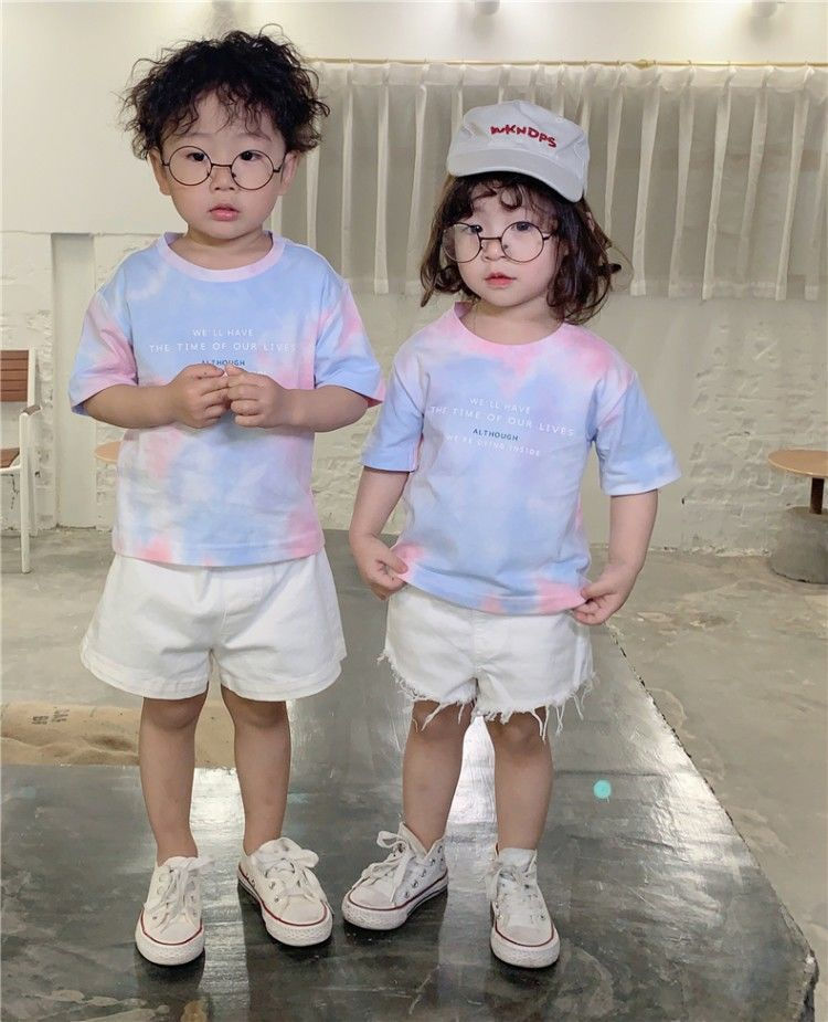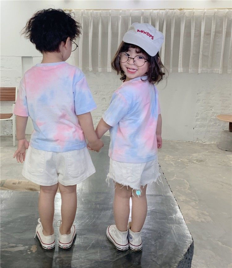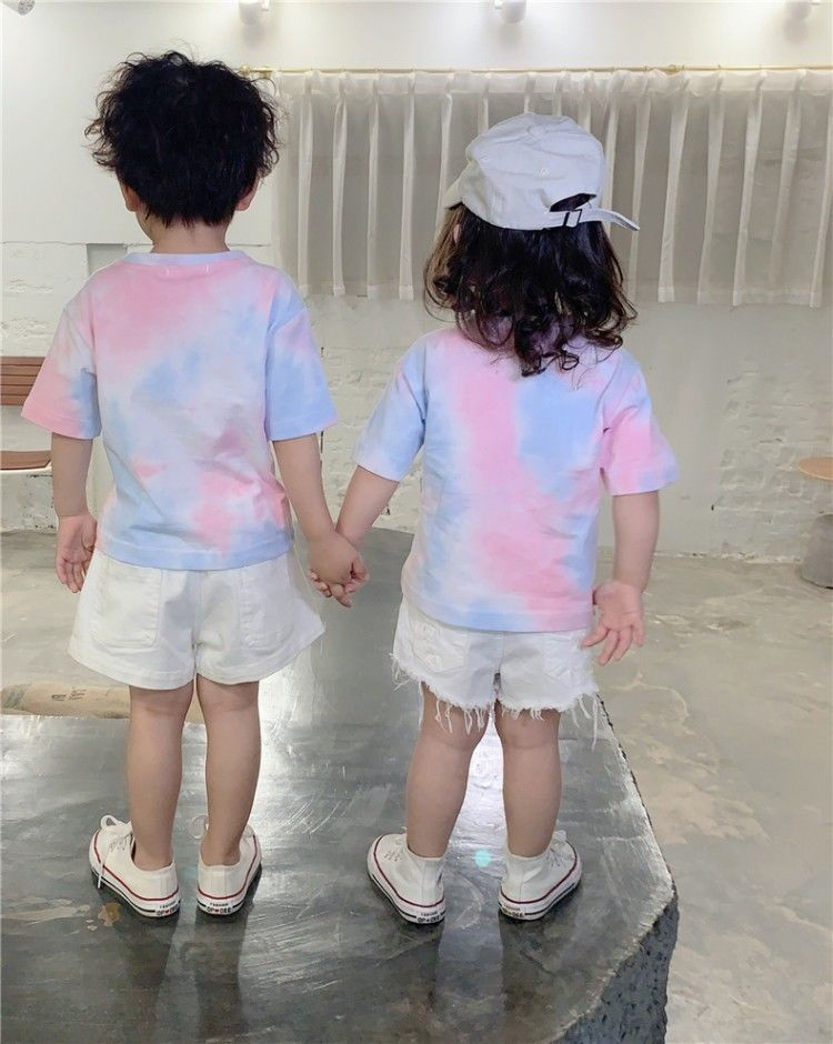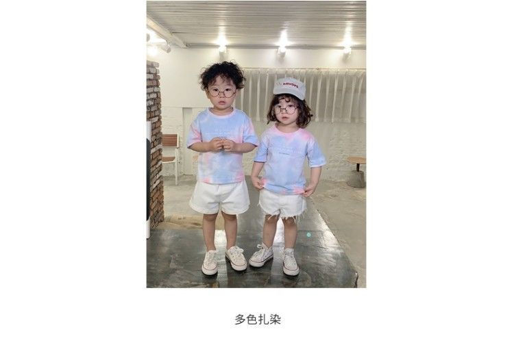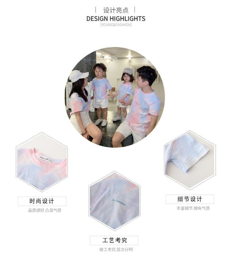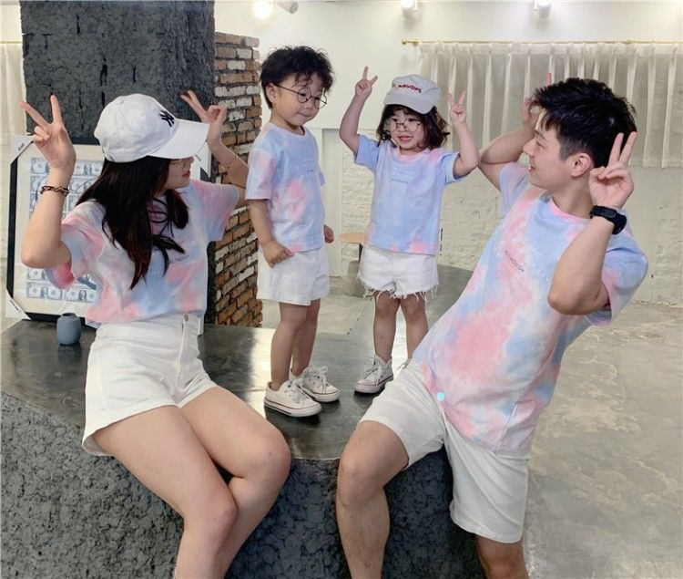黛唯梵扎染T恤短袖亲子装一家三口四口夏季韩版休闲时尚母女父子装上衣国庆清明出游