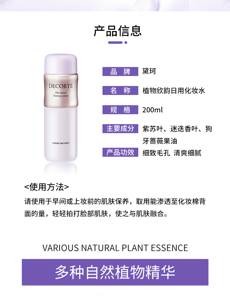 黛珂植物欣韵爽肤化妆水200ml 补水保湿水油平衡