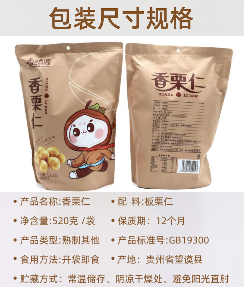「下单送试吃1包」香粒渥优品香栗仁520g/袋 地理标志产地 贵州望谟板栗