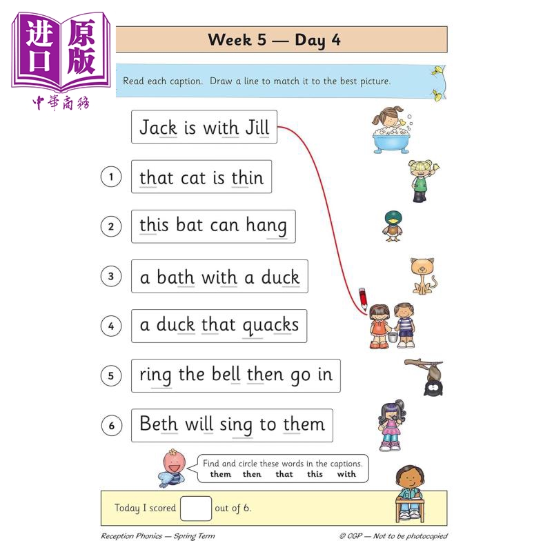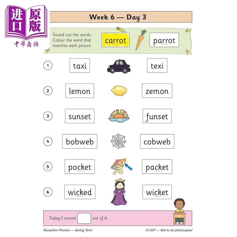 【中商原版】英国原版CGP教辅 新版自然拼读日常练习幼儿园春季学期 New Phonics Daily Practice Book Reception Spring Term