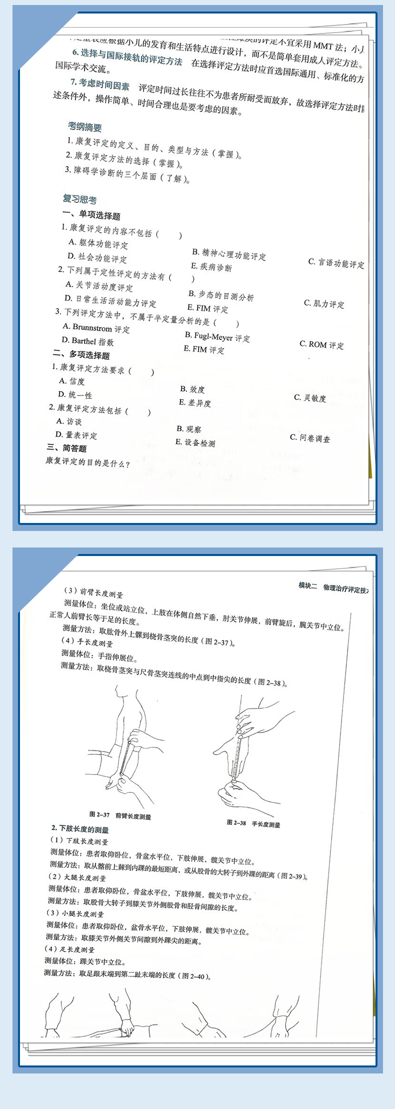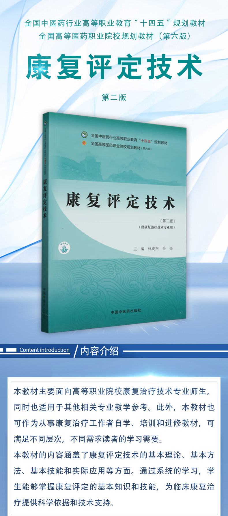 本教材的内容涵盖了康复评定技术的基本理论、基本方法、基本技能和实际应用等方面。通过系统的学习,学生能够掌握康复评定的基本知识和技能,为临床康复治疗提供科学依据和技术支持。