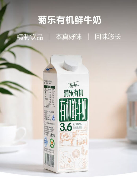 菊乐 巴氏杀菌 有机鲜牛奶 950ml(盒)
