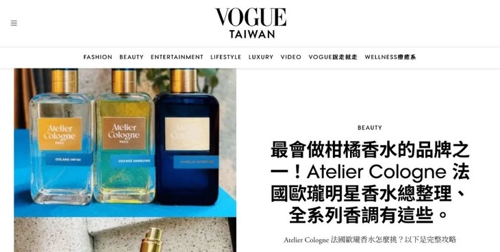 Atelier Cologne曾在2012年在有着香水“奥斯卡”之称的菲菲香水大奖中获得最佳古龙水的殊荣,vogue评价他是最会做柑橘香水的品牌之一!