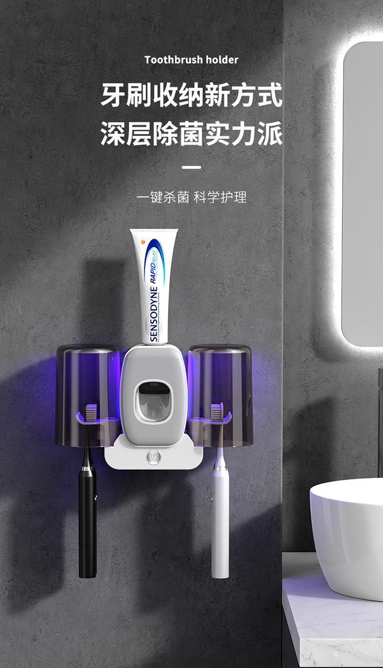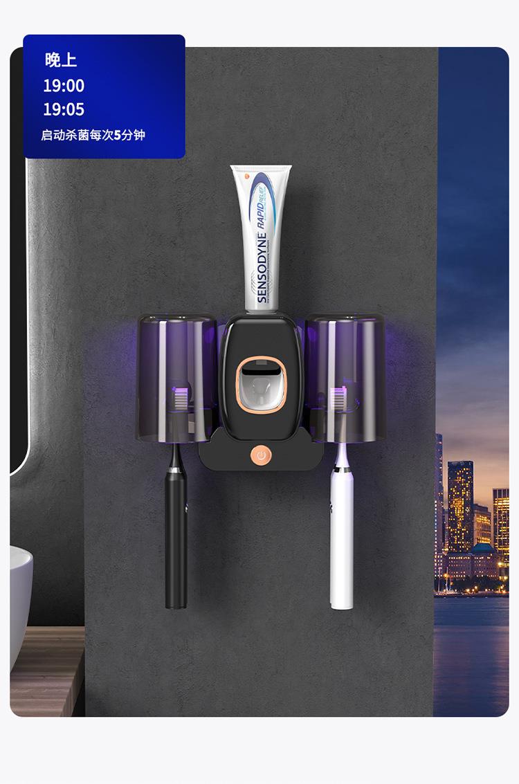 情侣两杯壁挂式牙刷架紫外线消毒器智能电动牙刷牙杯牙膏置物架