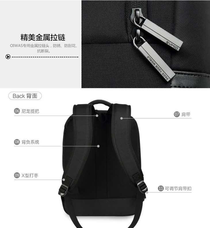爱华仕 时尚商务双肩背包大容量休闲旅游背包男女OCB421901003U