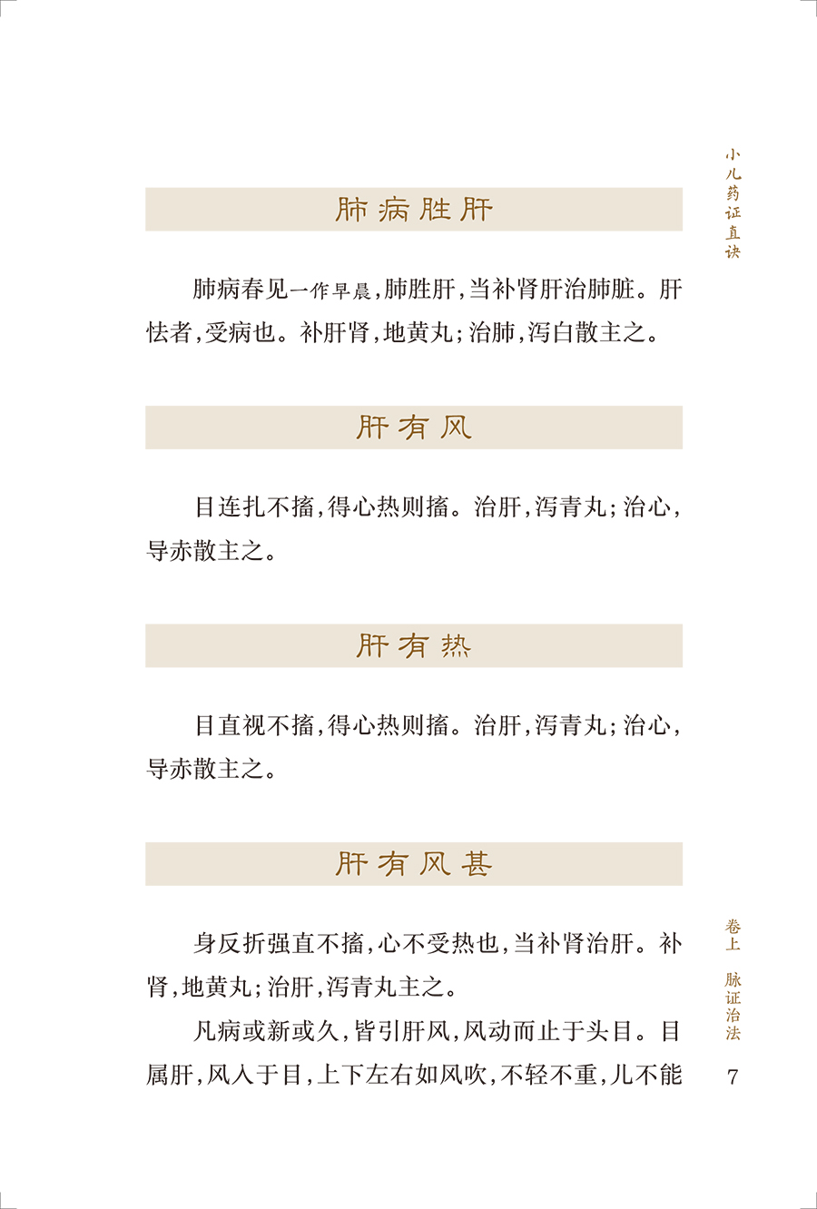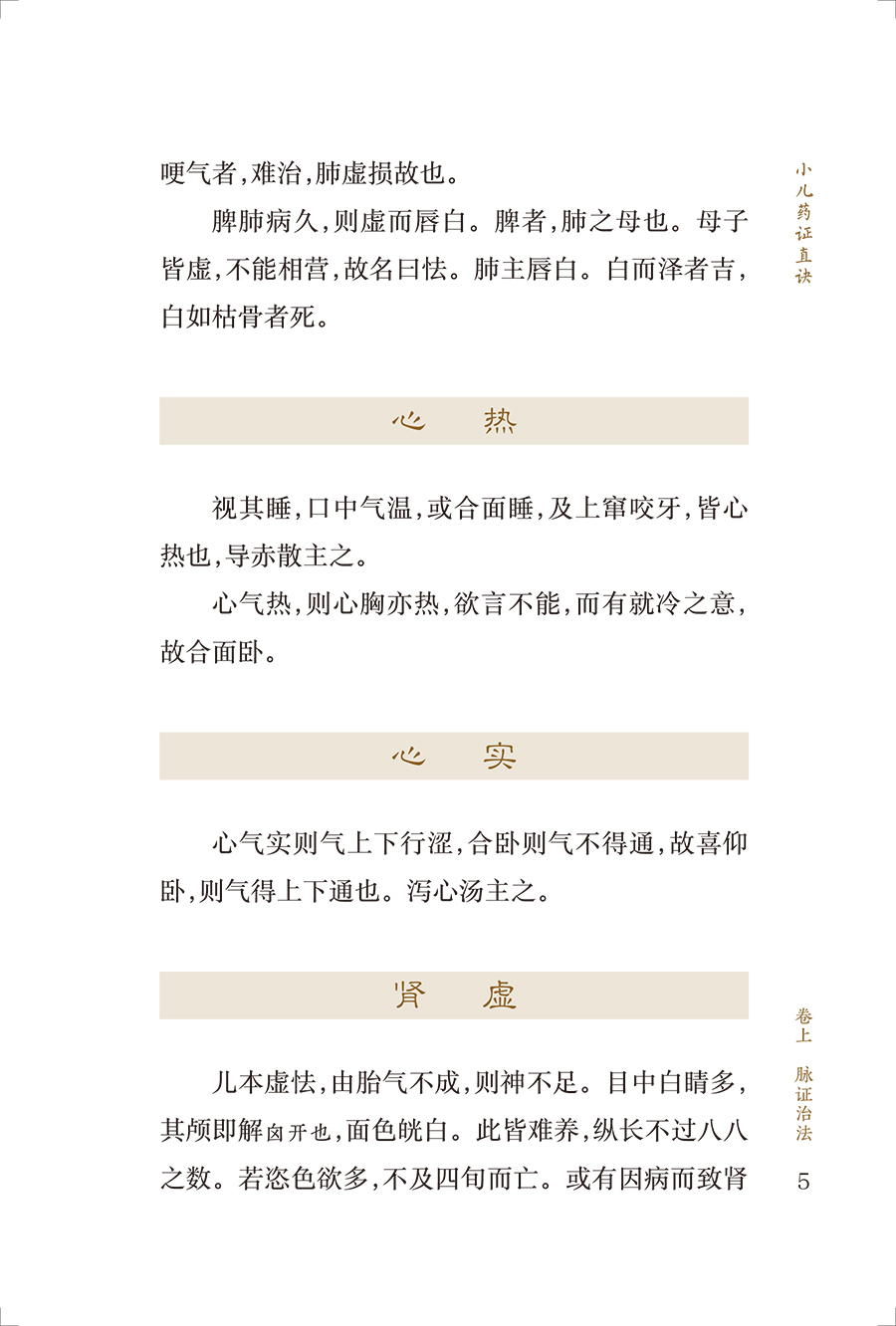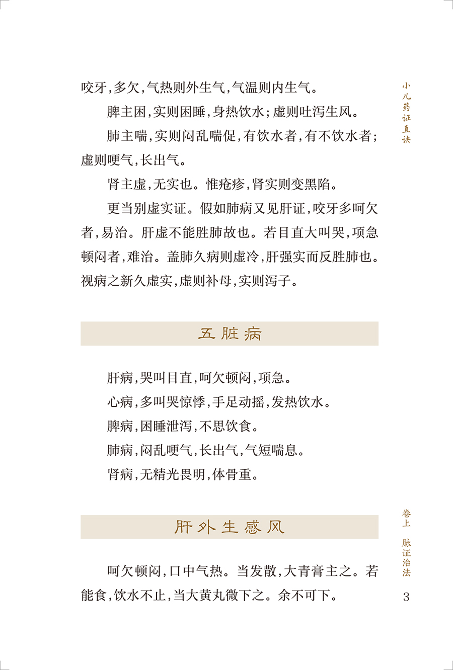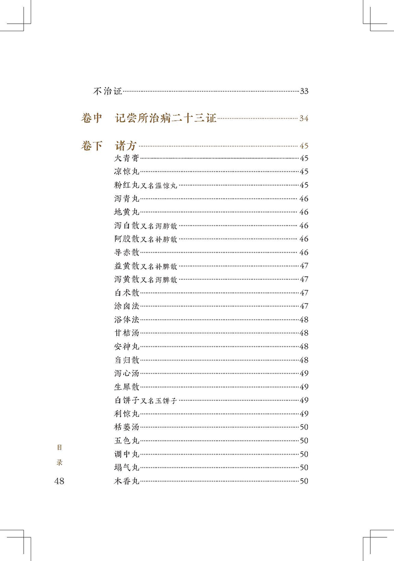 《小儿药证直诀》是我国现存最早的儿科专著,在儿科发展史上占有重要地位。全书3卷,上卷脉证治法,论及小儿的生理、病理,五脏辨病论治,列举常见小儿病证80余条;中卷记尝所治病,经钱乙治疗的危重疑难病案23个,充分展示了他的医学观点;下卷诸方,介绍了钱乙经验方120首。书后附有《阎氏小儿方论》《董氏小儿斑疹备急方论》。该书反映了宋代多个医家的经验方,具有简练实用的特点。儿科鼻祖钱乙研制的五脏补泻方剂,成为后世医家临证研究、化裁古方的重要参考。