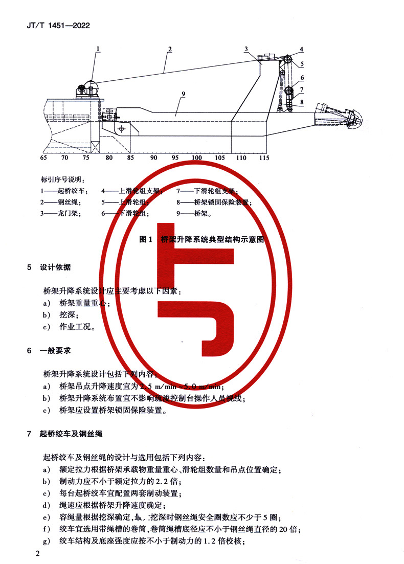 绞吸挖泥船桥架升降系统设计技术要求(JT/T 1451—2022)