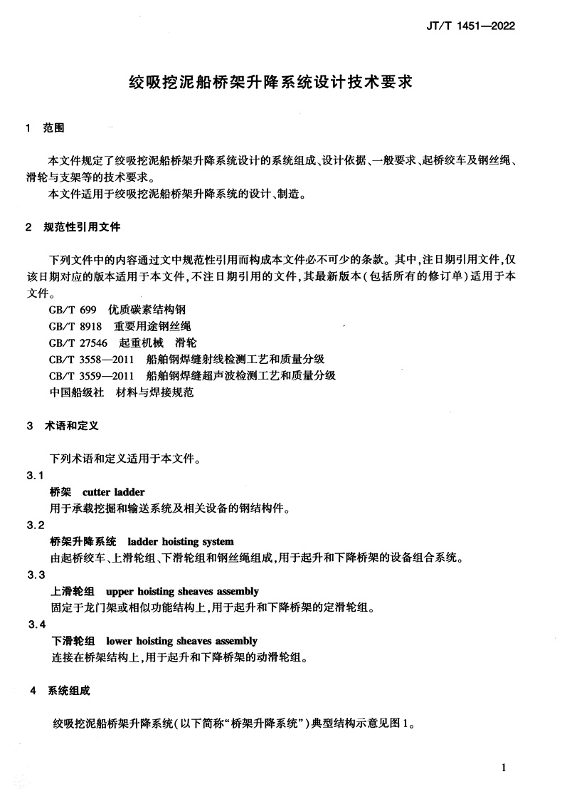 书名:绞吸挖泥船桥架升降系统设计技术要求(JT/T 1451—2022)
