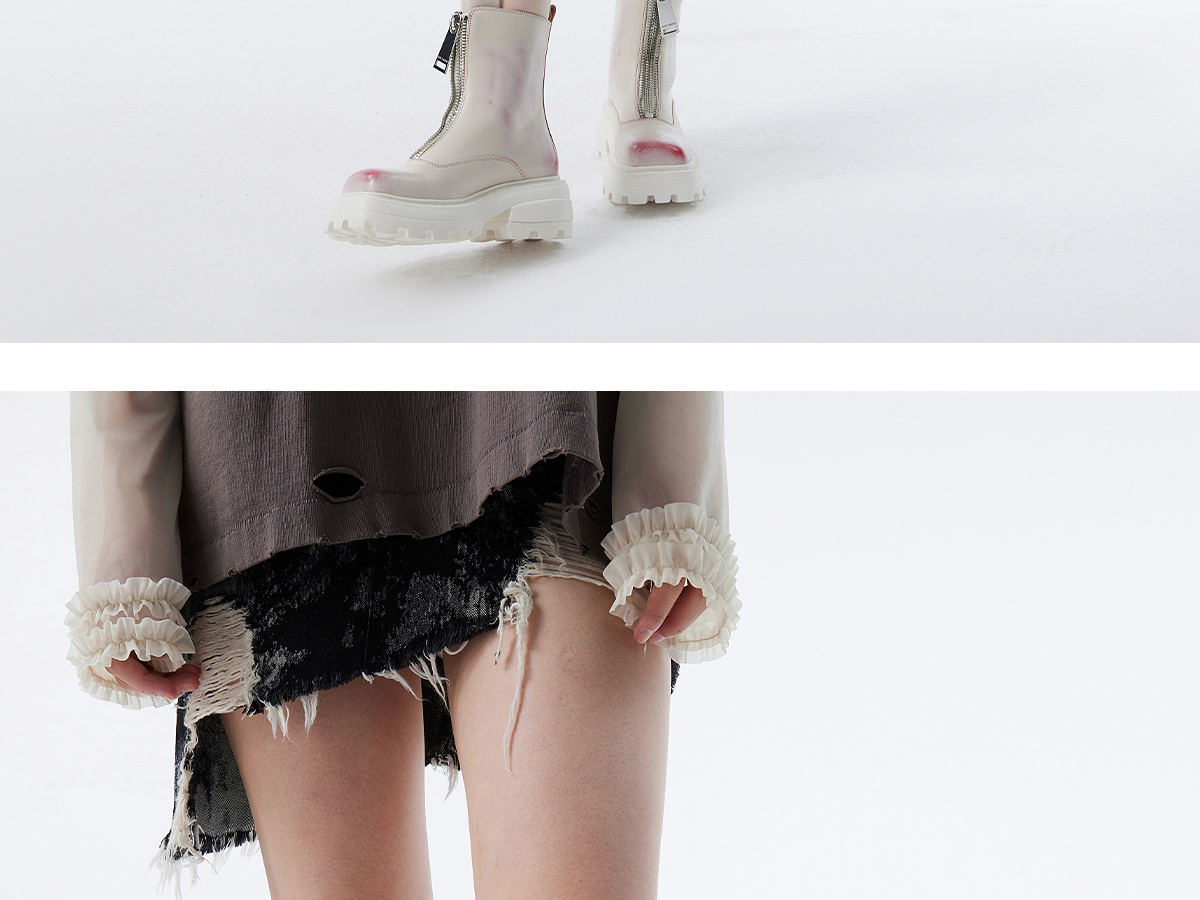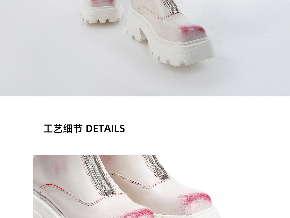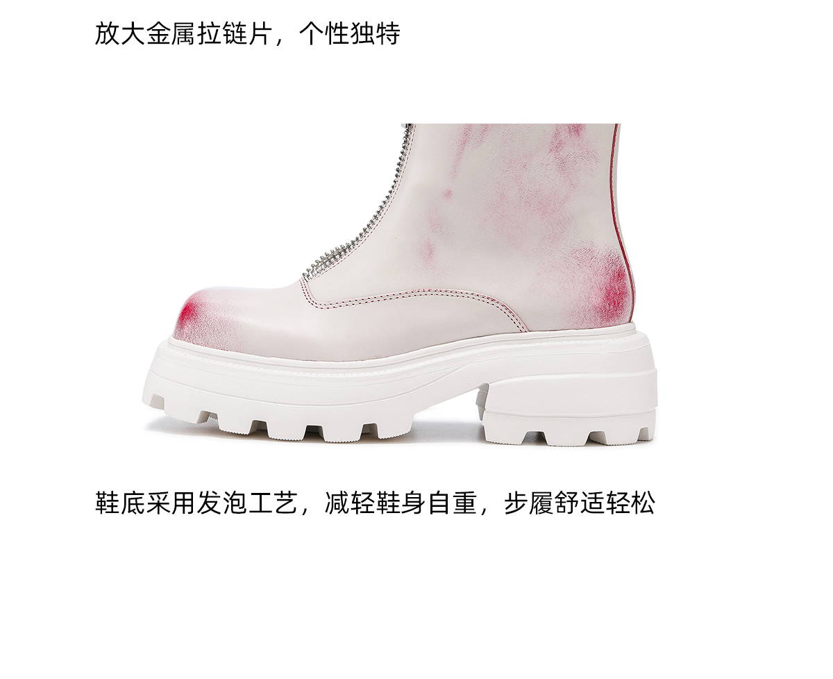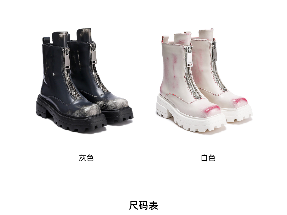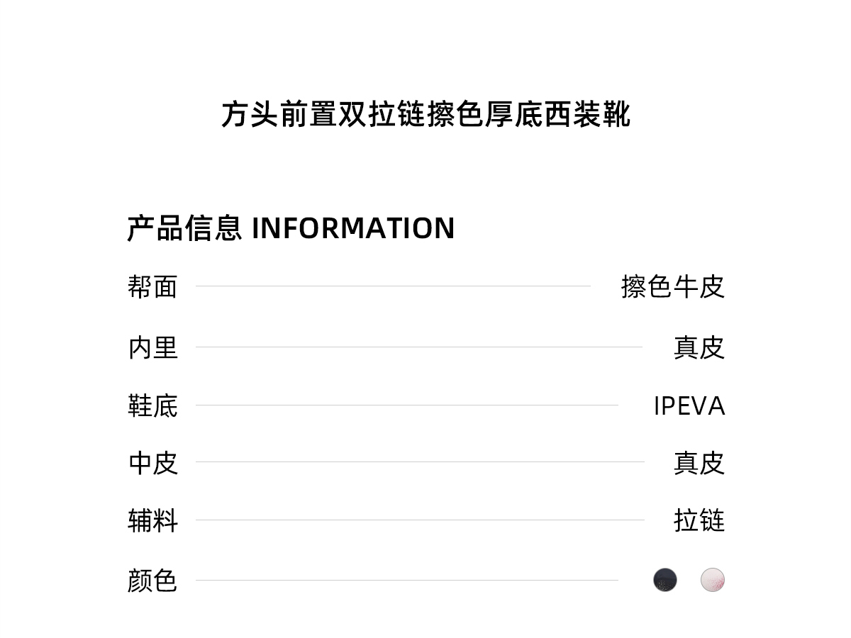 lost in echo 西装靴系列方头前置双拉链擦色厚底西装靴