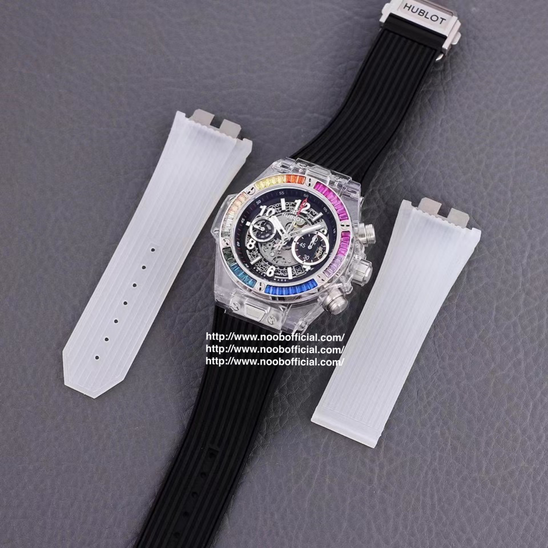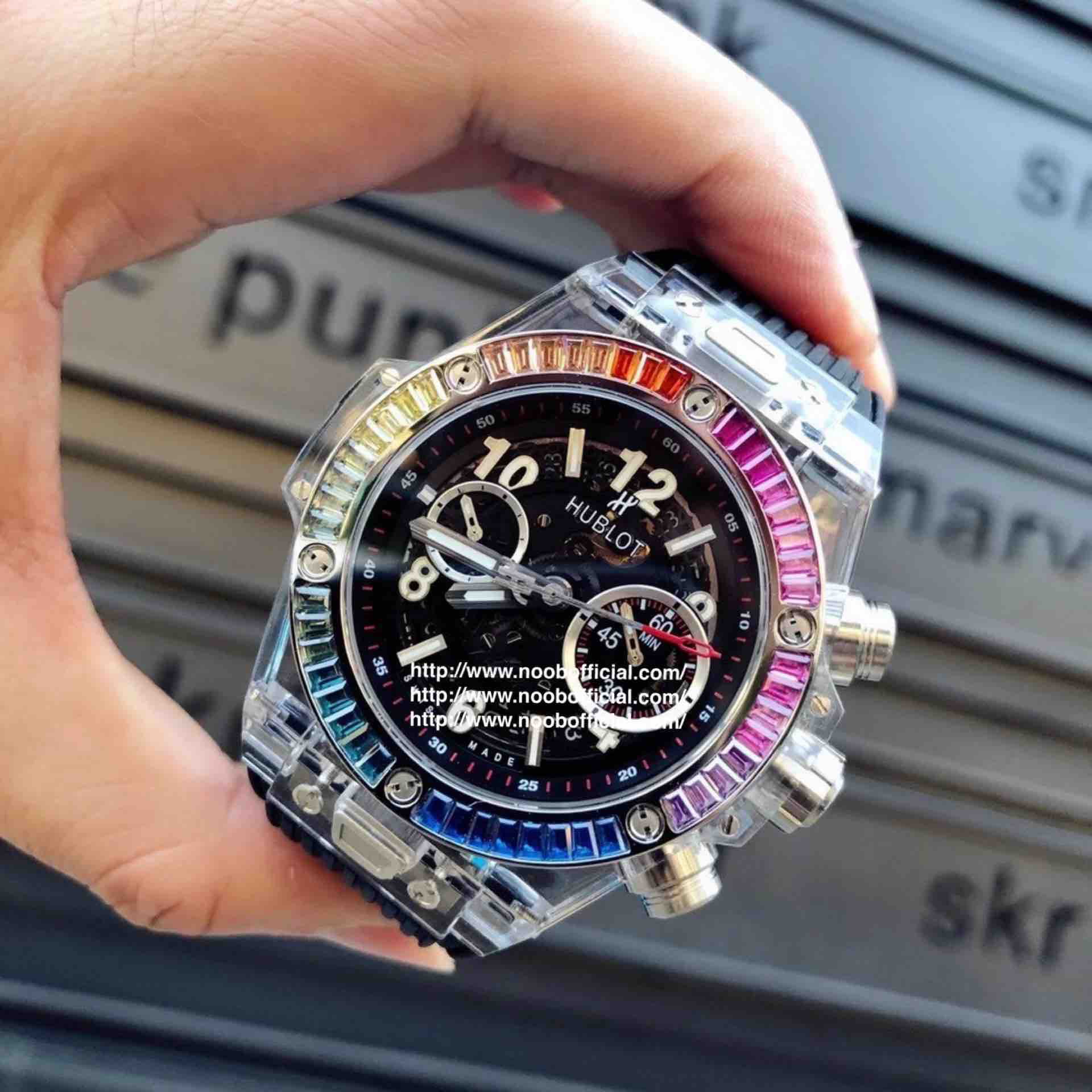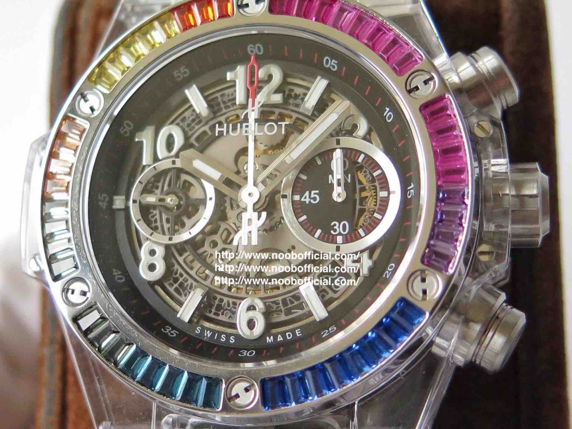 V2版少量到货HB 恒宝宇舶表年度 作品——宇舶BIG BANG系列411.JX.4802.RT“全透明腕表”【精彩细节】1.还原正品表盘后龙飞凤舞的镂空布局,2.采用与原装同样的丙烯酸有机玻璃极致克隆——完成不可能完成的任务。该材质不仅硬度高,且具有抗腐蚀,耐磨损等卓越物理特性。【机芯功能】腕表直径45mm。采用增强版计时7750机芯改原装HUB.1242型芯,实现所有功能吻合正装。【精益求精】HB工厂全力以赴,层层把关,在保证完美“透视感官”的同时,竭心尽力还原正品的每个细节。【赠品】附赠一副同款不同色的天然橡胶表带(可替代原装)复刻界首款“全透佳作”