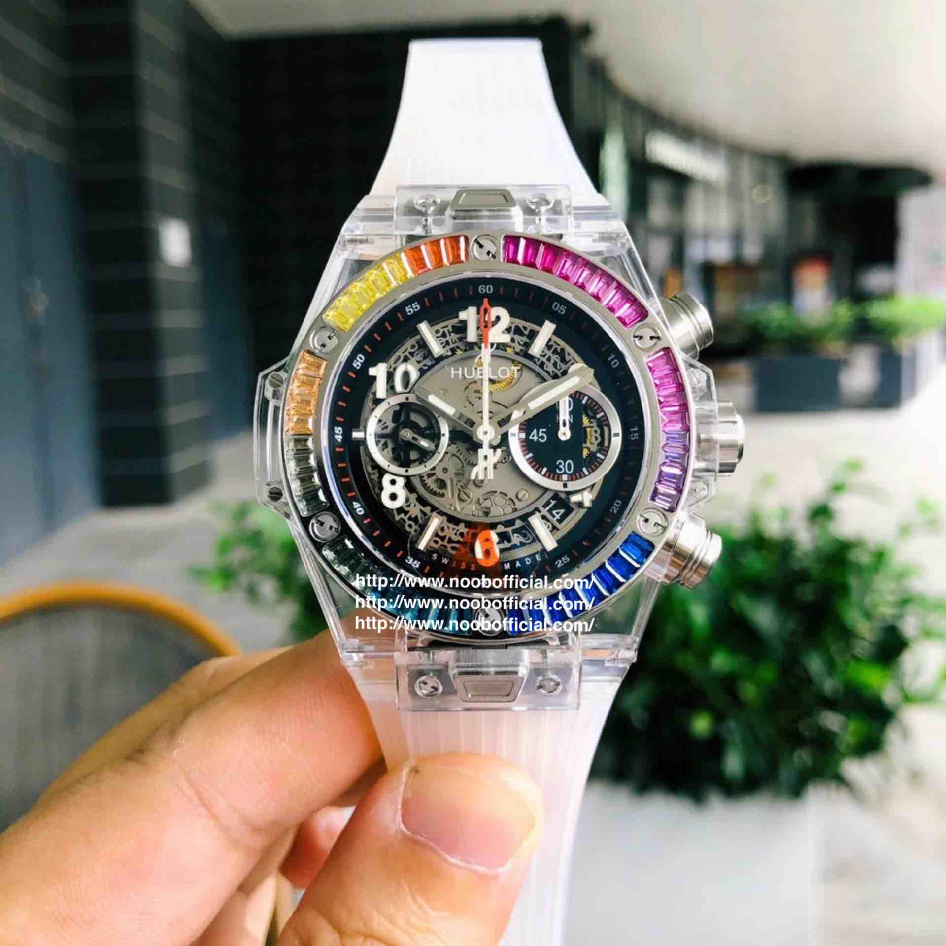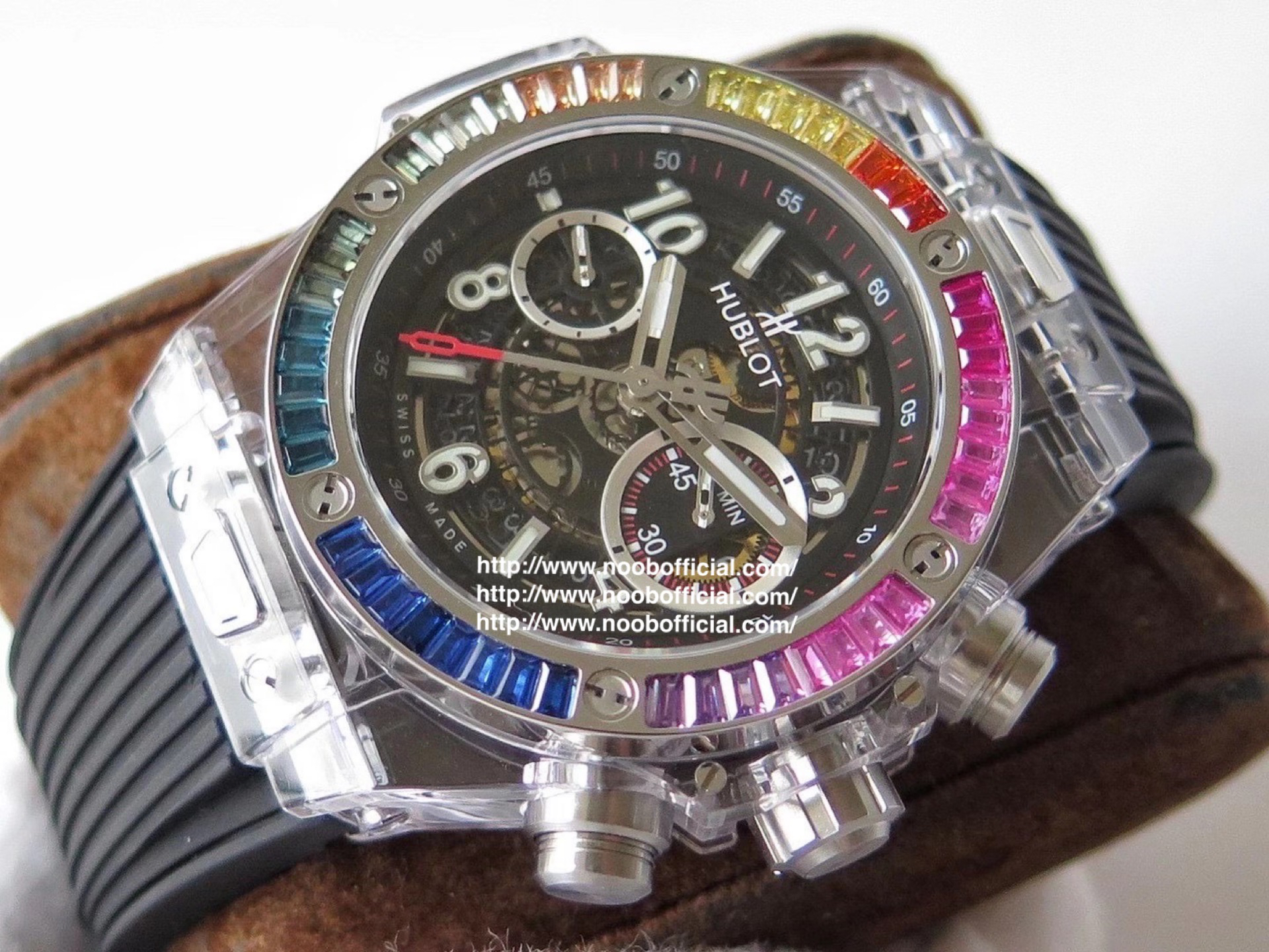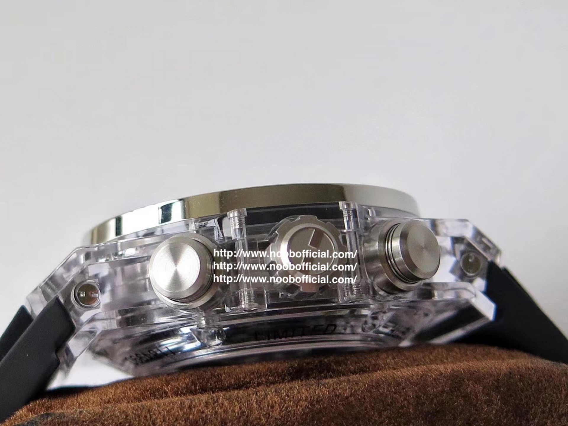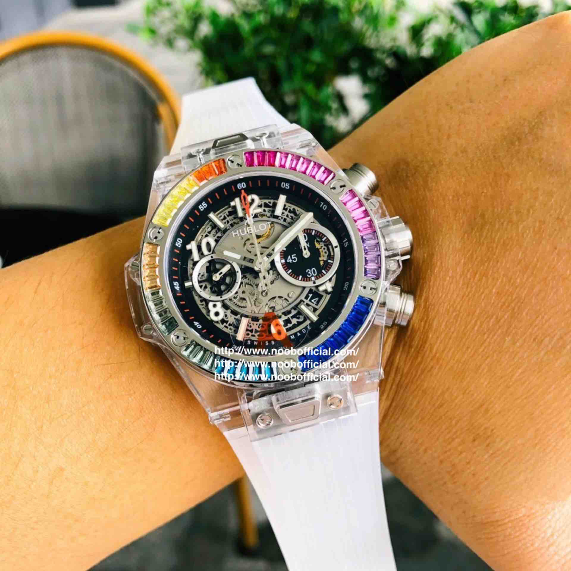V2版少量到货HB 恒宝宇舶表年度 作品——宇舶BIG BANG系列411.JX.4802.RT“全透明腕表”【精彩细节】1.还原正品表盘后龙飞凤舞的镂空布局,2.采用与原装同样的丙烯酸有机玻璃极致克隆——完成不可能完成的任务。该材质不仅硬度高,且具有抗腐蚀,耐磨损等卓越物理特性。【机芯功能】腕表直径45mm。采用增强版计时7750机芯改原装HUB.1242型芯,实现所有功能吻合正装。【精益求精】HB工厂全力以赴,层层把关,在保证完美“透视感官”的同时,竭心尽力还原正品的每个细节。【赠品】附赠一副同款不同色的天然橡胶表带(可替代原装)复刻界首款“全透佳作”