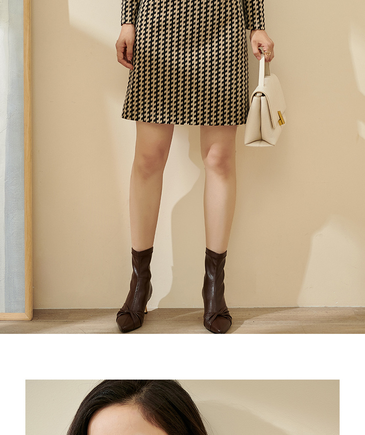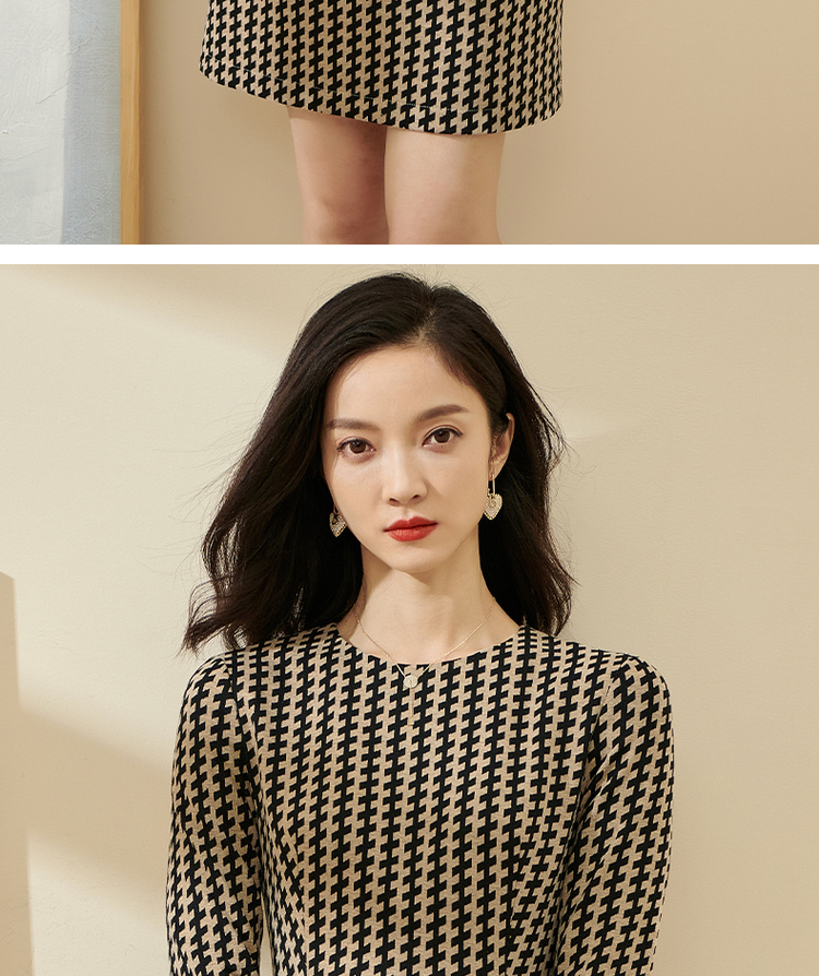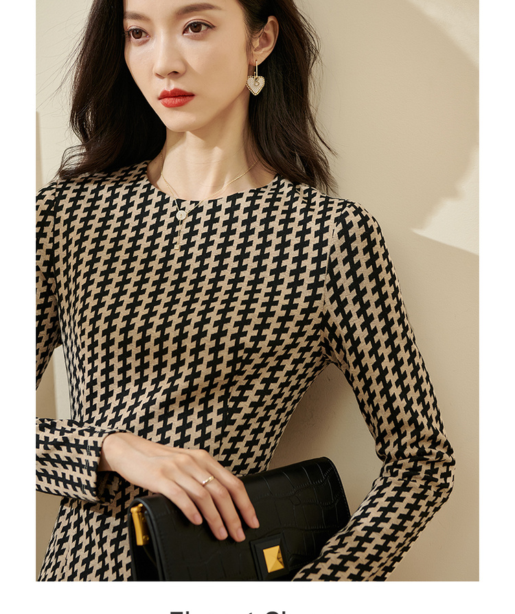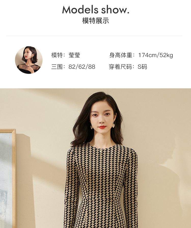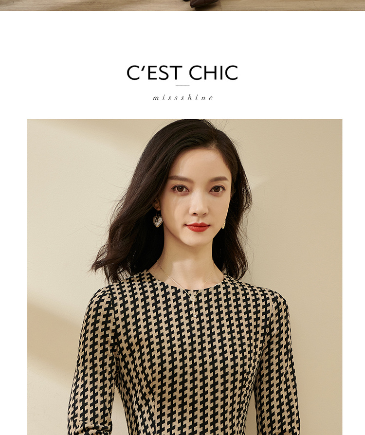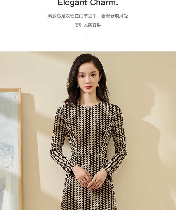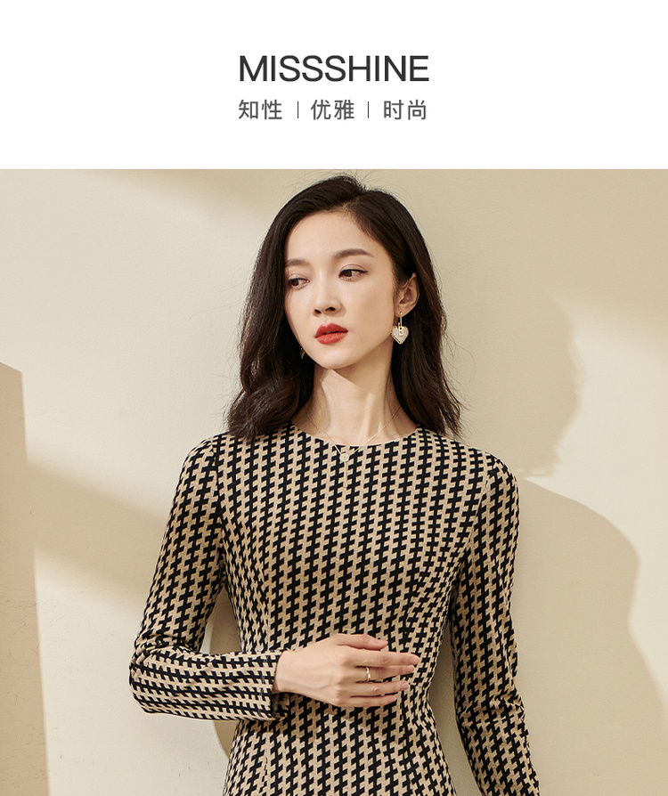 剩S/M/XL 米思阳气质时尚连衣裙秋流行印花2022新款修身长袖中长款裙子2162