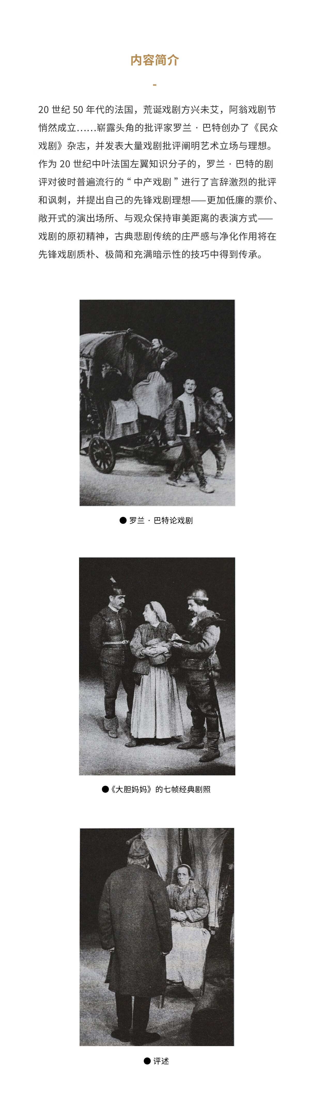 本书共收录罗兰·巴特剧评52篇,清晰呈现出罗兰·巴特戏剧美学观的发展,并涉及若干法国戏剧界著名思潮与事件,多角度展示法国剧业生态。阅读这些性格鲜明的文字,耳畔仿佛回荡起一阵阵狂呼呐喊,把人带回那个风起云涌的奔腾年代。