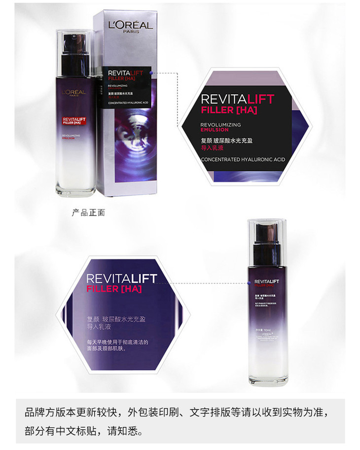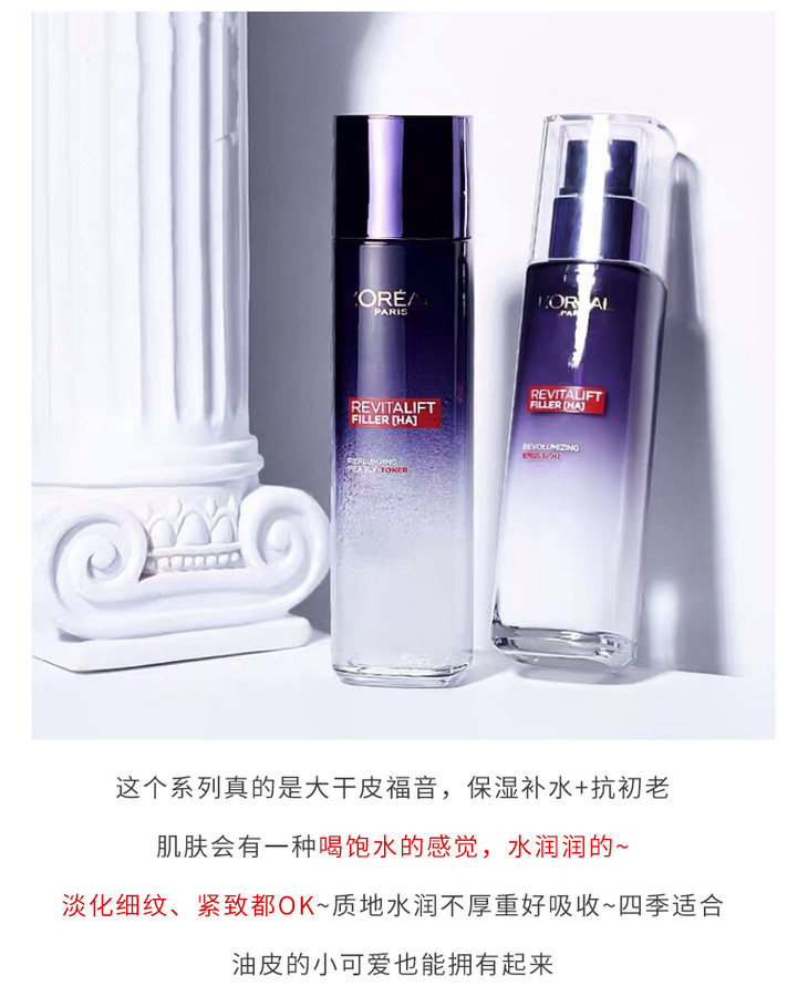 欧莱雅复颜玻尿酸水乳套装 持久补水保湿淡化细纹水乳
