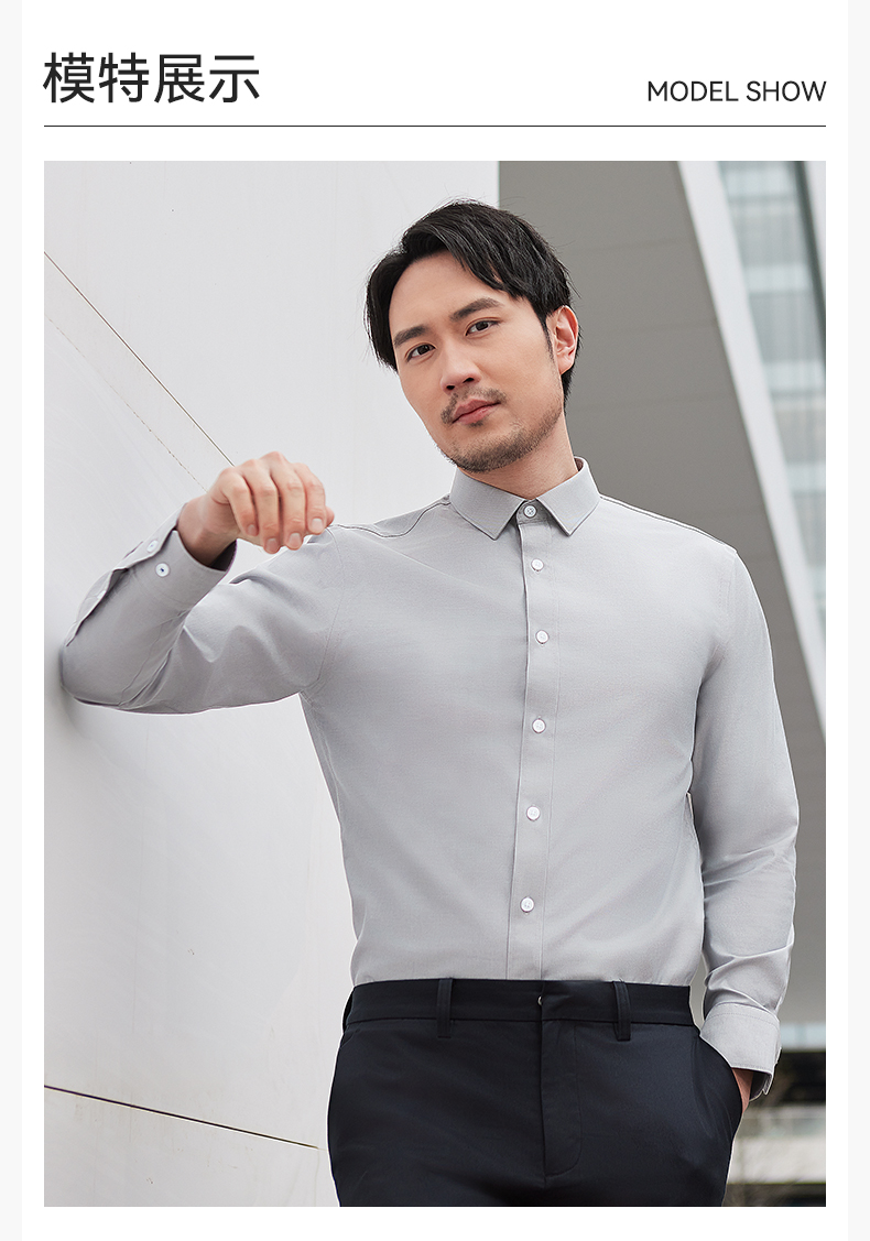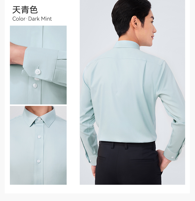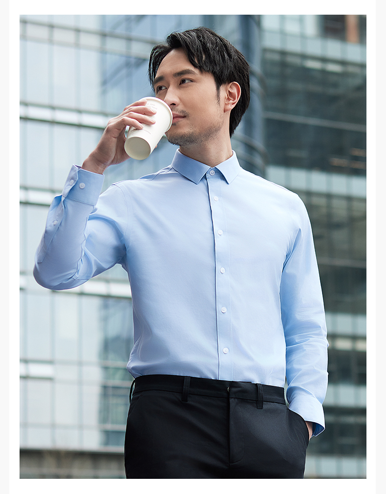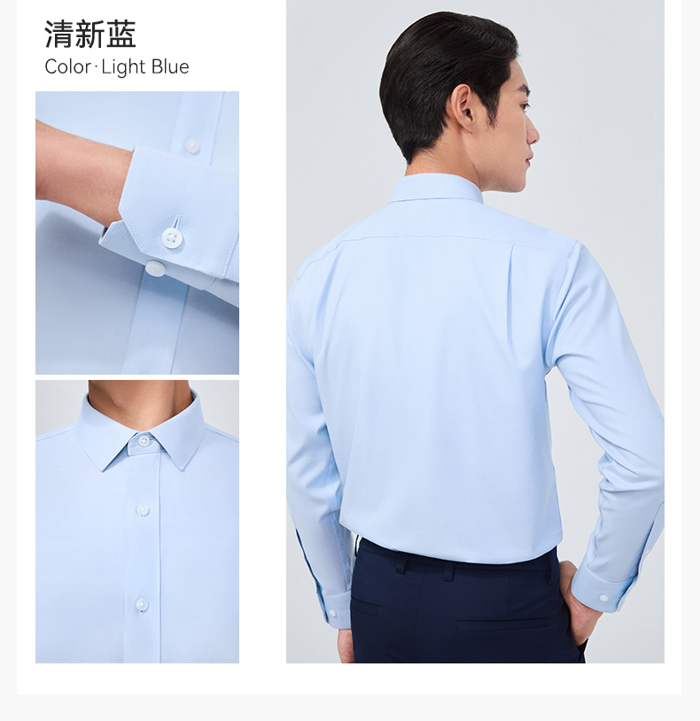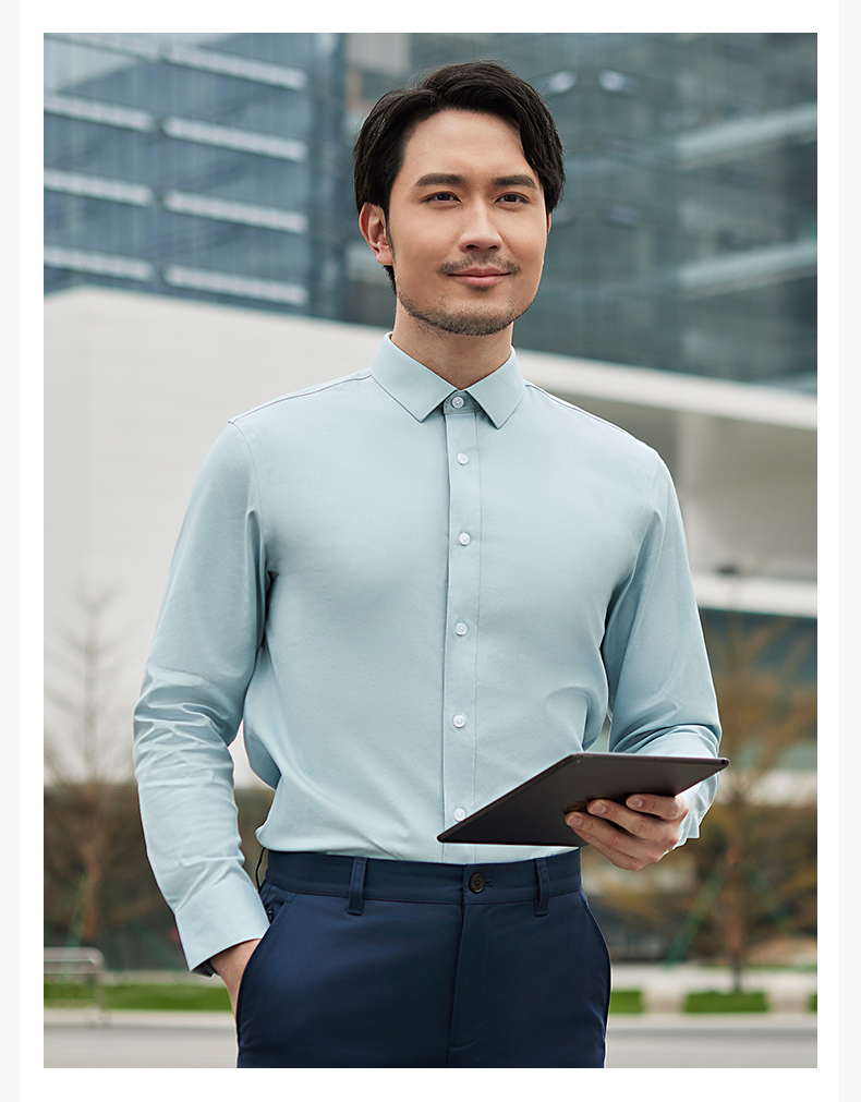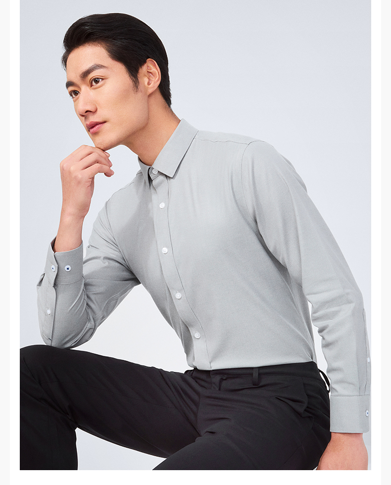 十如仕小方领弹力斜纹免烫长袖衬衫-303-02