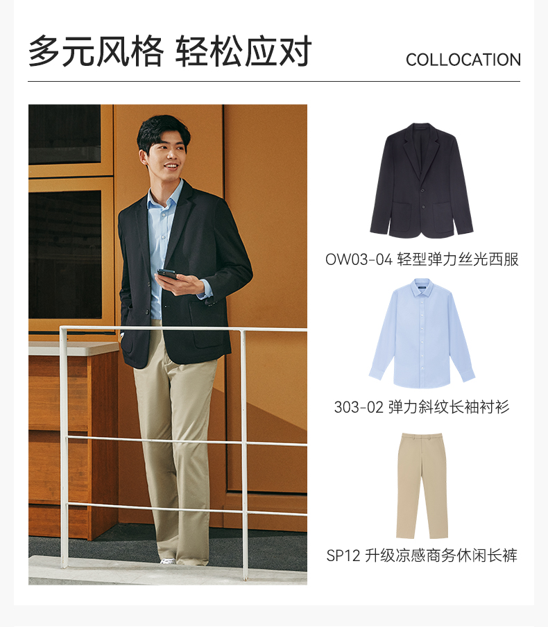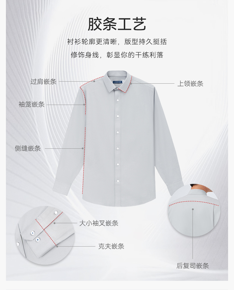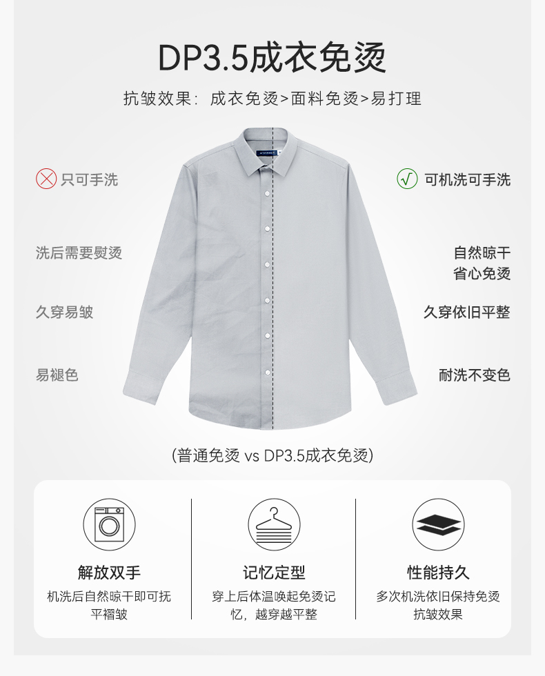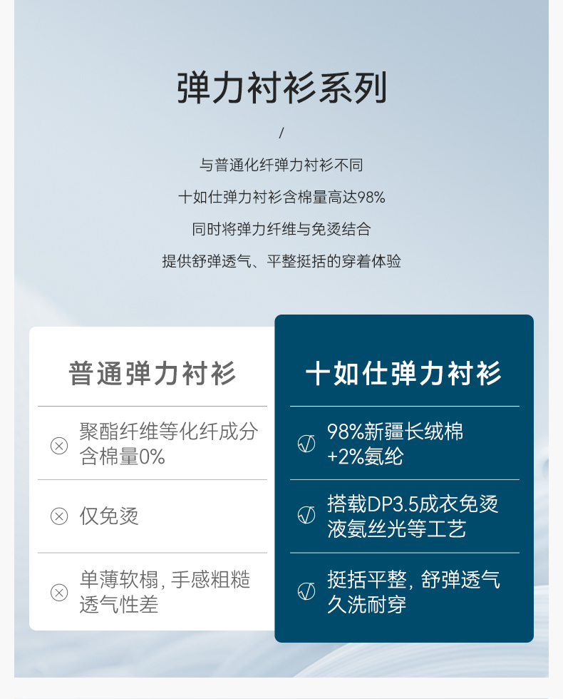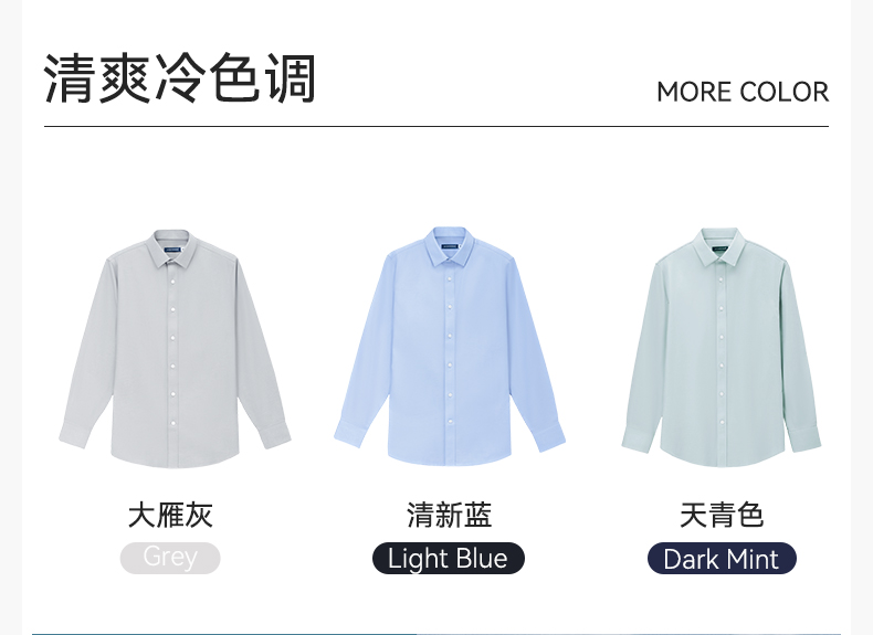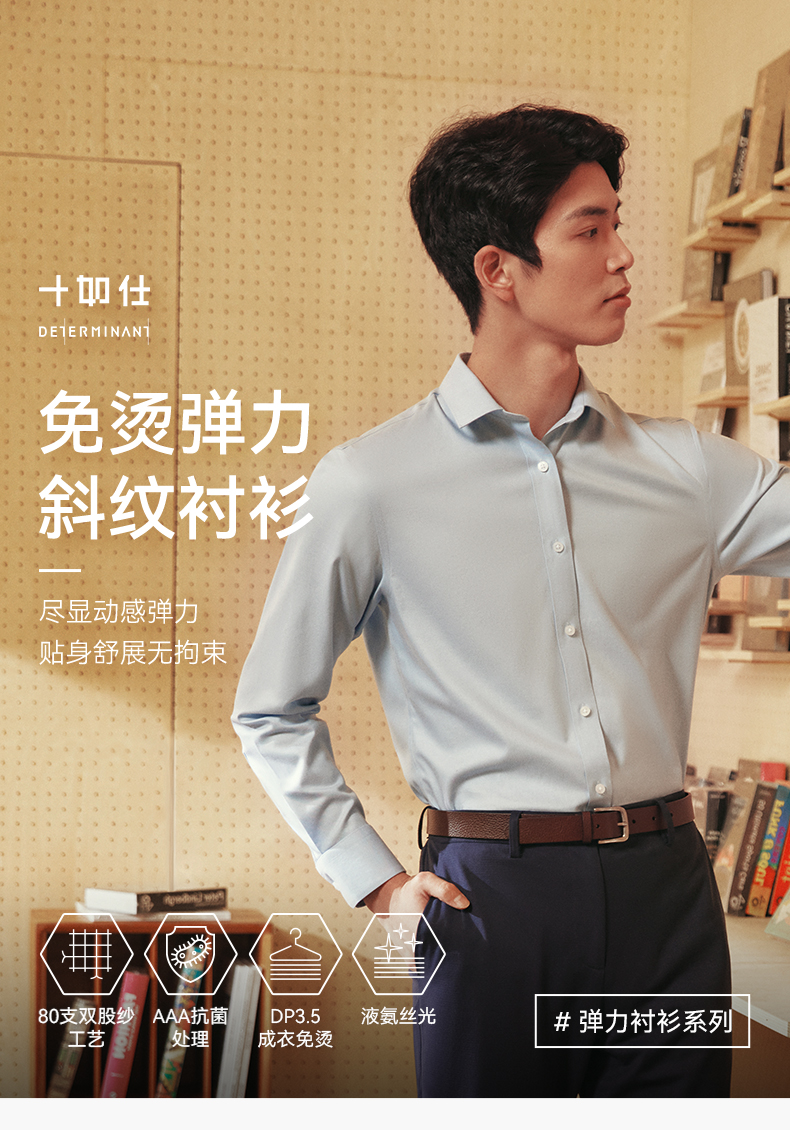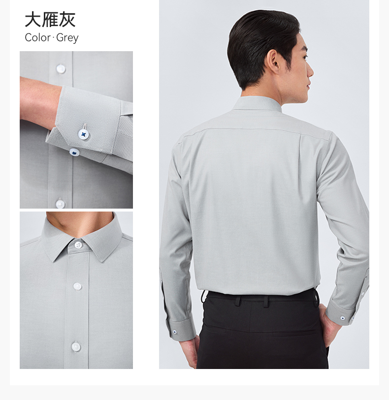 十如仕小方领弹力斜纹免烫长袖衬衫-303-02