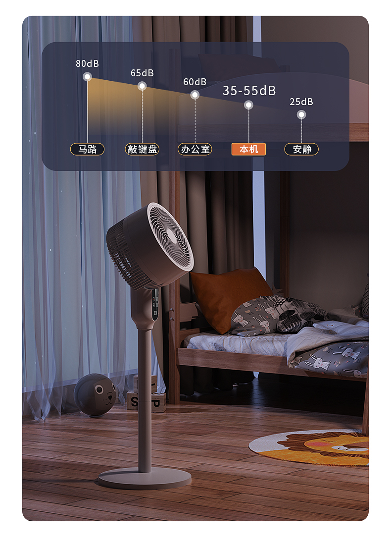 万兰迪空气循环扇,声控遥控触控 台地两用 三种高度可调 长时定时 轻音低噪