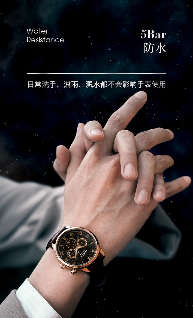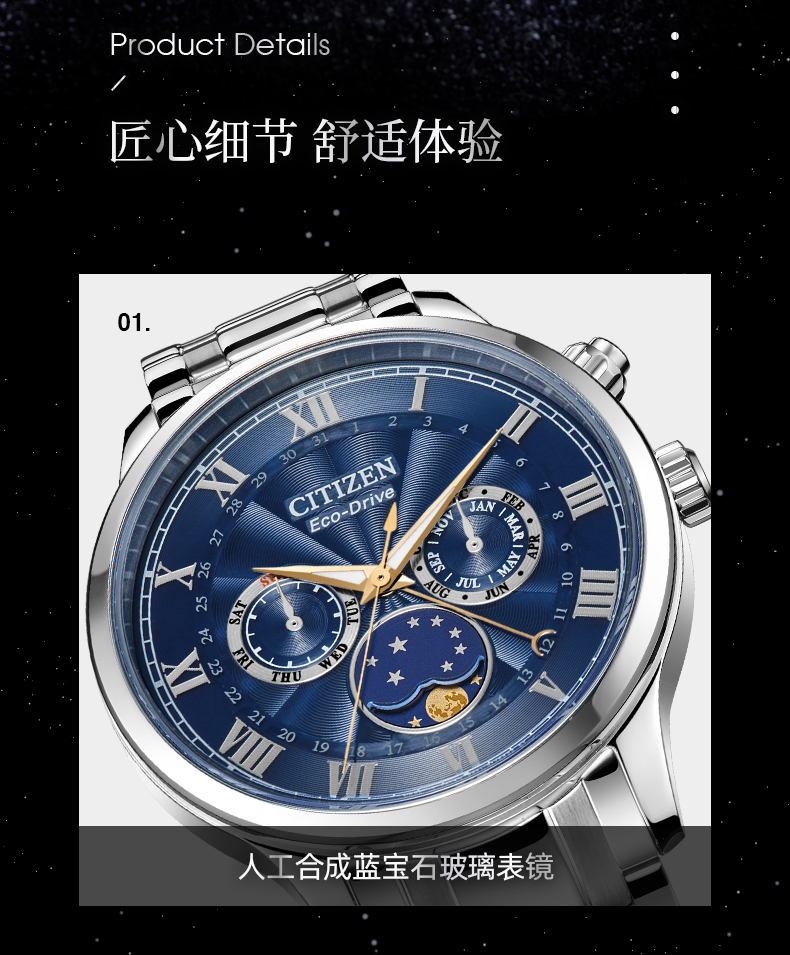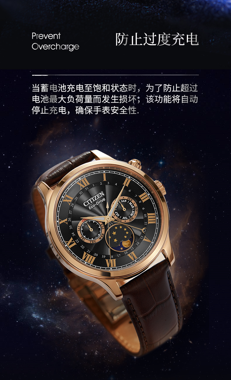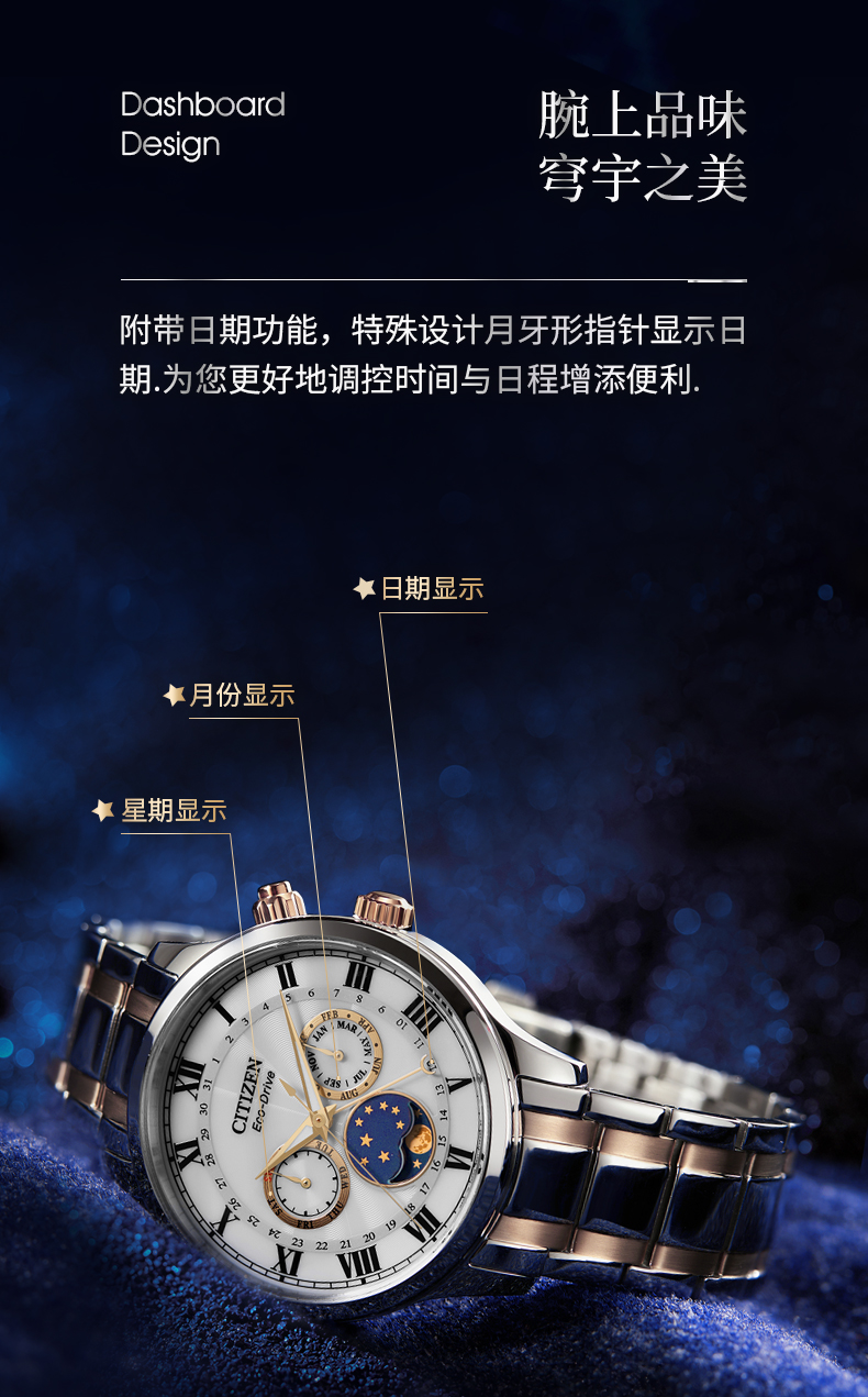 西铁城日本官方正品光动能月相盈亏月份星期日历男表AP1059-19E