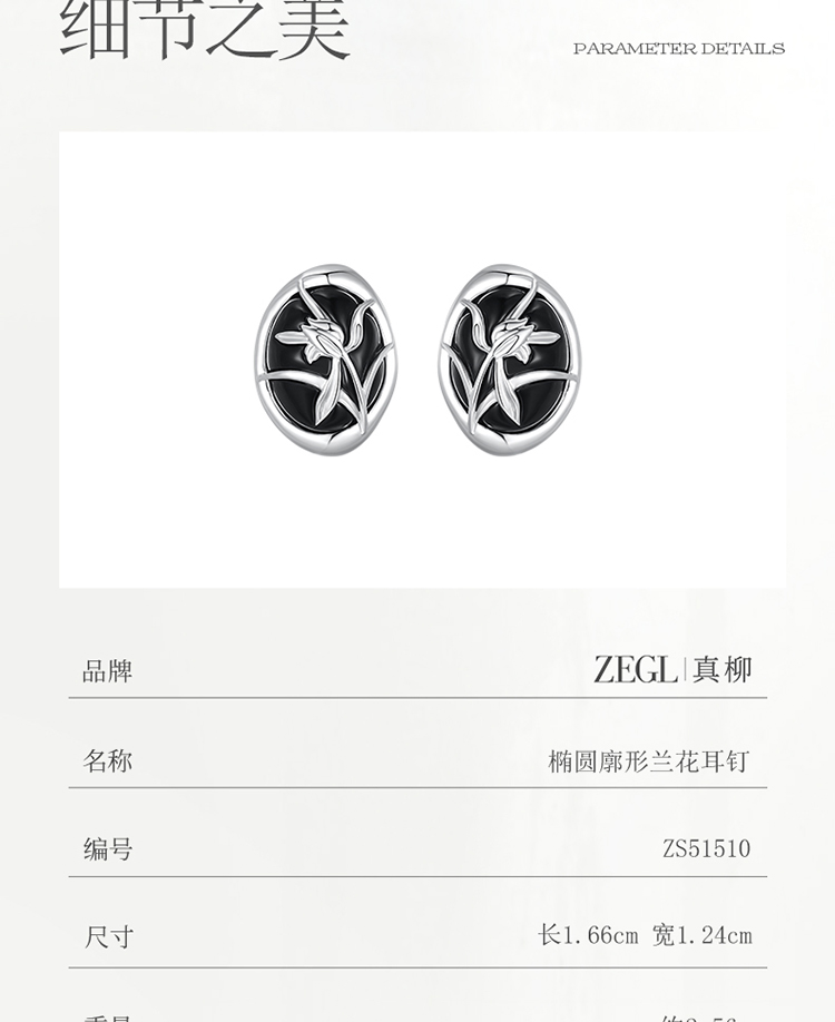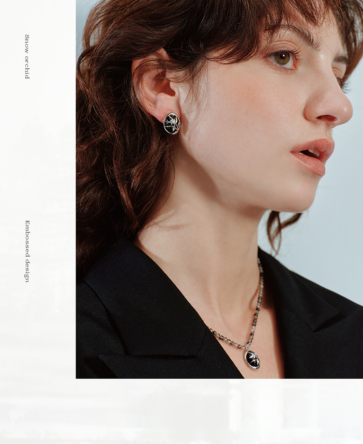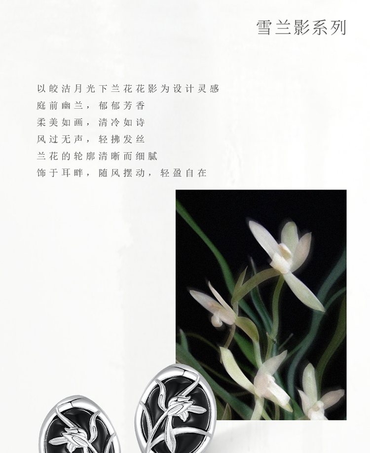 ZEGL真柳设计师雪兰影系列兰花耳钉女高级小众设计感耳环冬季耳饰
