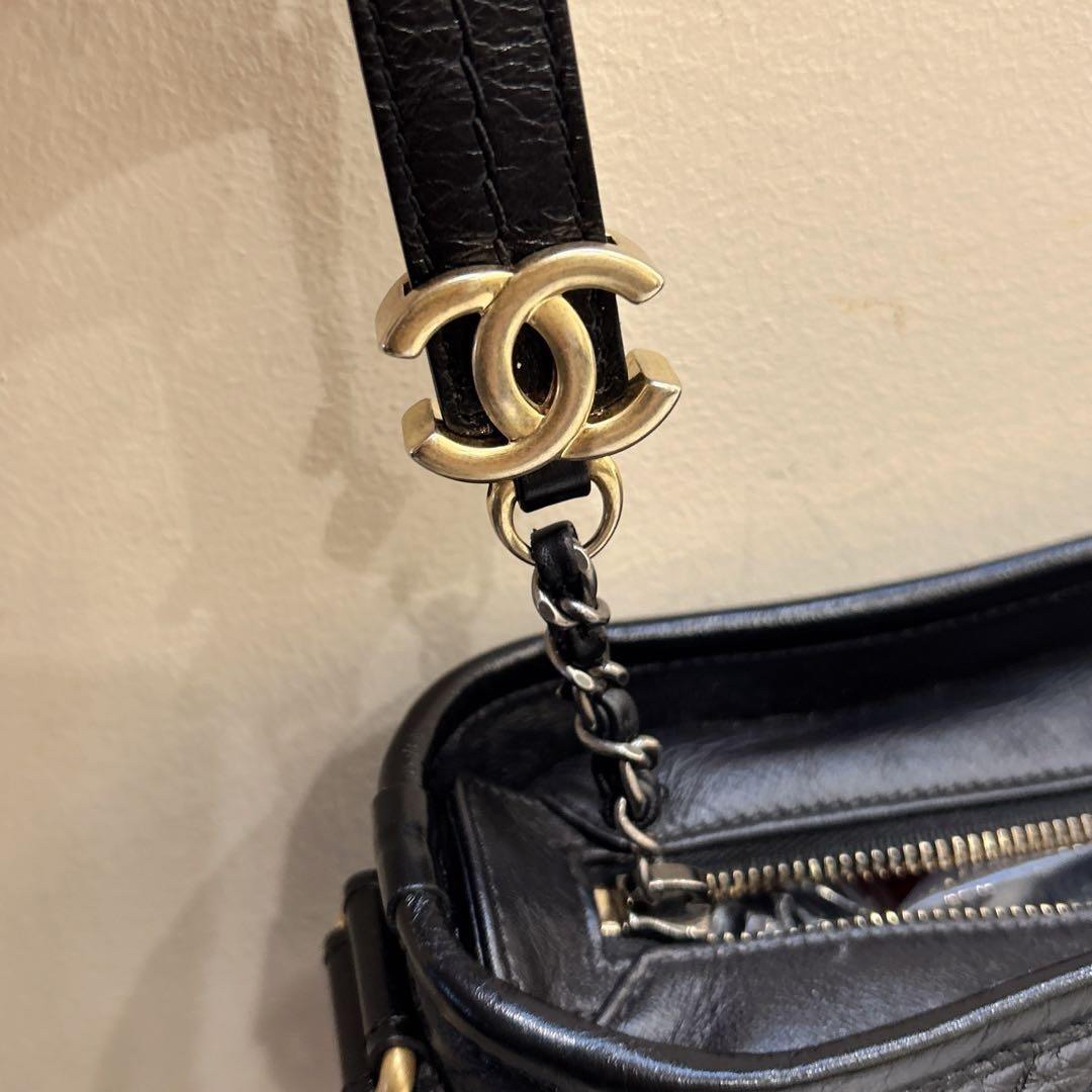 正品二手 Chanel 小号 黑金色 做旧牛皮 流浪包 😊 95新 20✖️15 26开 配件:卡 防尘袋 。 包身正常使用皱褶 上身多种玩法超好搭配