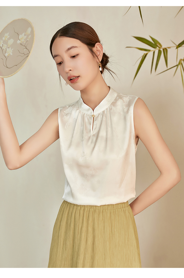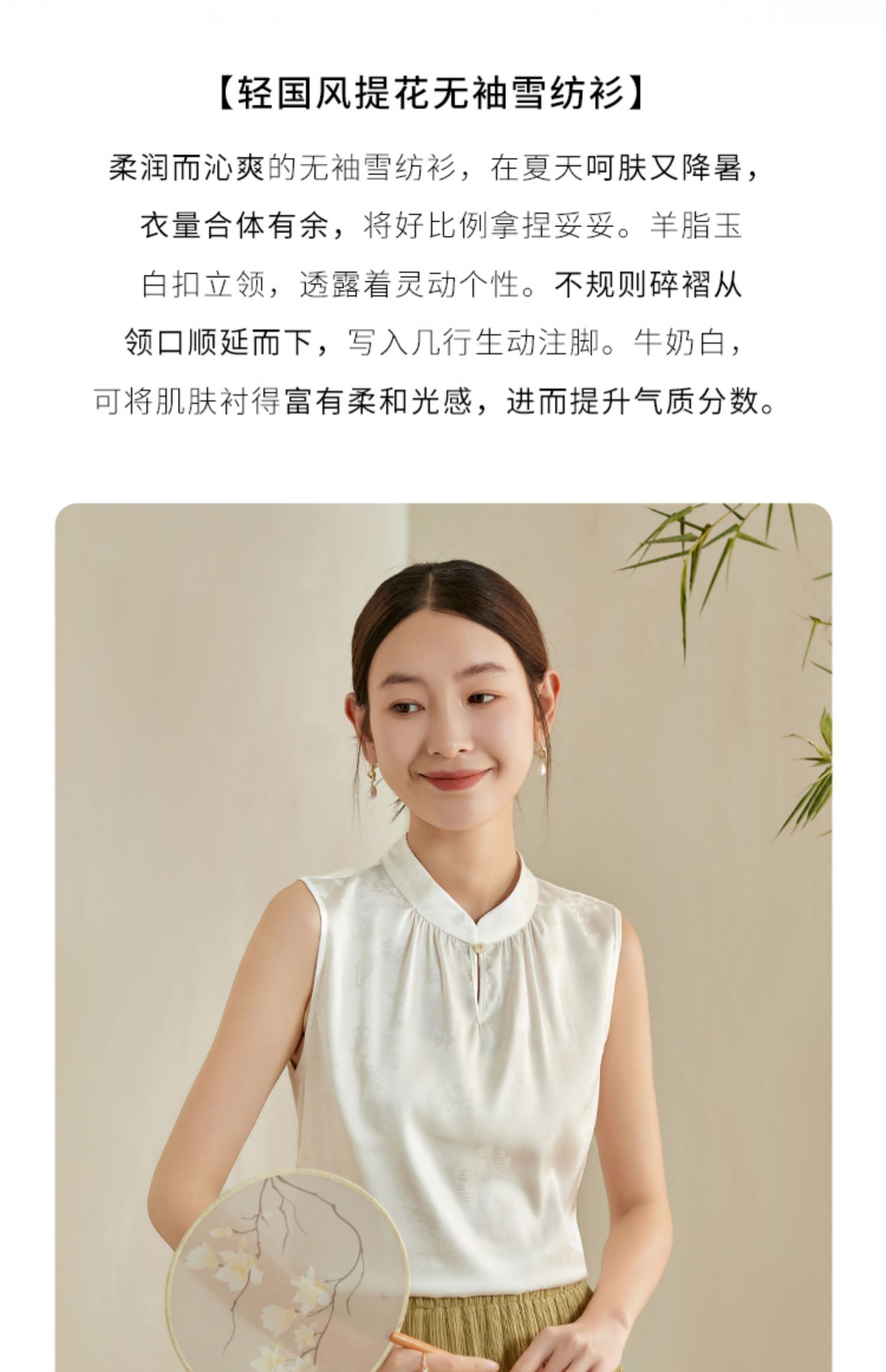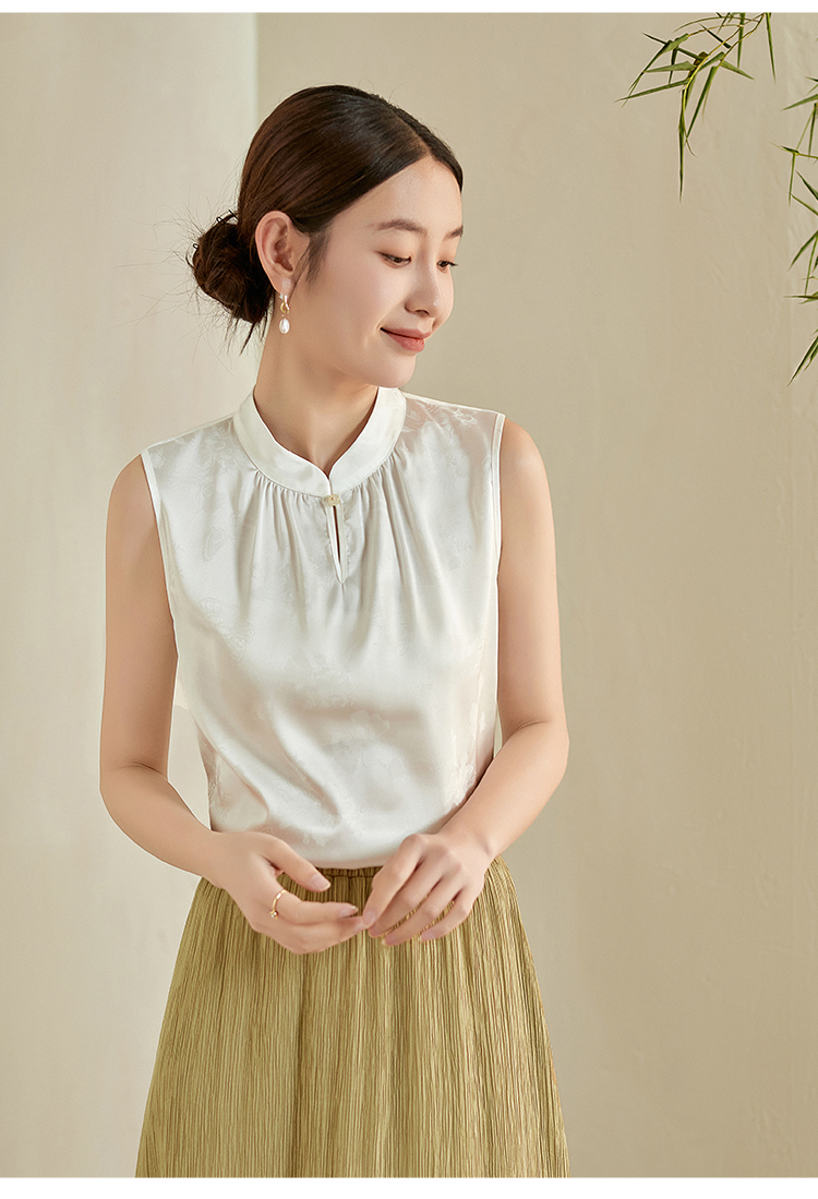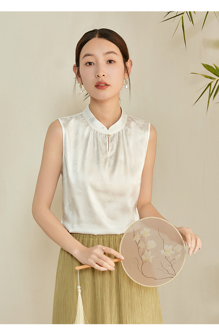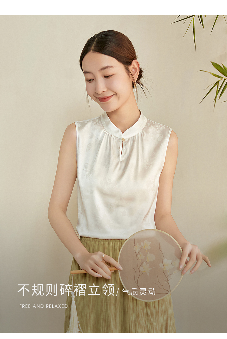 【1件72折】熙世界轻国风提花无袖雪纺衫女24年秋夏新款立领小衫内搭中式上衣